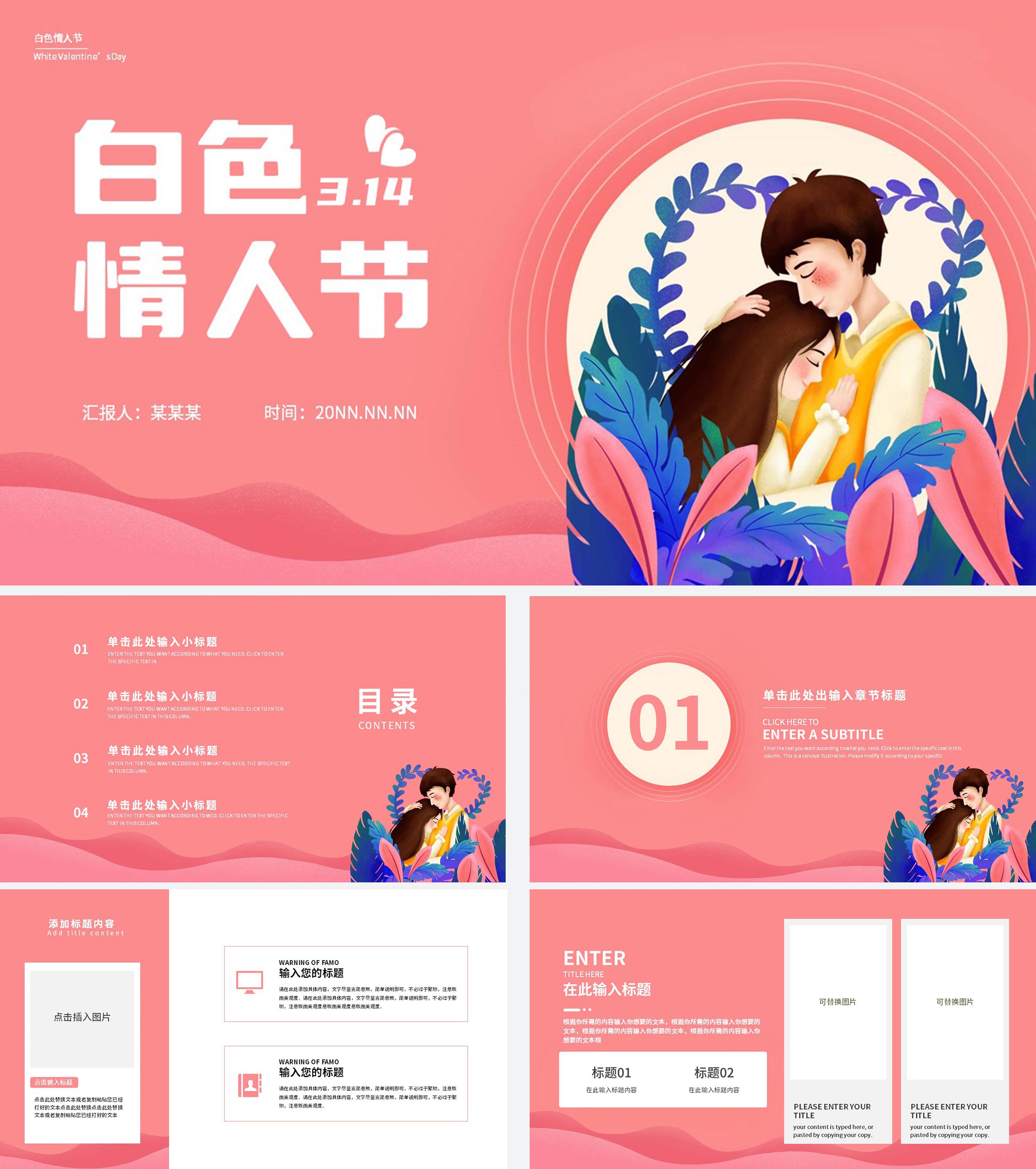 粉色浪漫情人节主题ppt模版