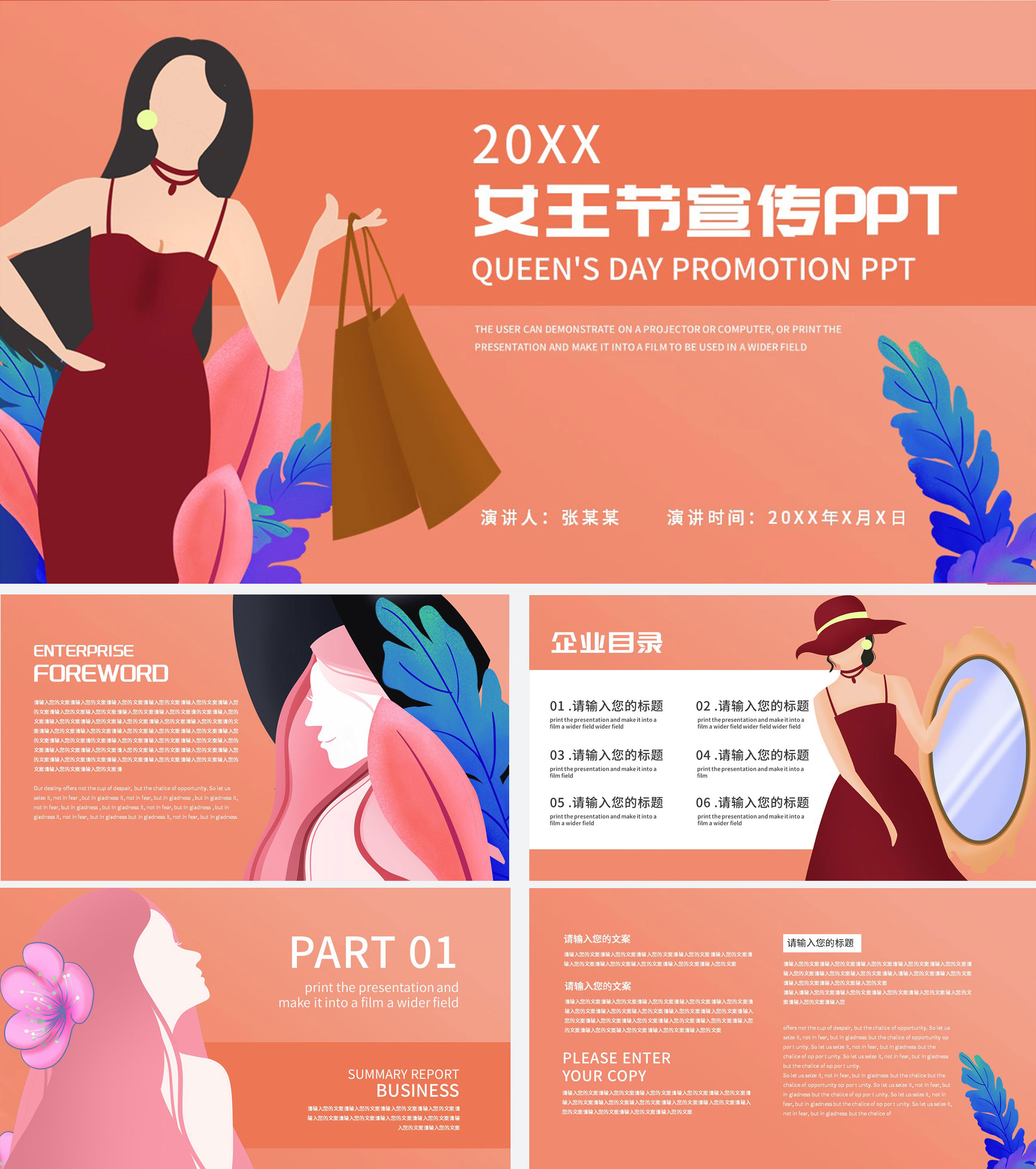 橘色女王节节日宣传PPT模板
