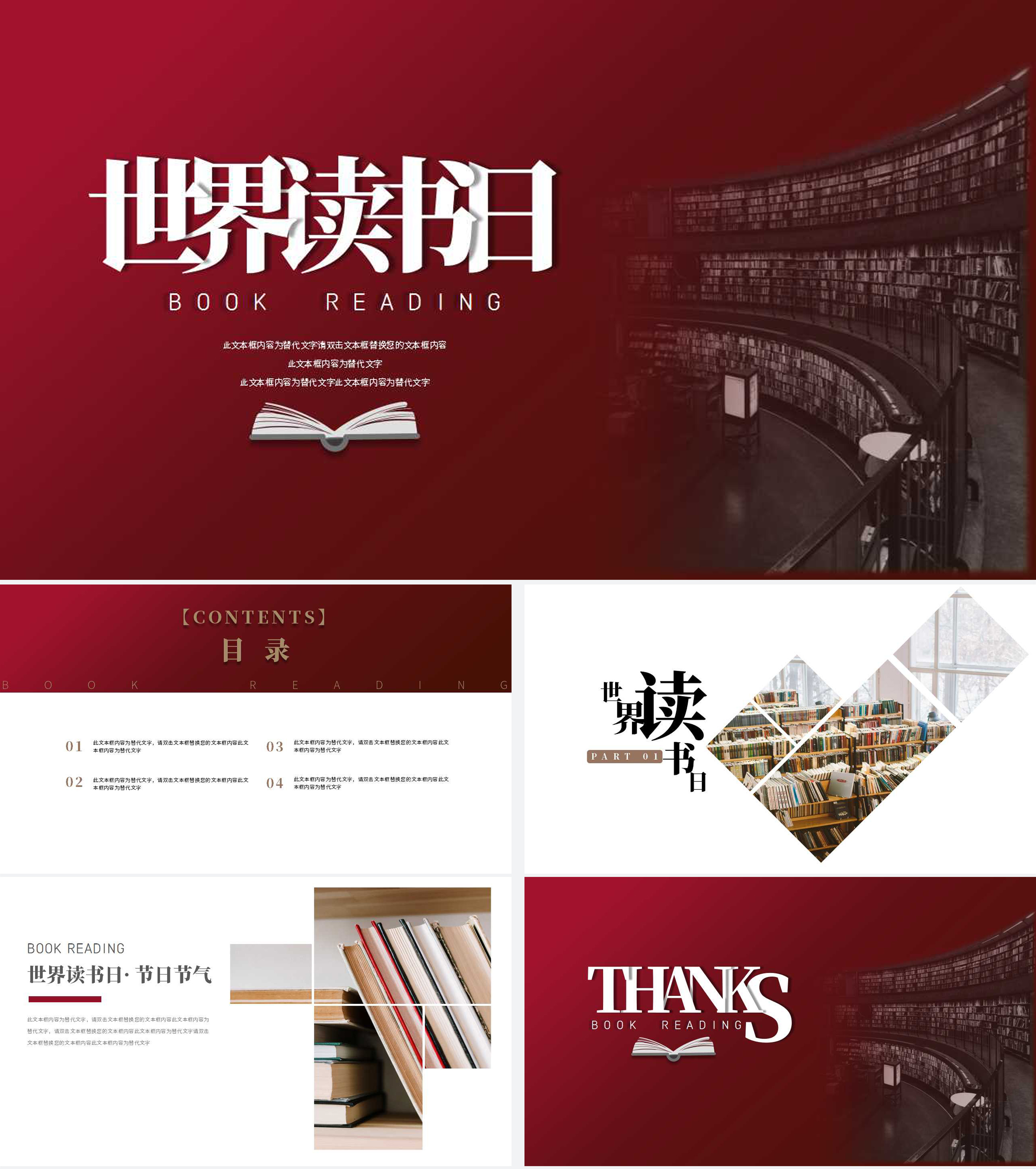 红色简约世界读书日PPT模板