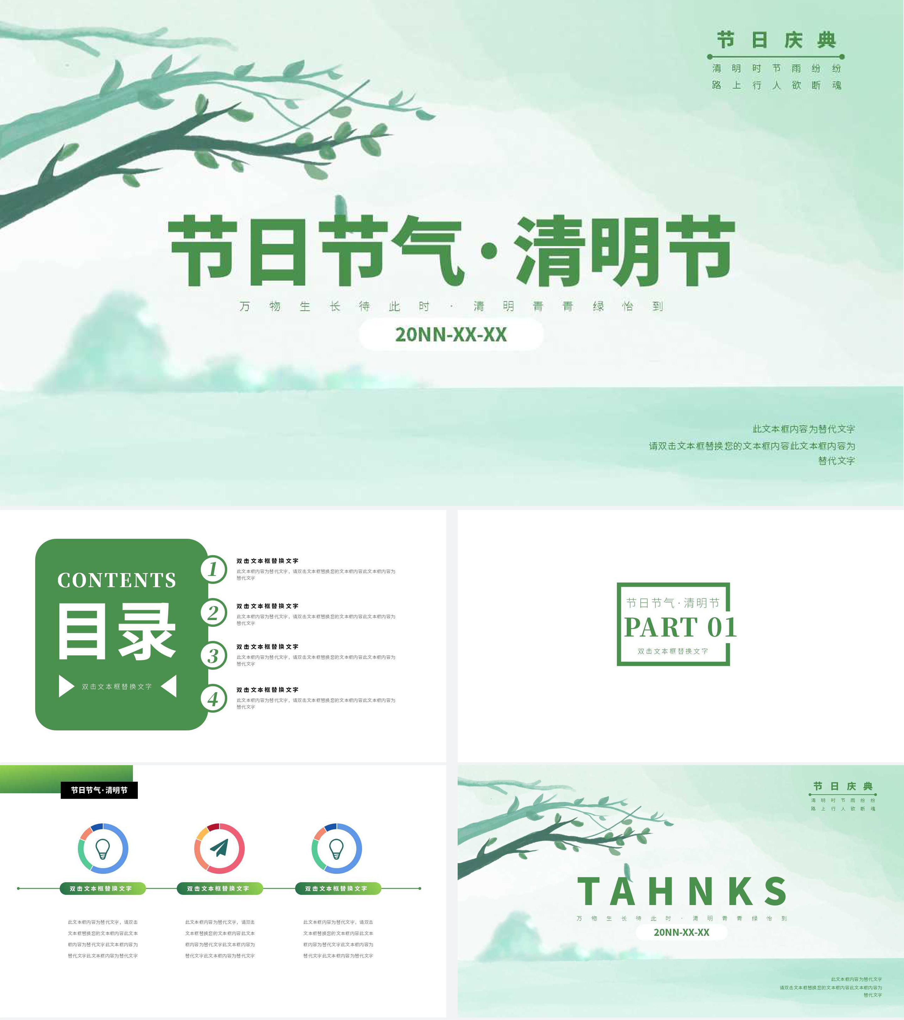 绿色简约风万物生长清明节PPT模板