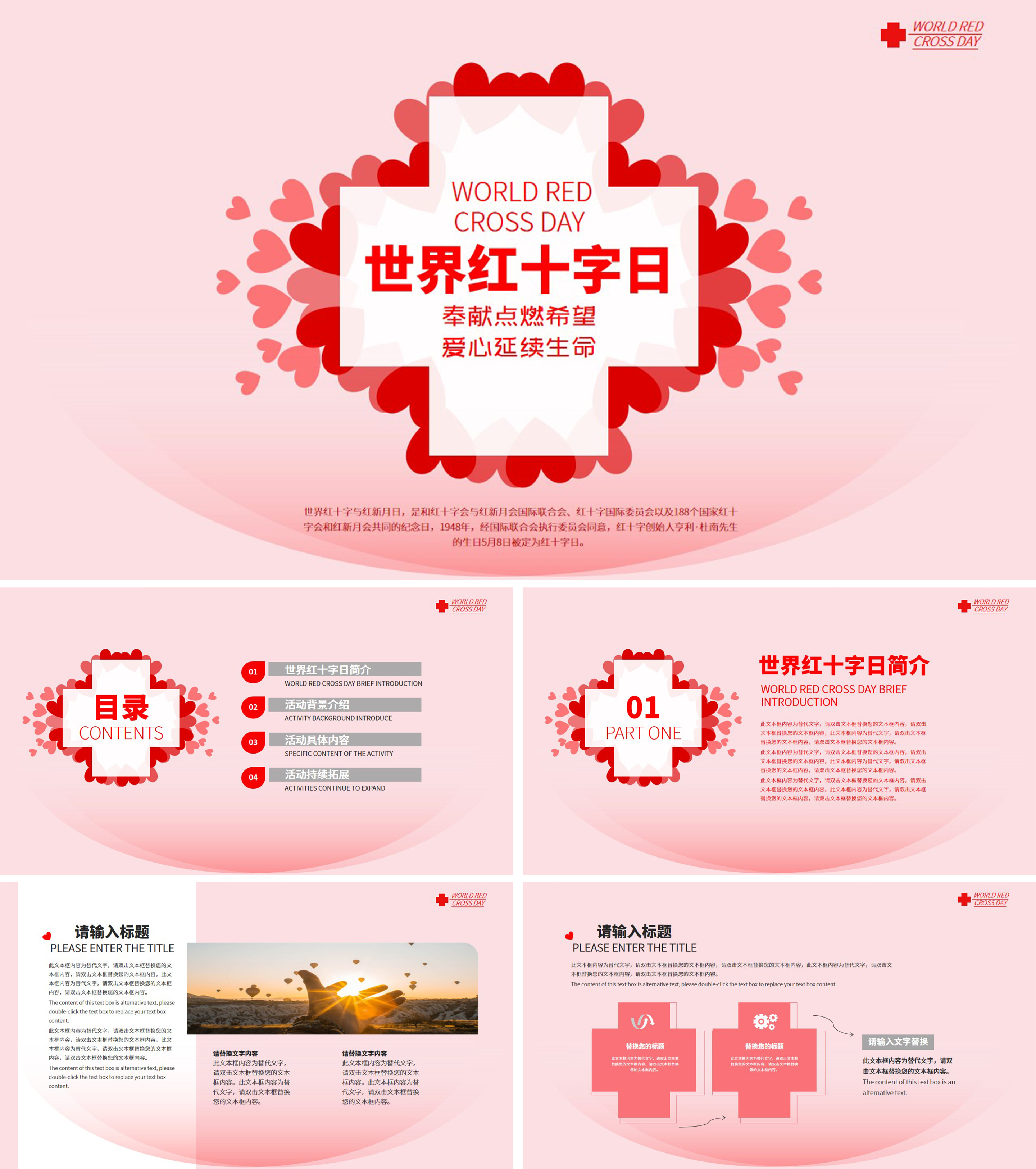 粉色简约风世界红十字日PPT模板