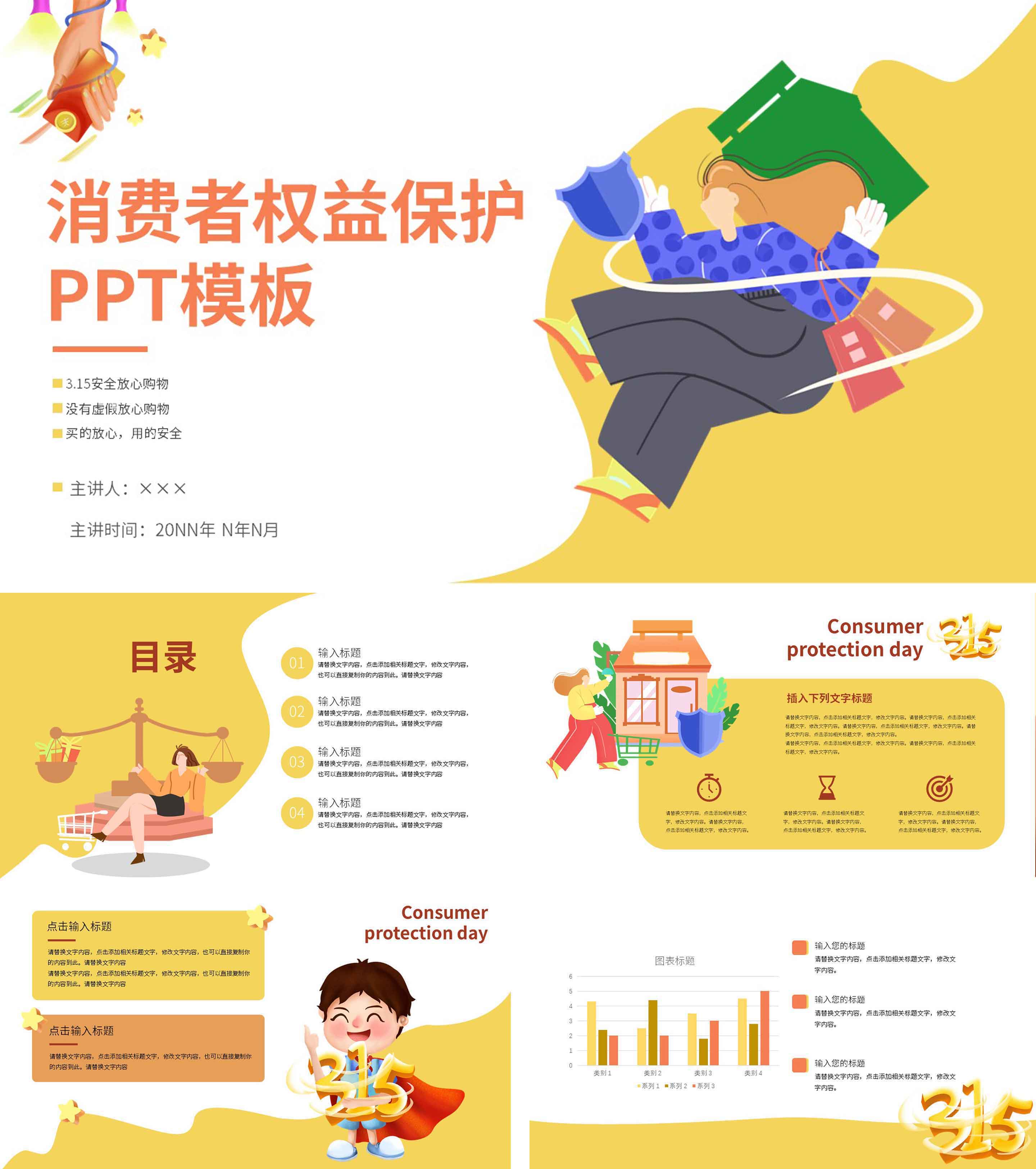黄色315消费者权益保护日PPT模板