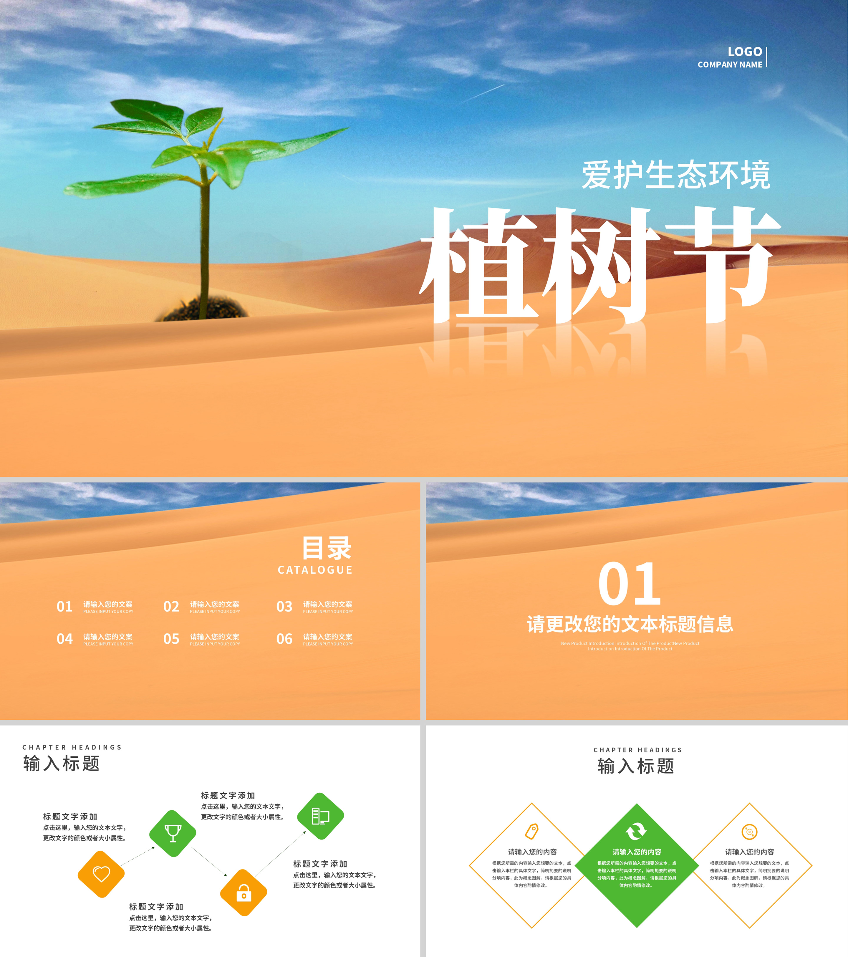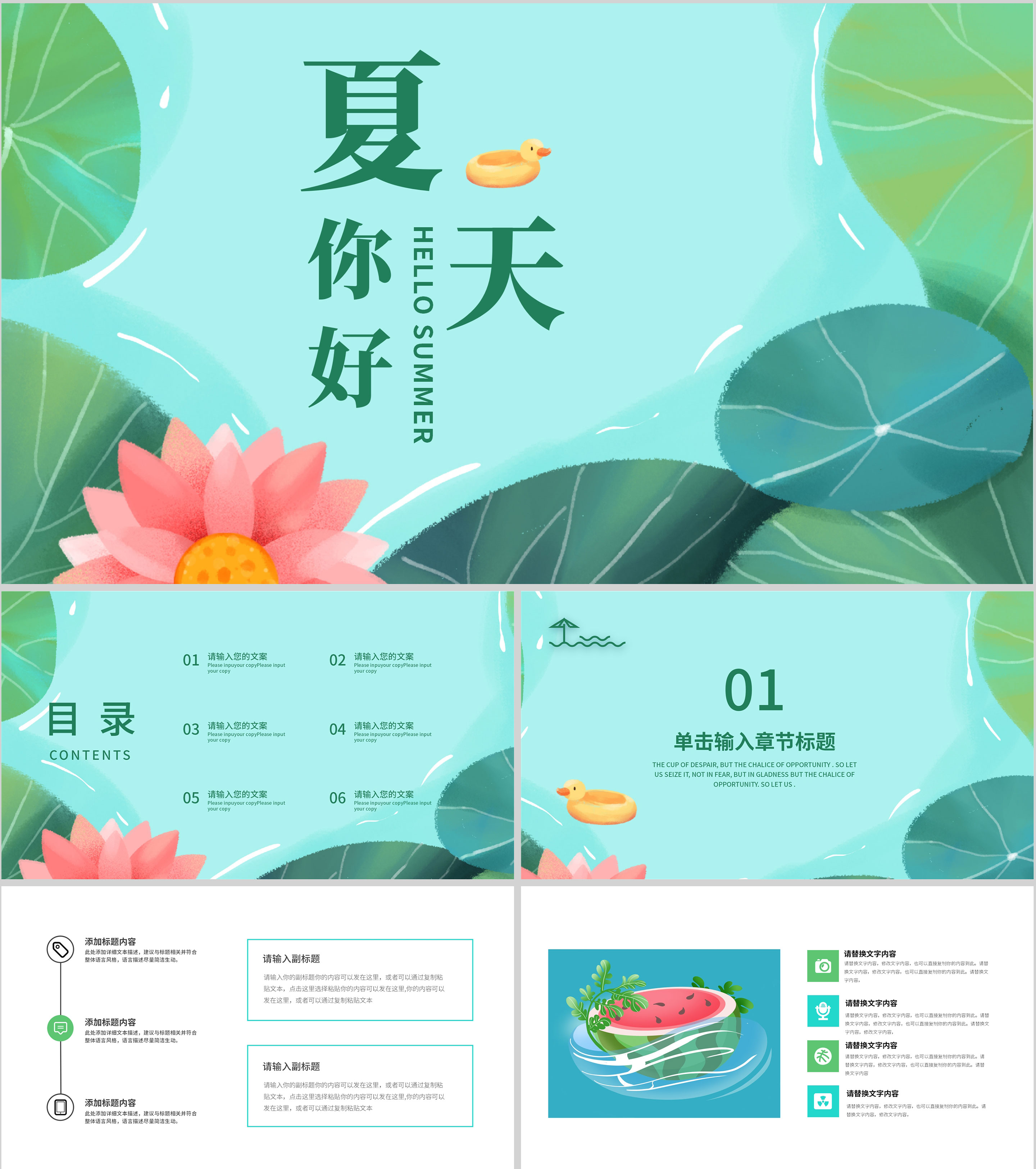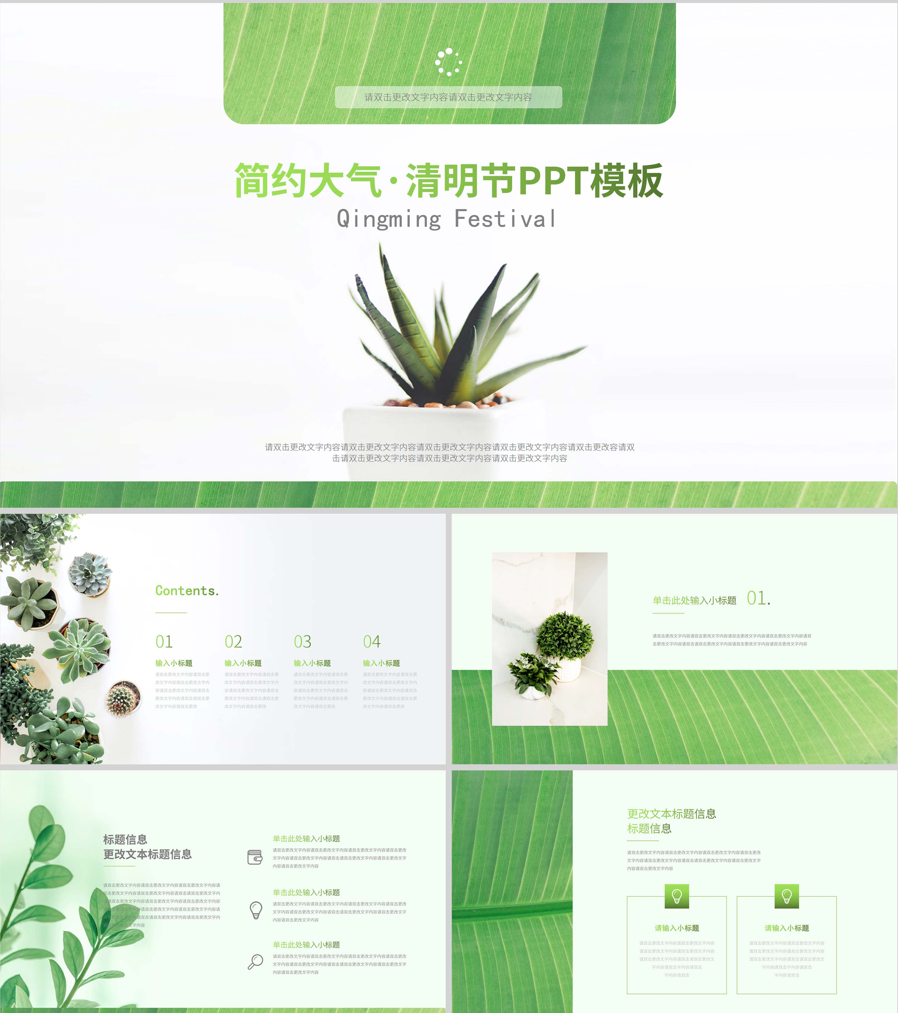 小清新绿色你好春天主题汇报班级演讲PPT模板