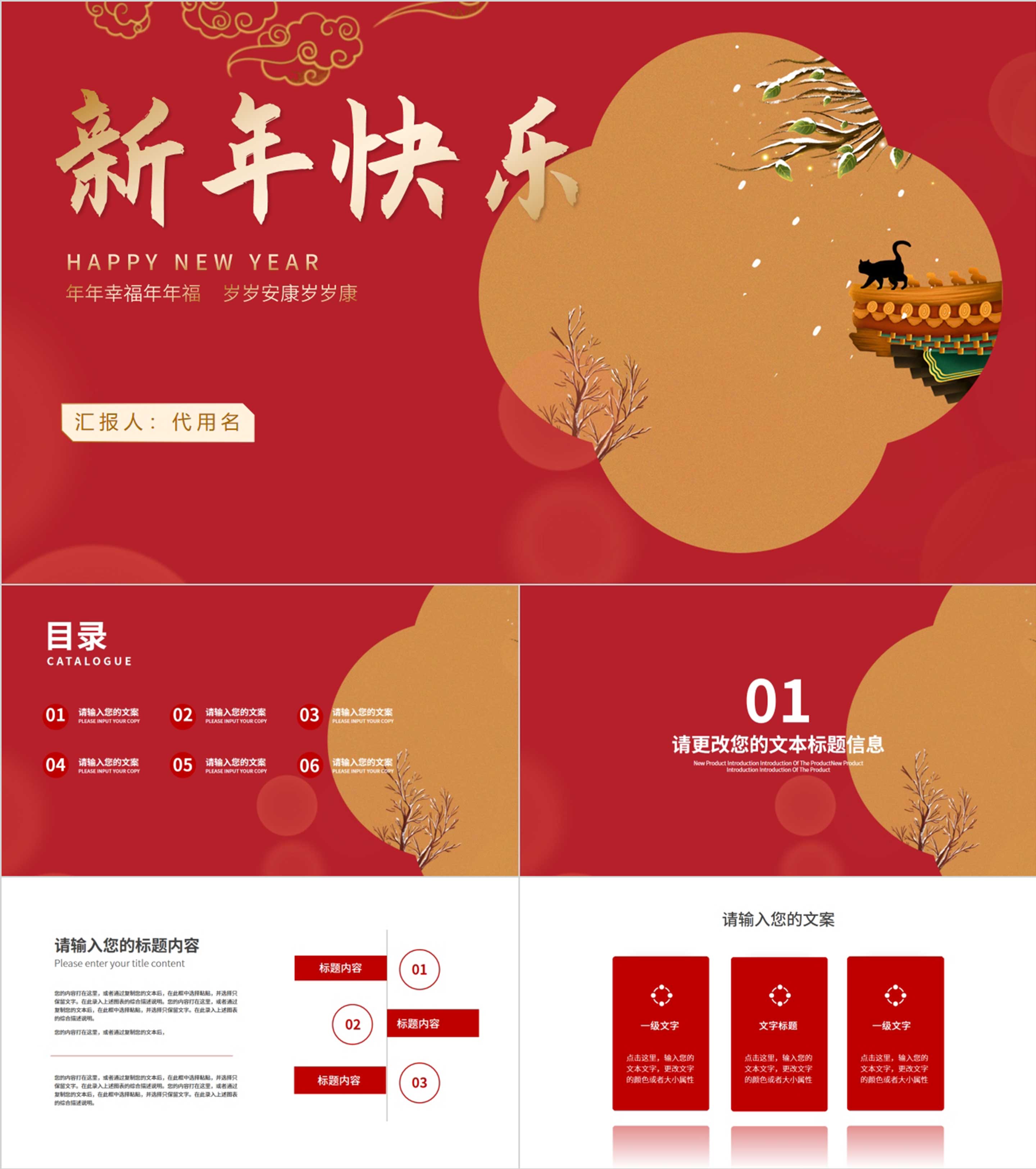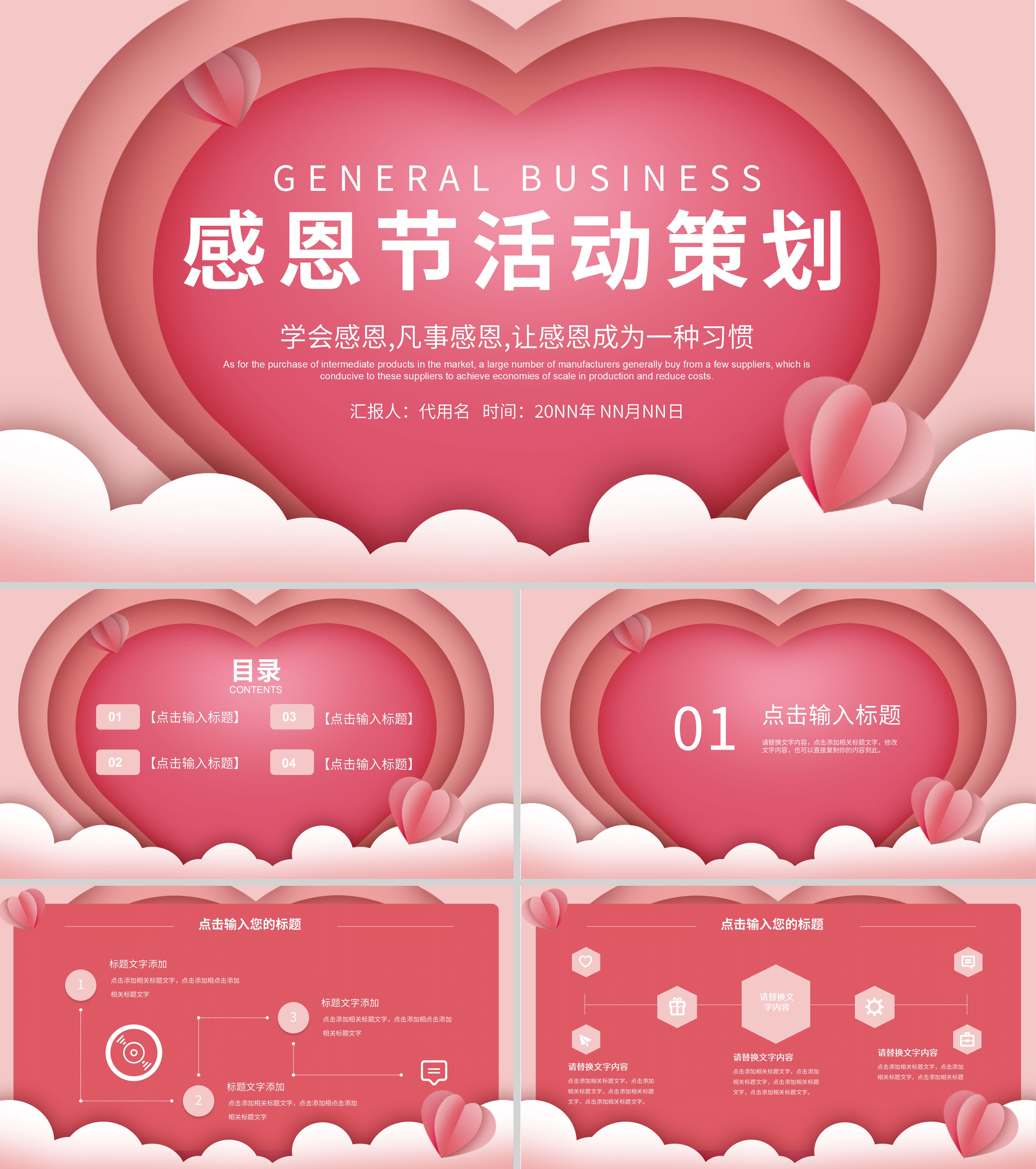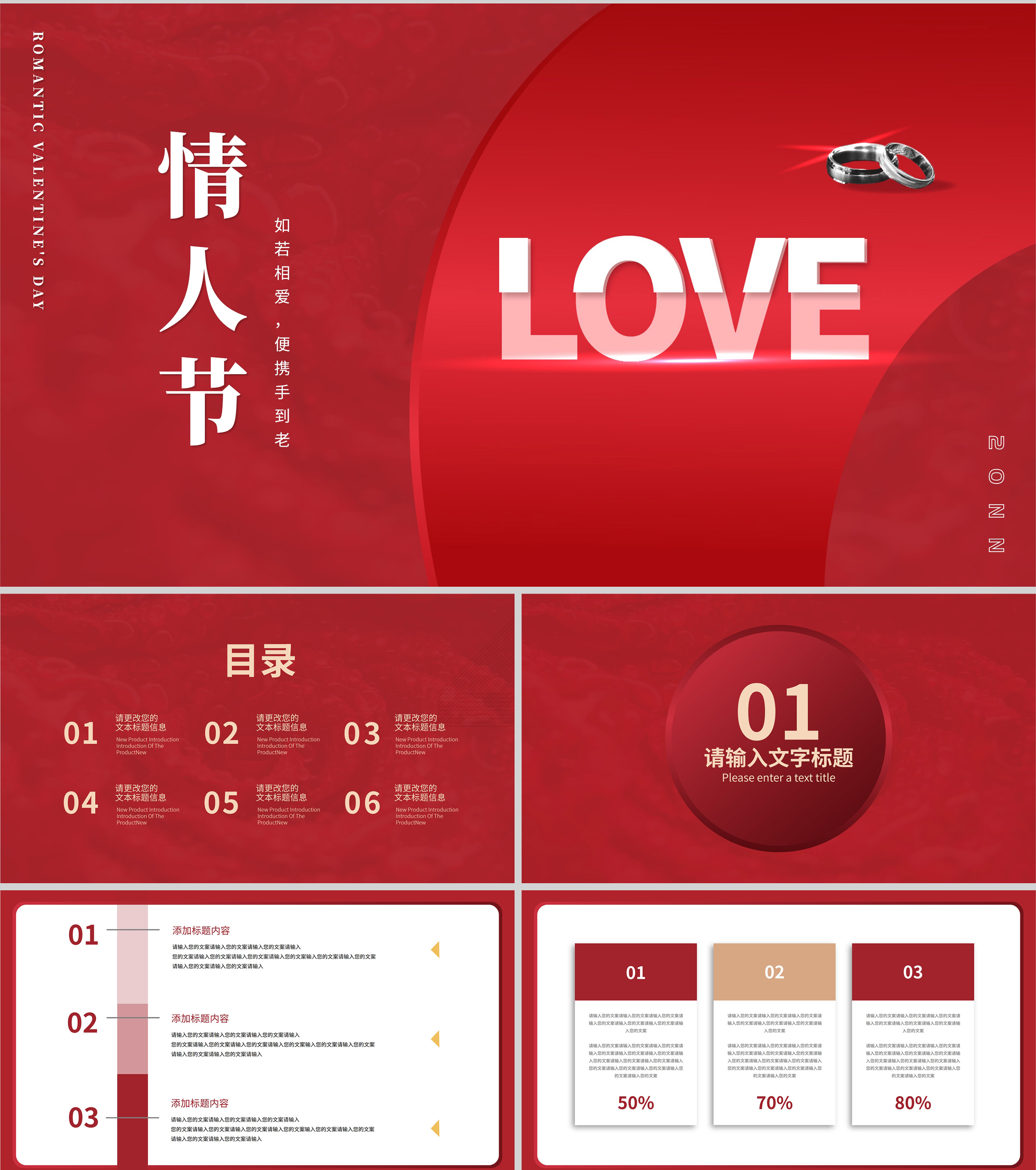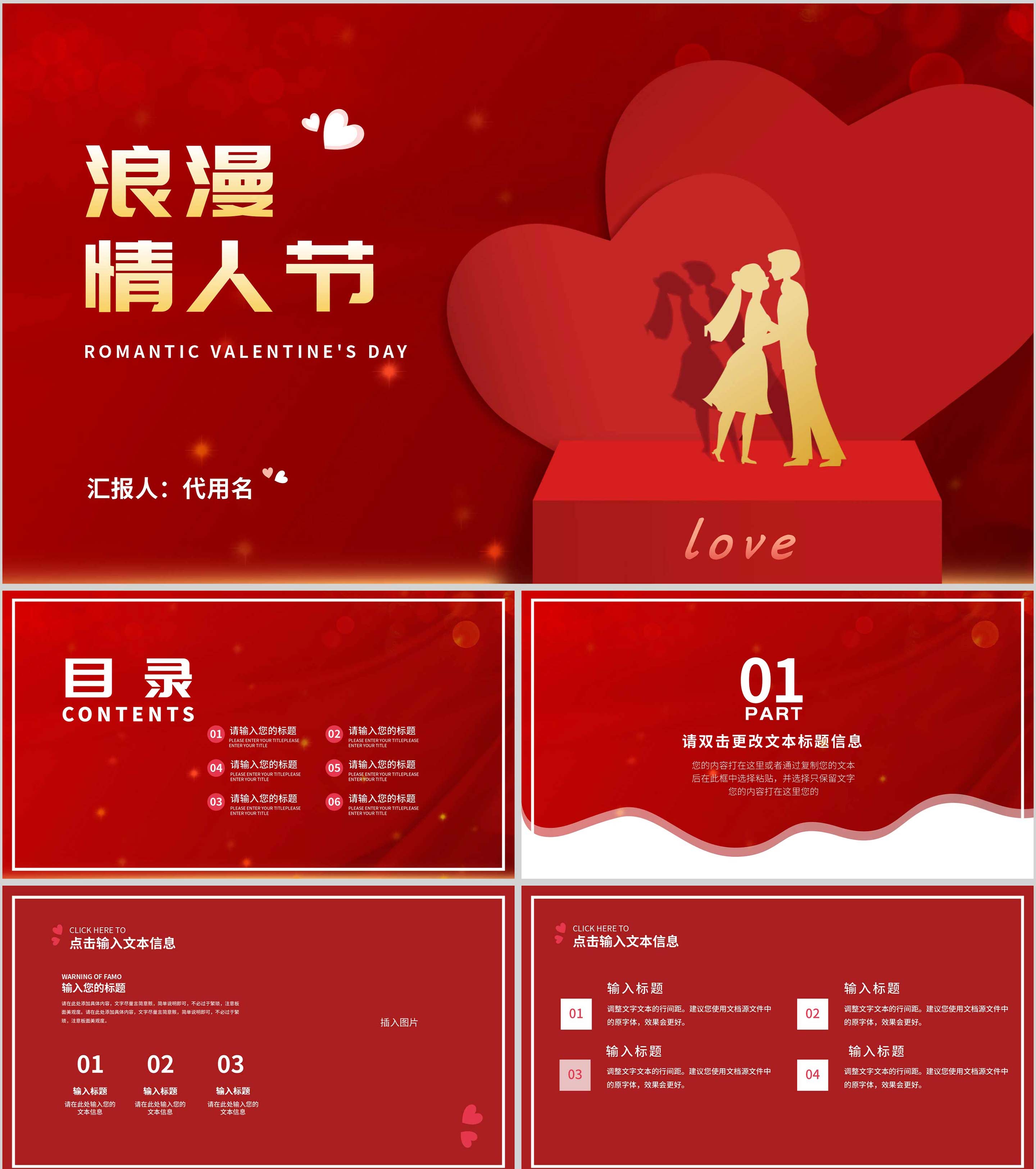 红色扁平风浪漫情人节玫瑰节日PPT模板