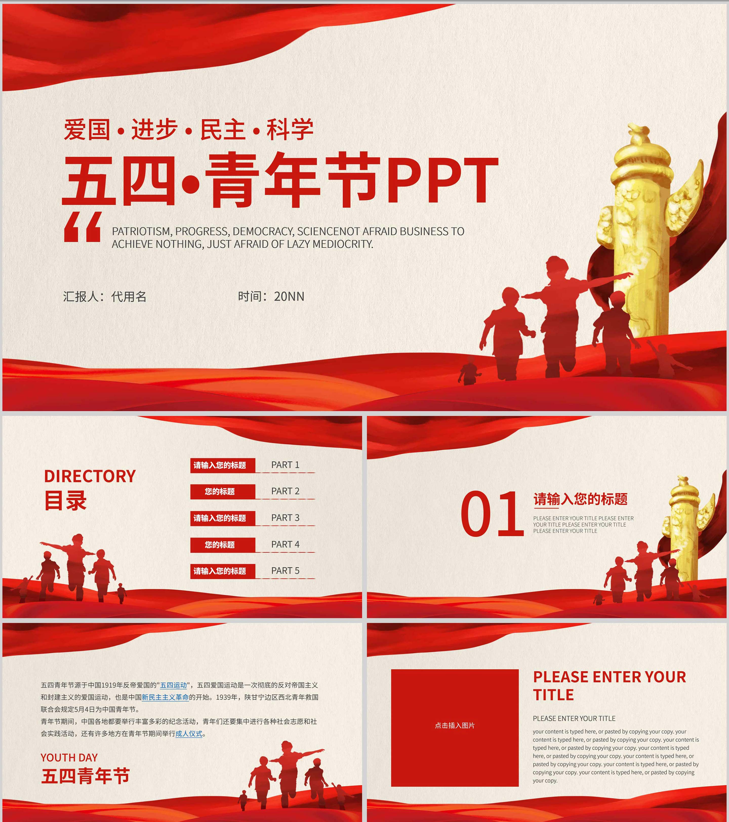简约风蓝色为青春喝彩节日汇报PPT模板