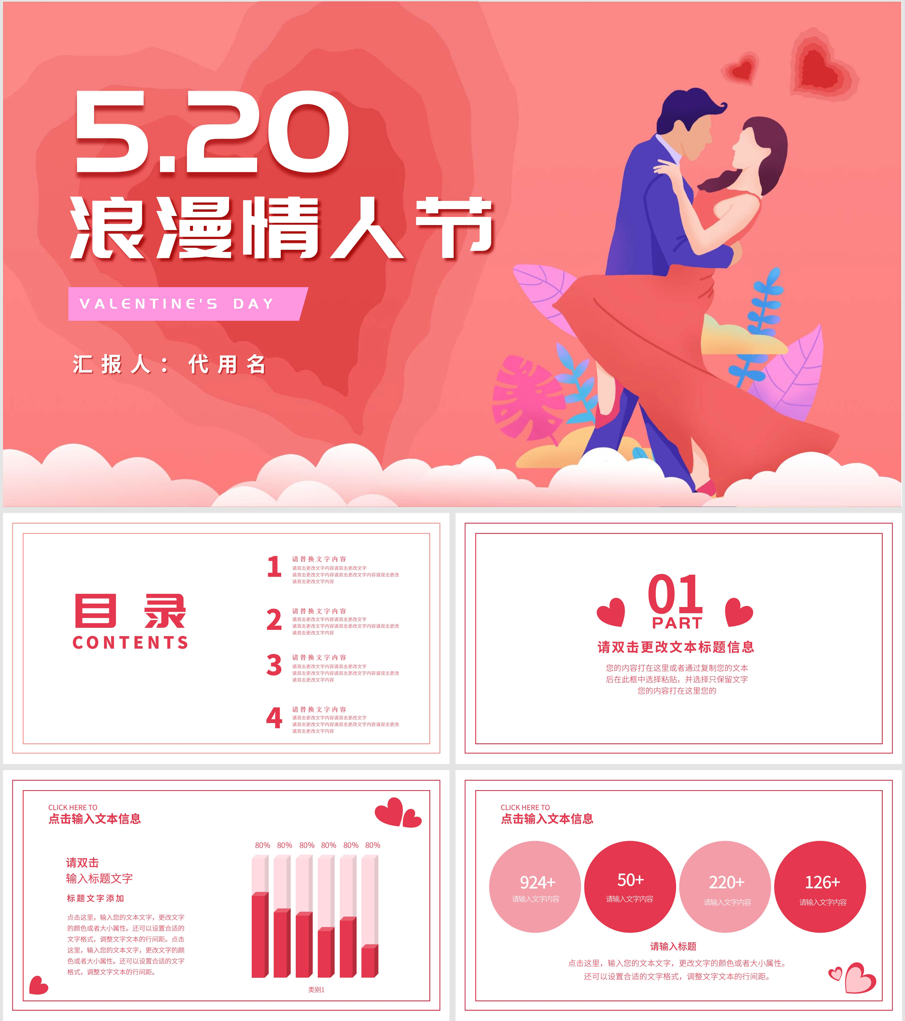 粉色唯美浪漫5.20情人节PPT模板
