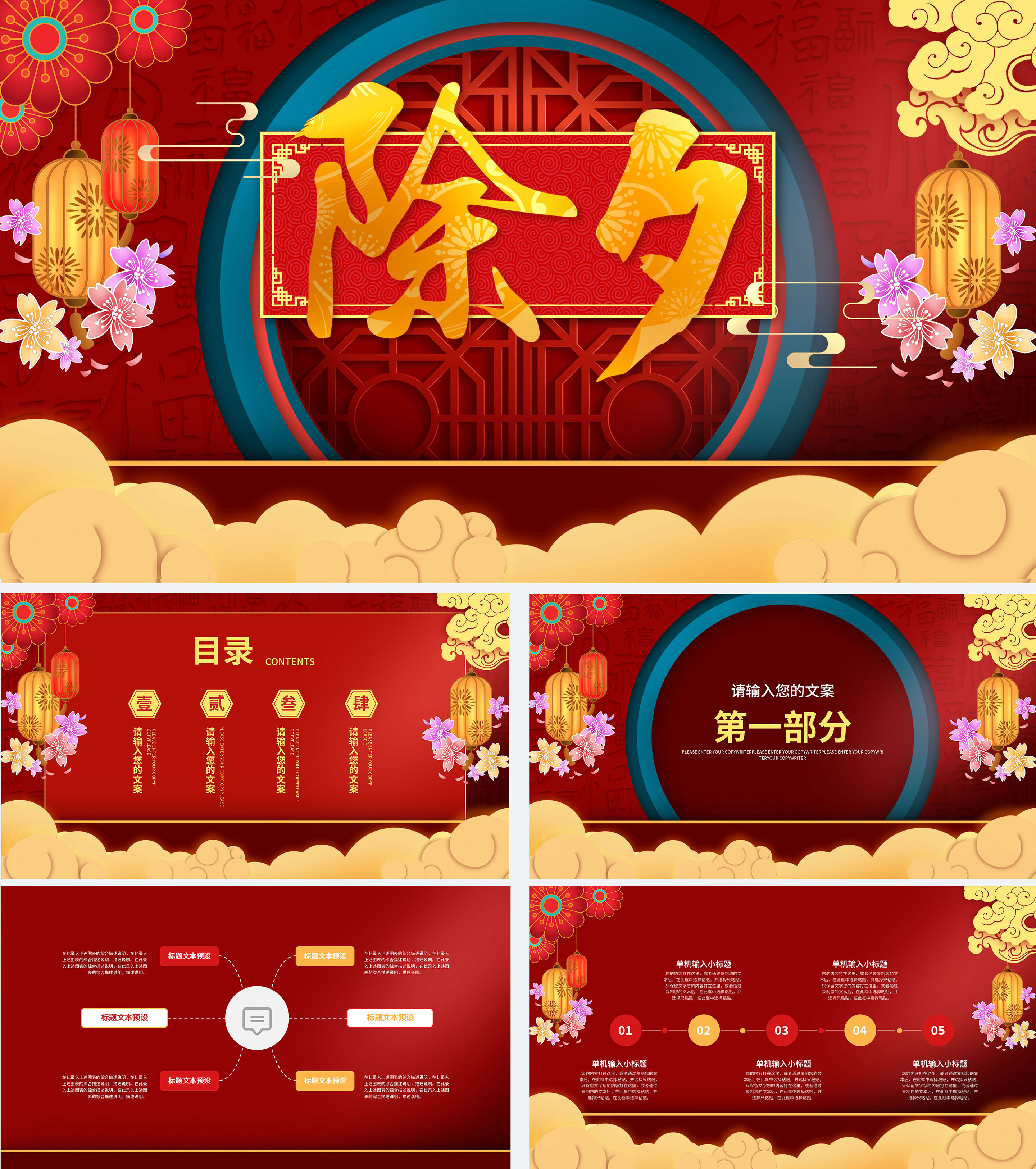 大红春节中式年会PPT模板