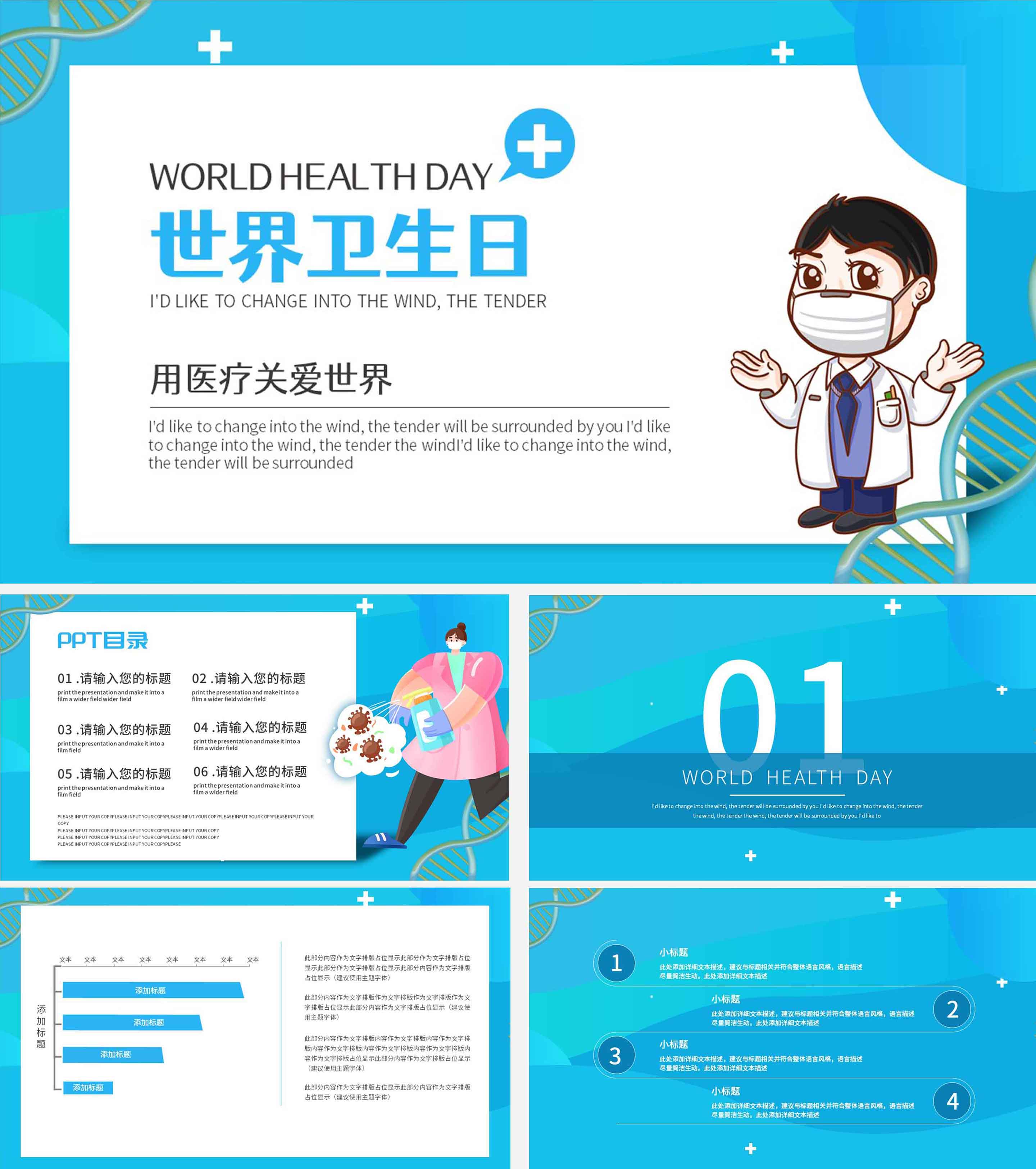 粉色卡通风浪漫情人节情侣娃娃PPT模板
