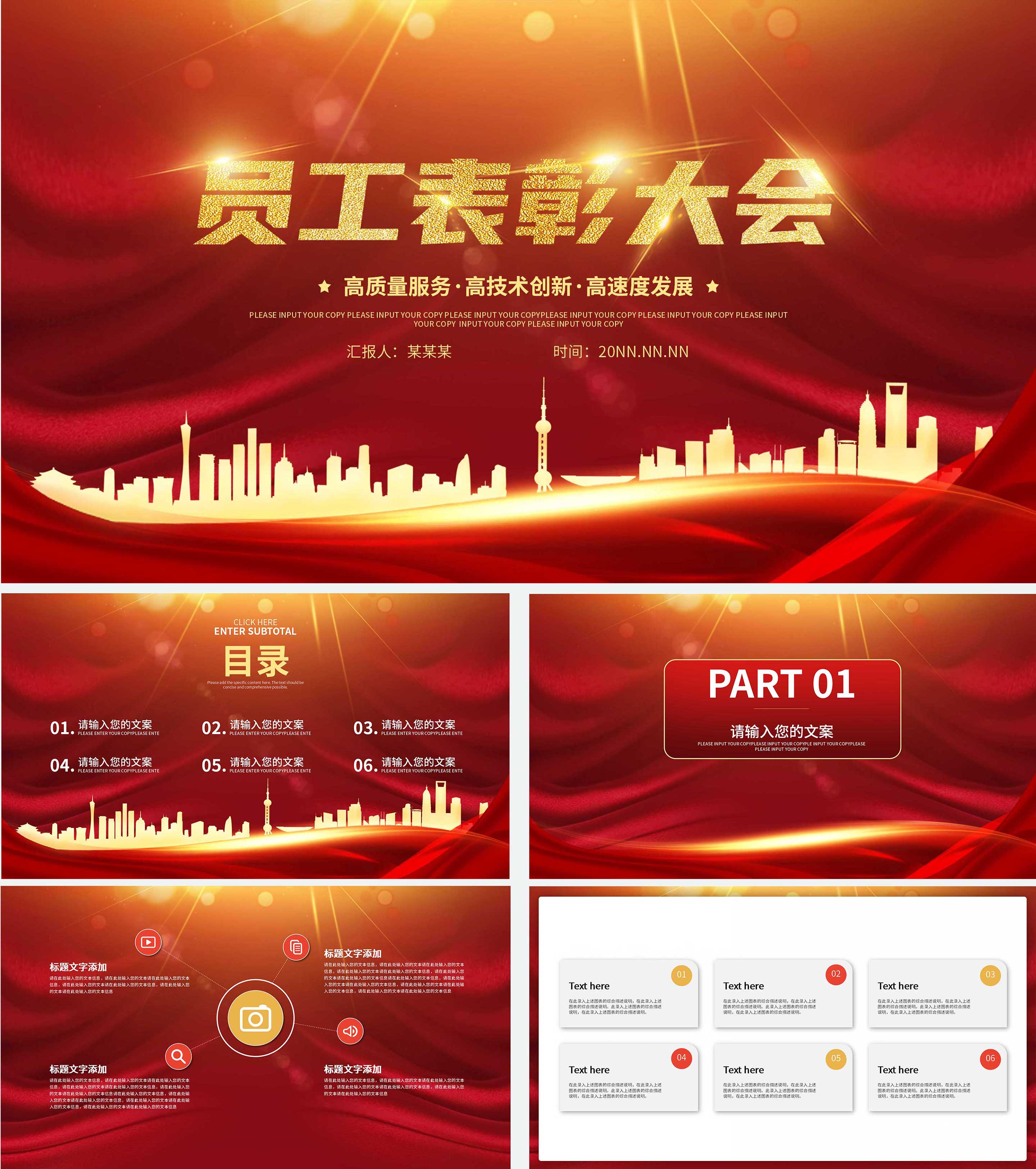 黄色几何风凝心聚力蓄势待发表彰大会PPT模板