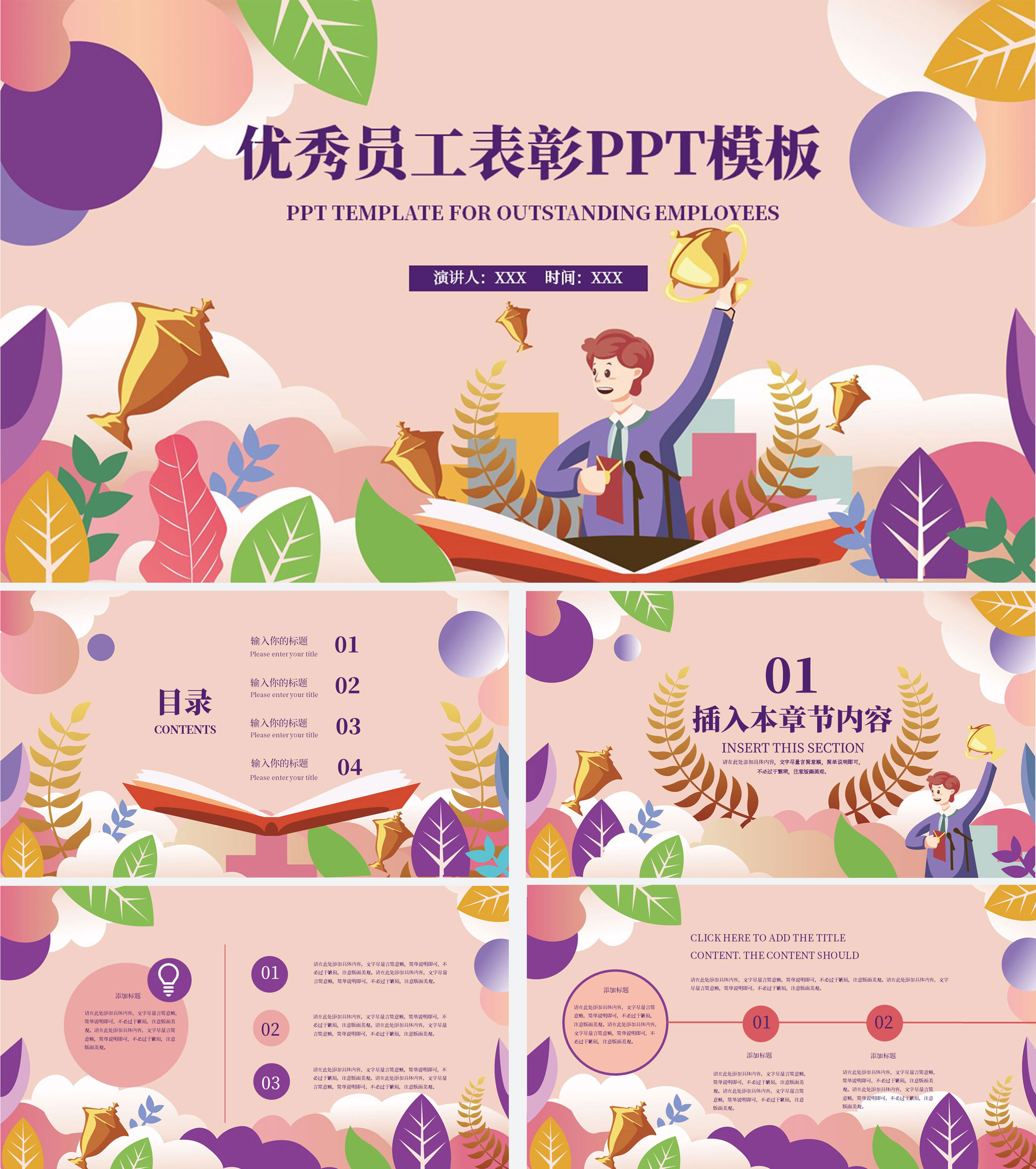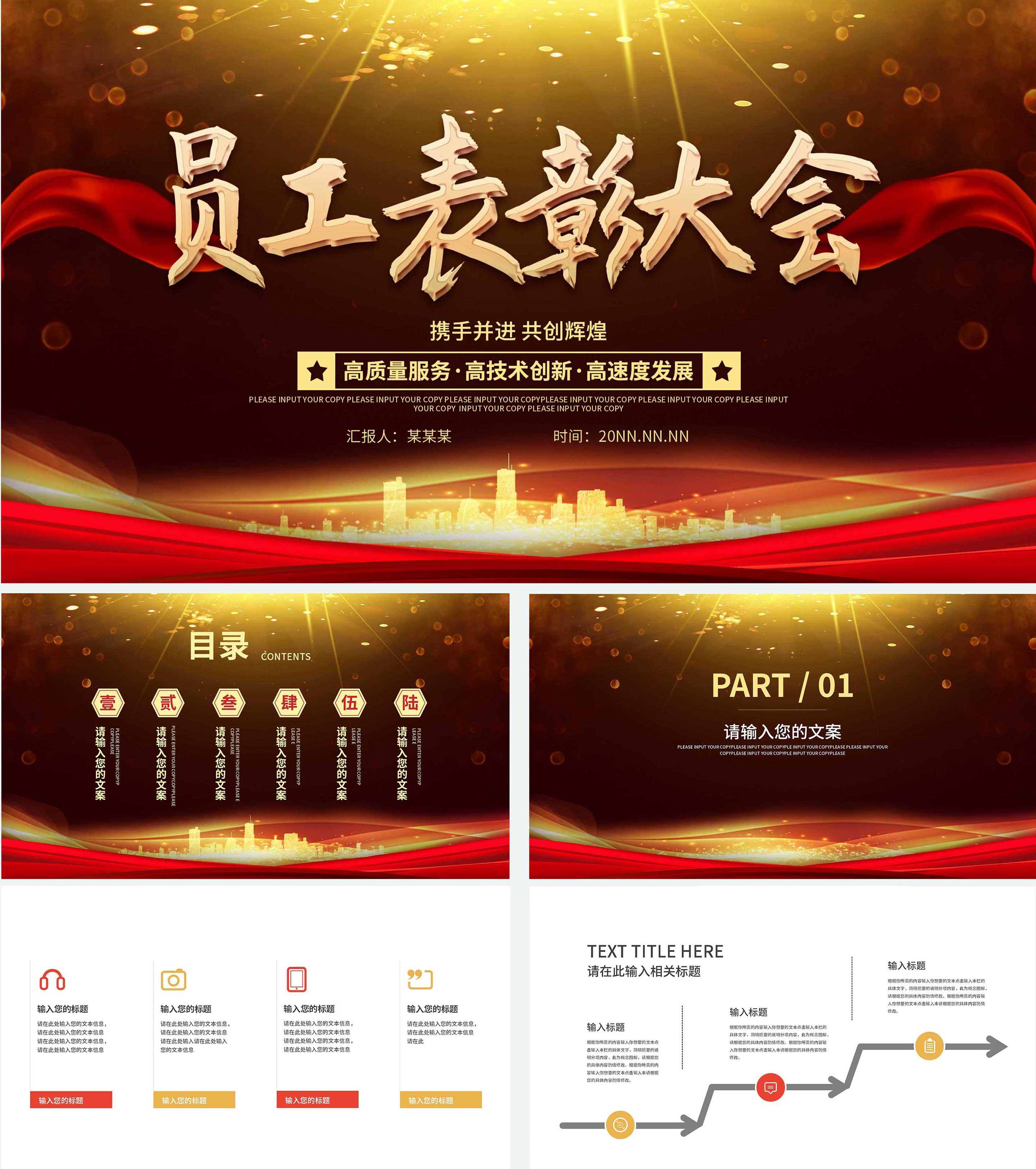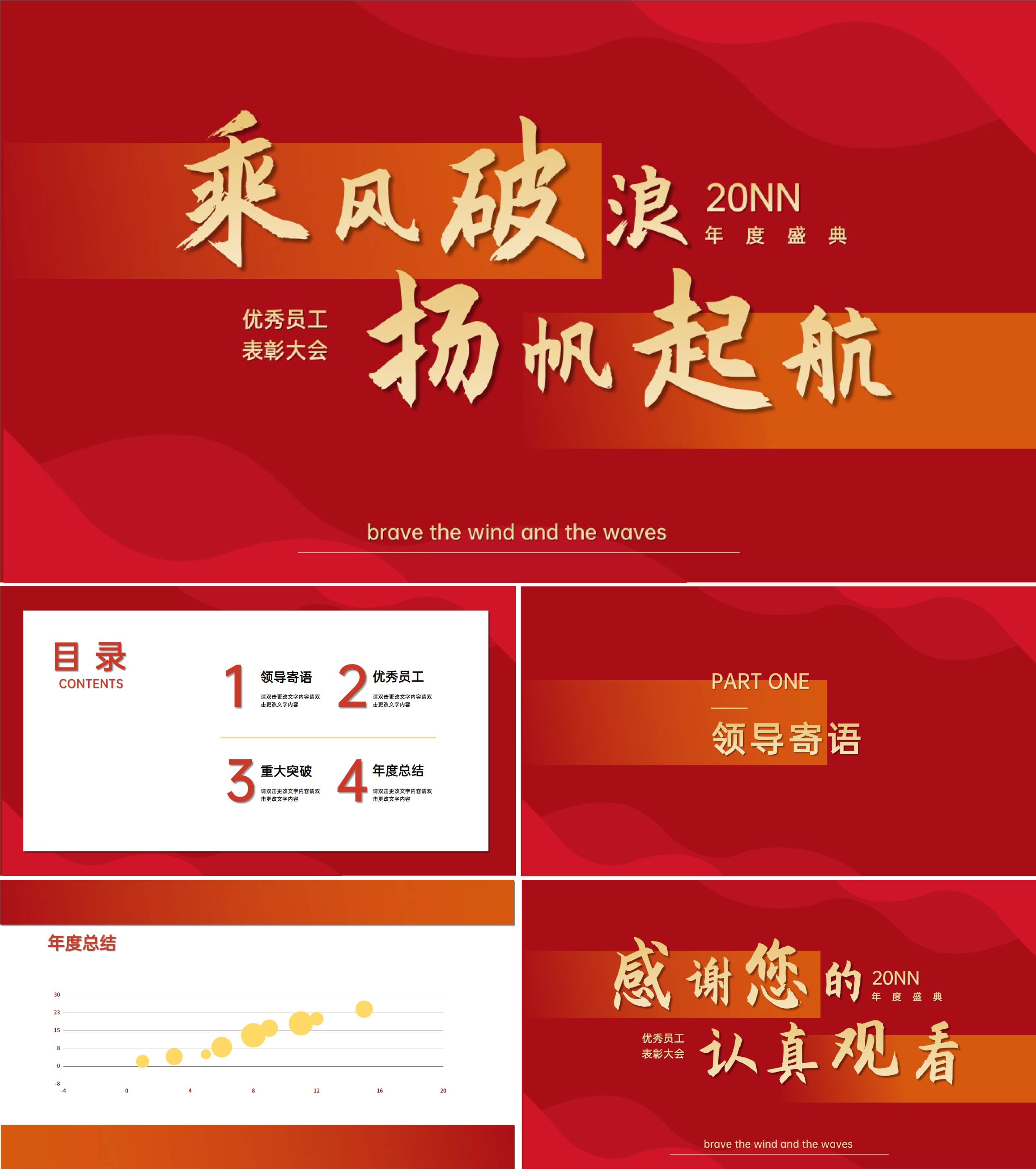 红色简约风乘风破浪扬帆起航工作表彰PPT模板