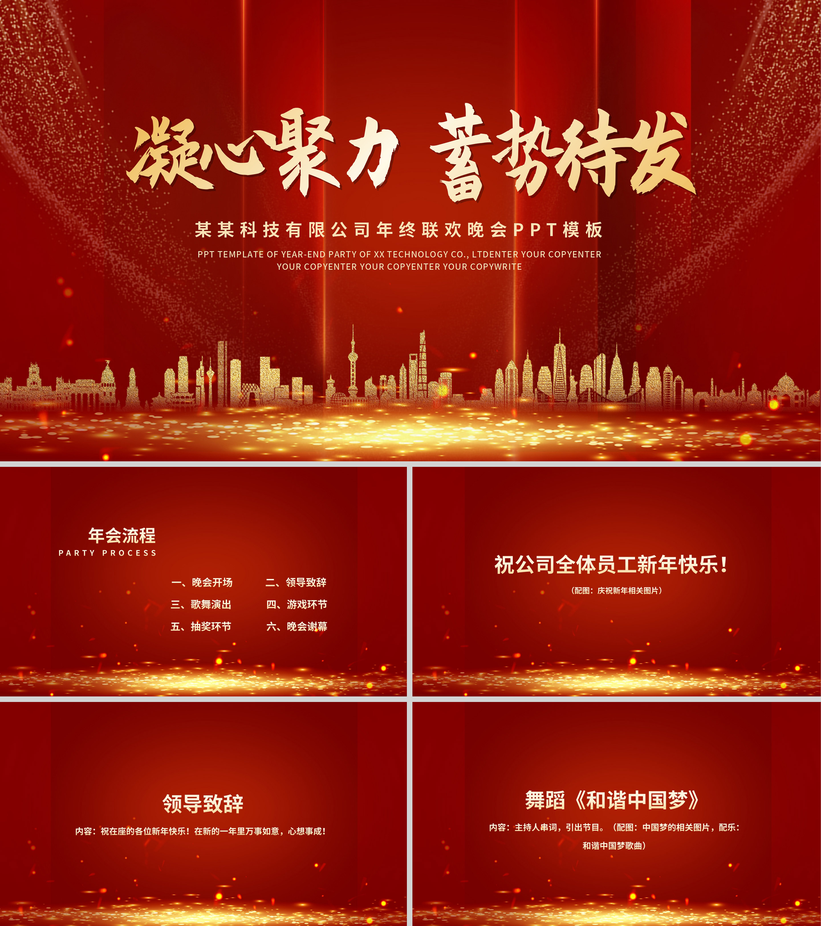 黄色鎏金风企业年终年会主持庆典PPT模板