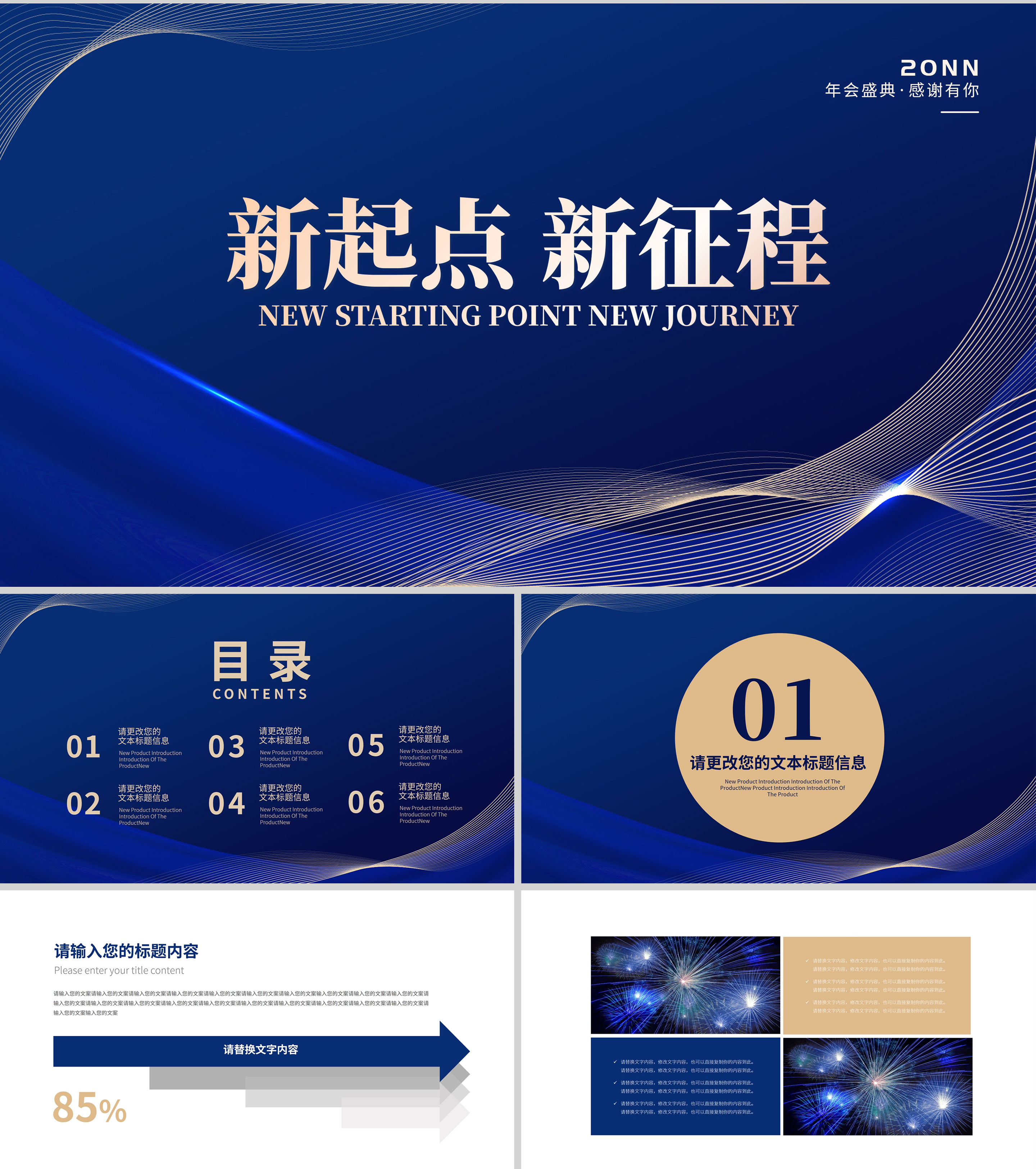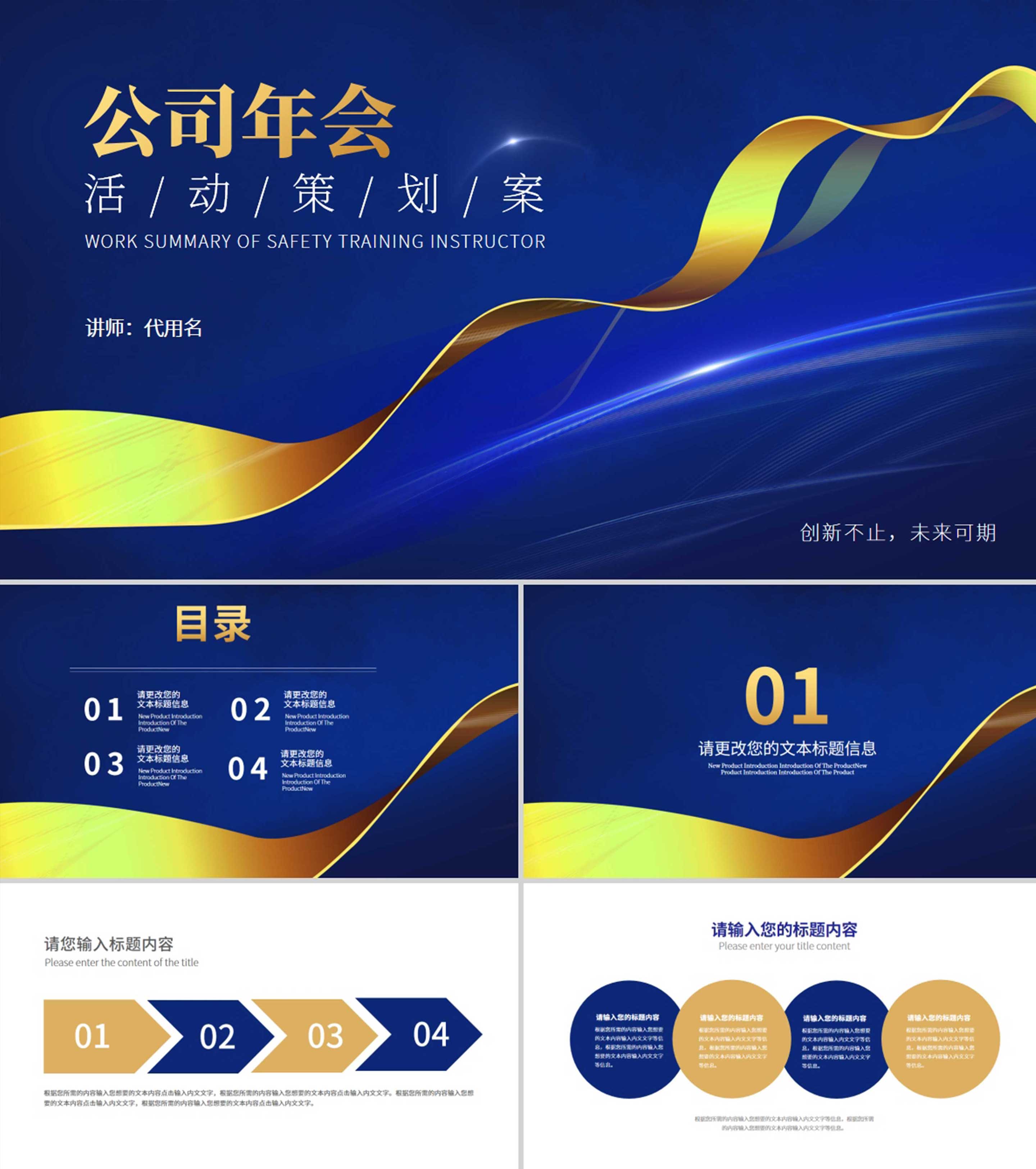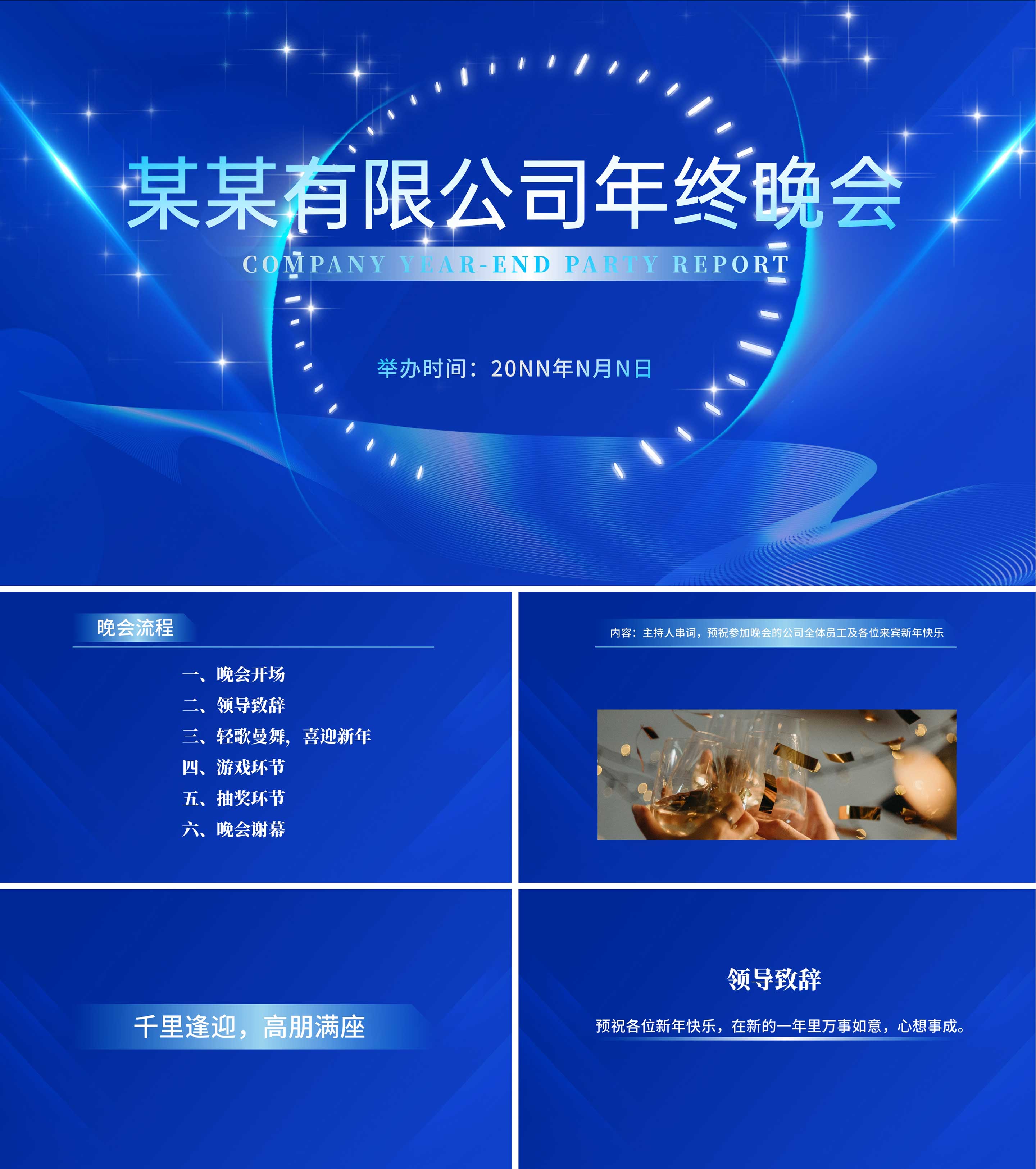蓝色简约风公司年会活动主持策划庆典PPT模板