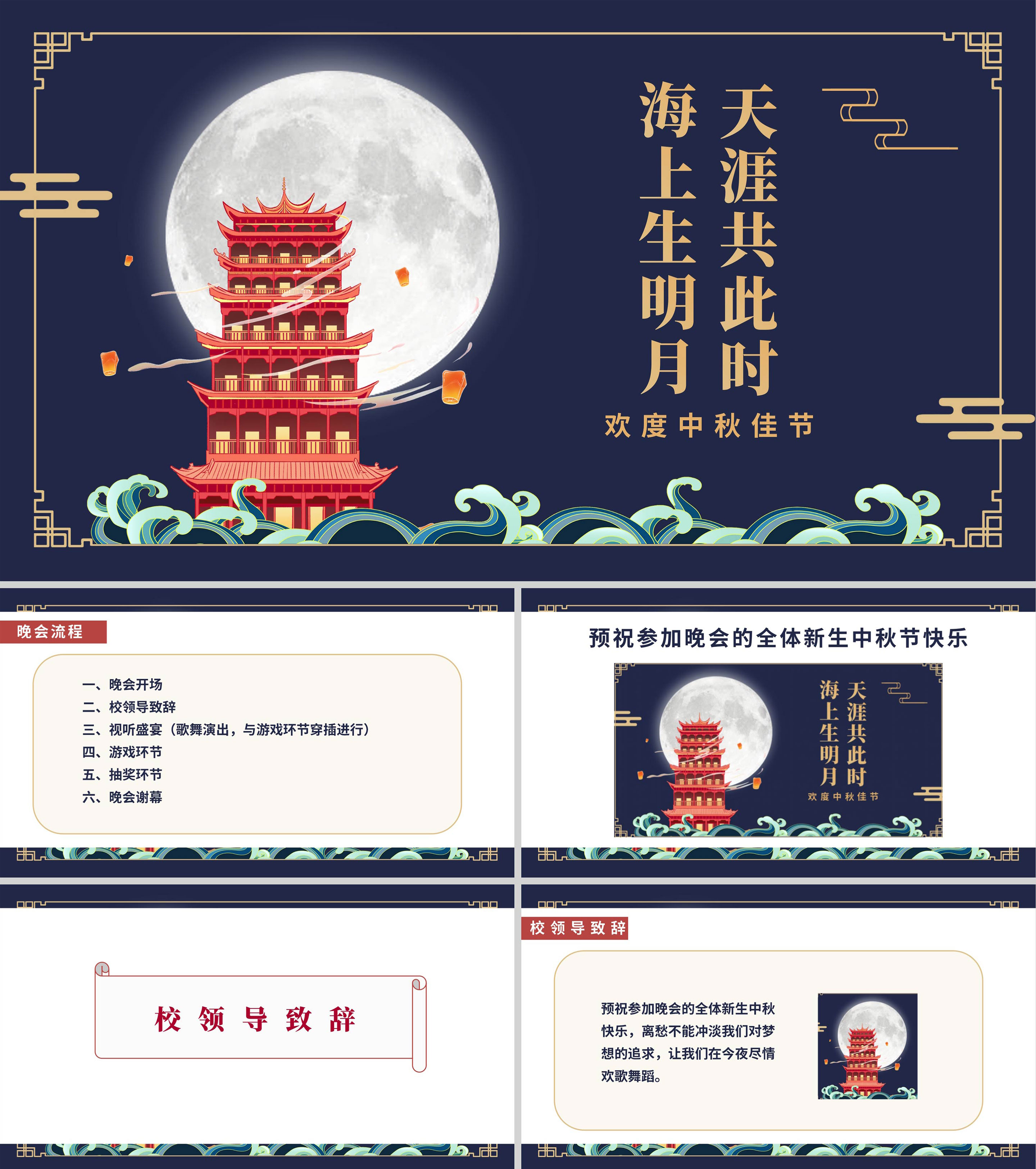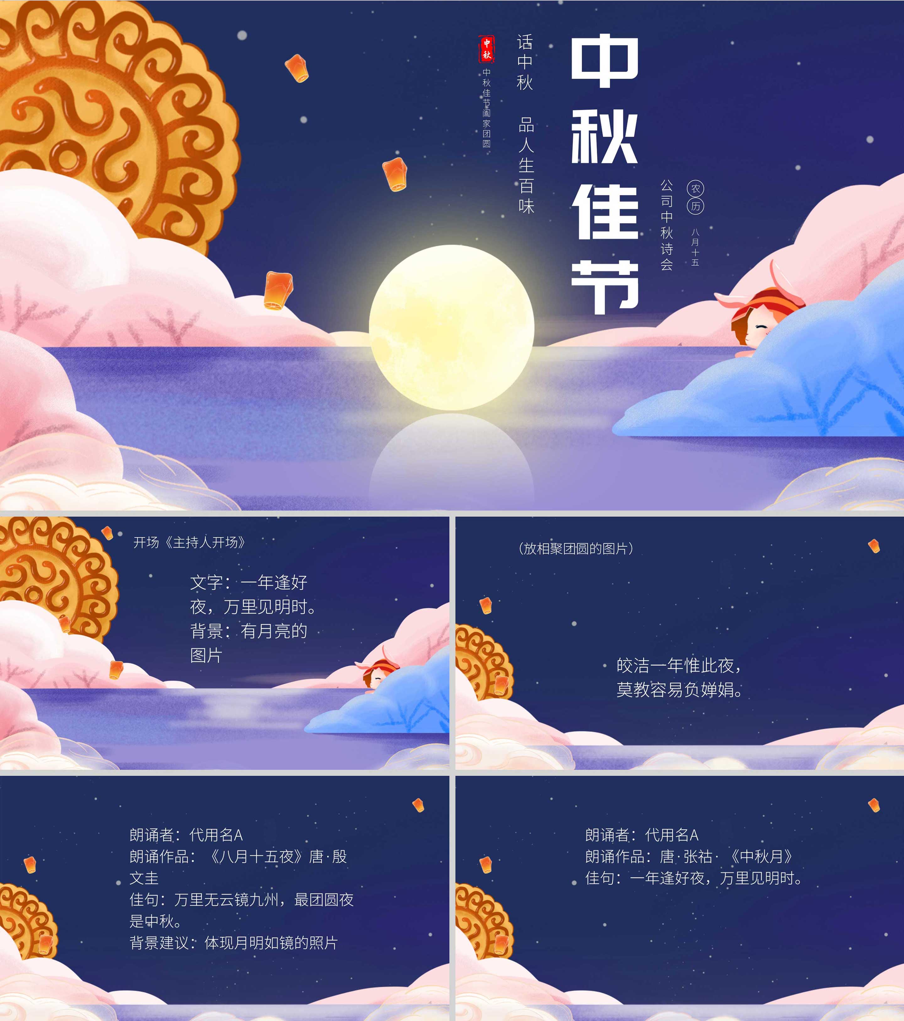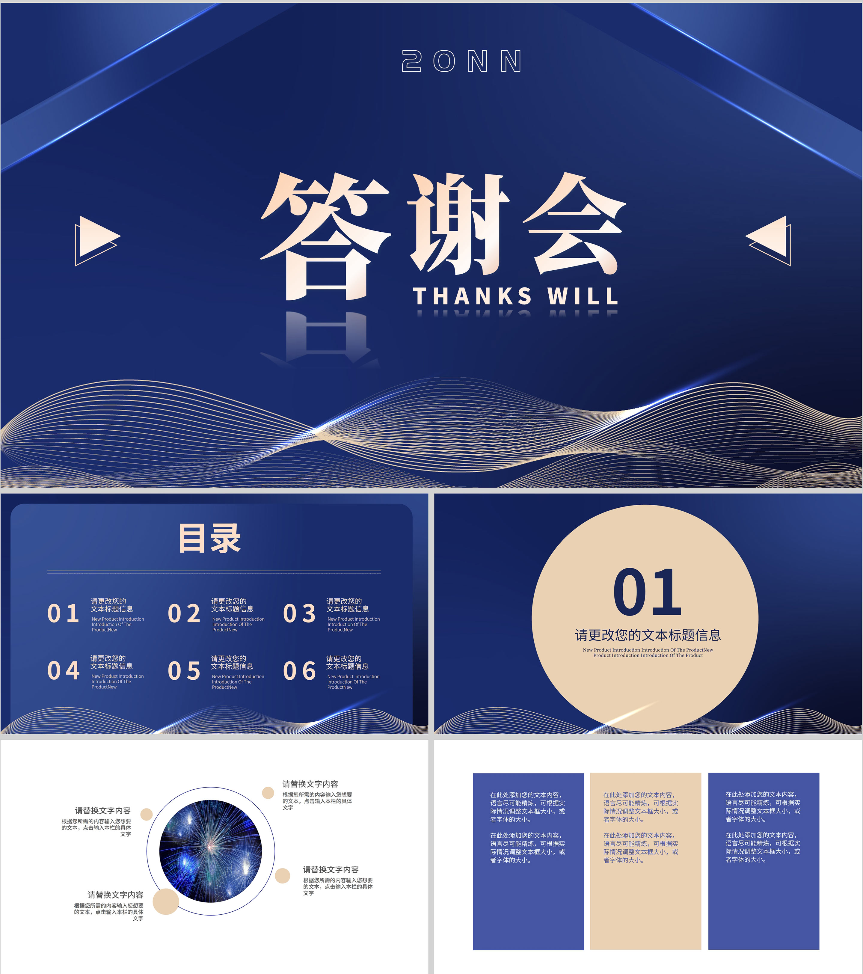 蓝色简约风公司年会活动主持策划庆典PPT模板
