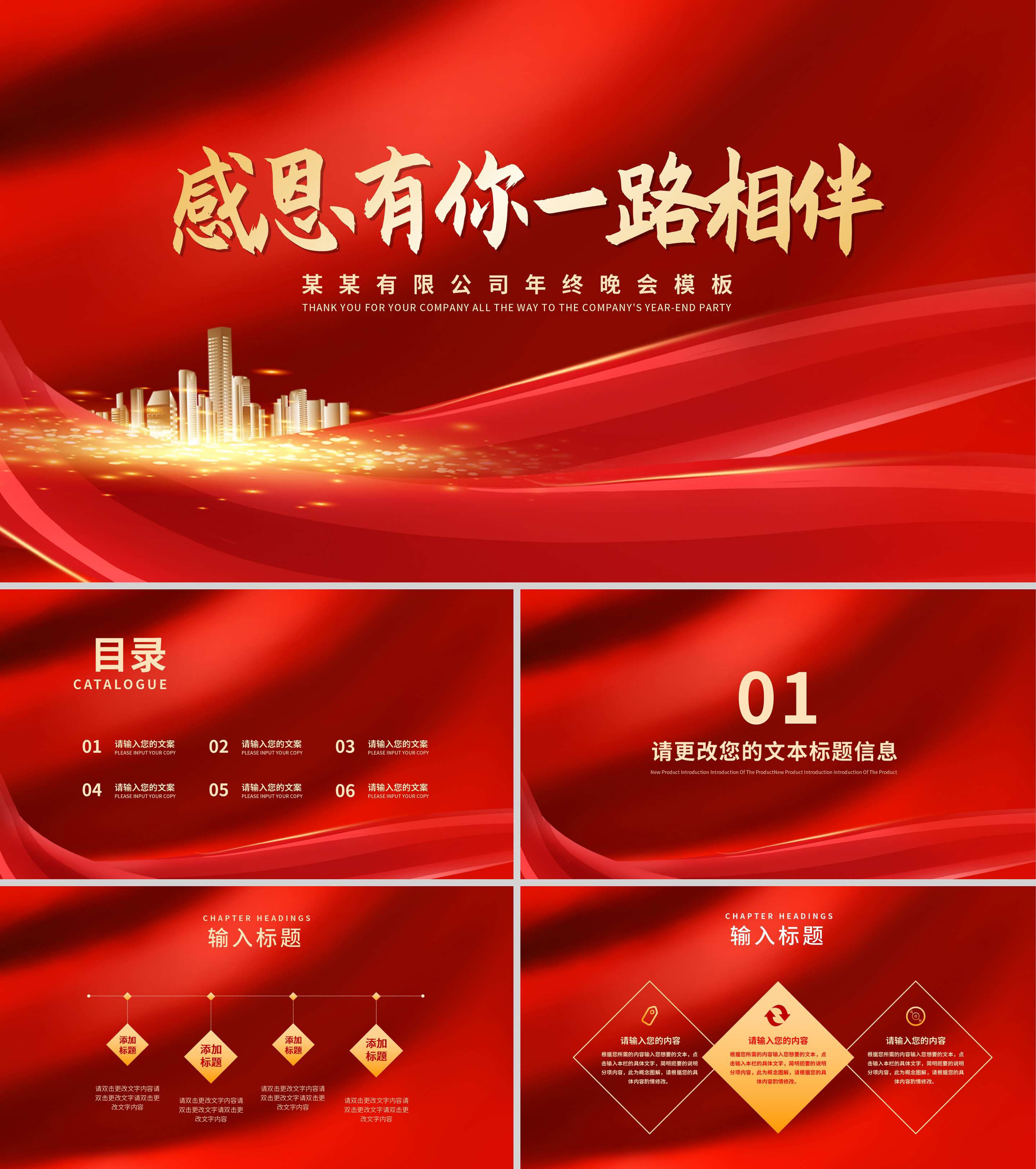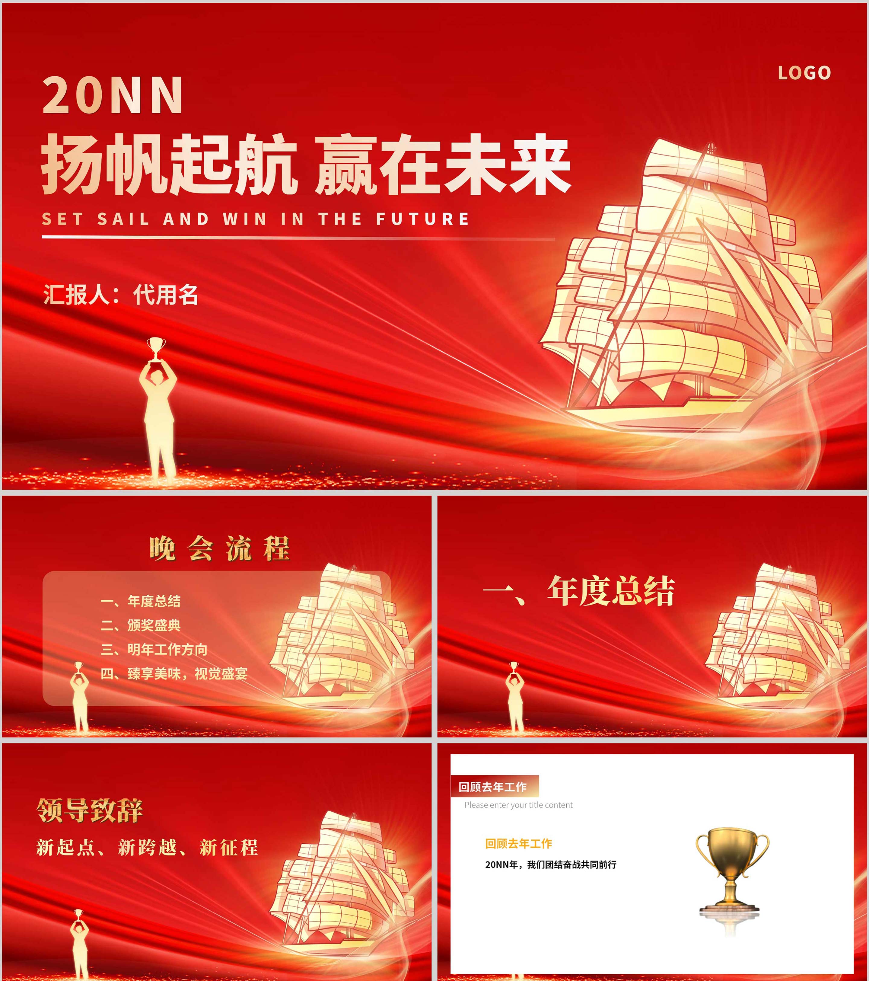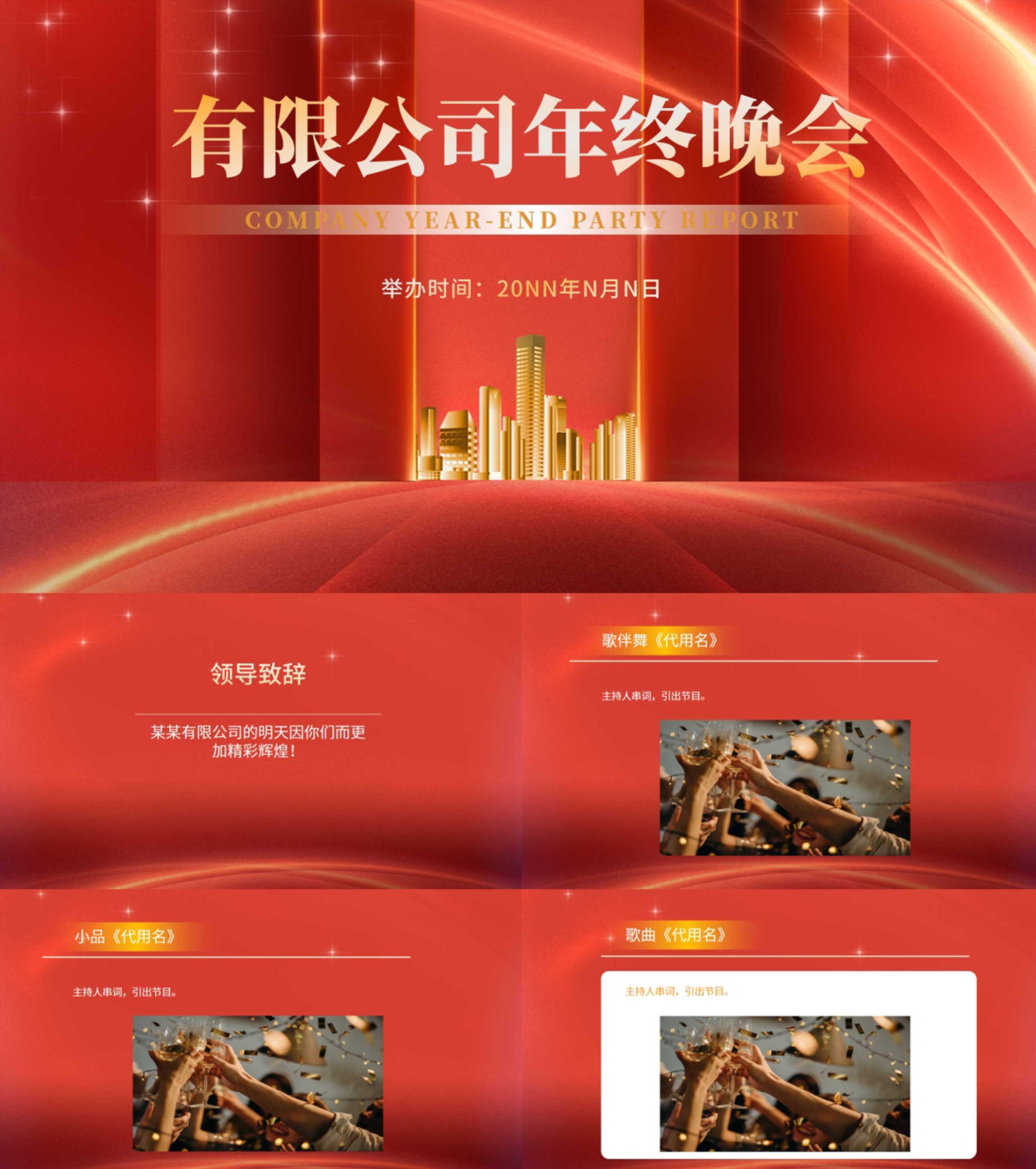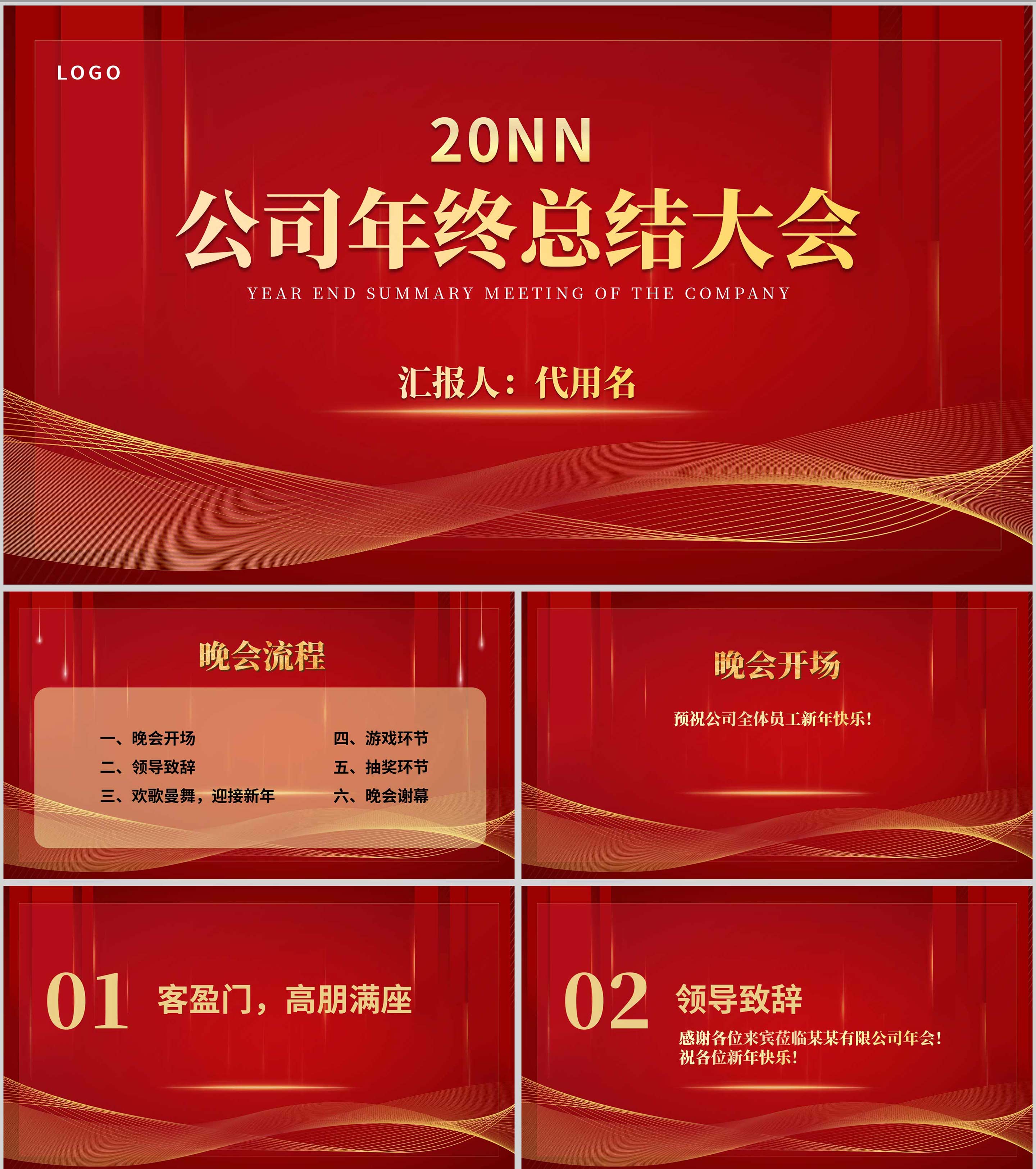红色商务风公司年终晚会年会主持庆典PPT模板