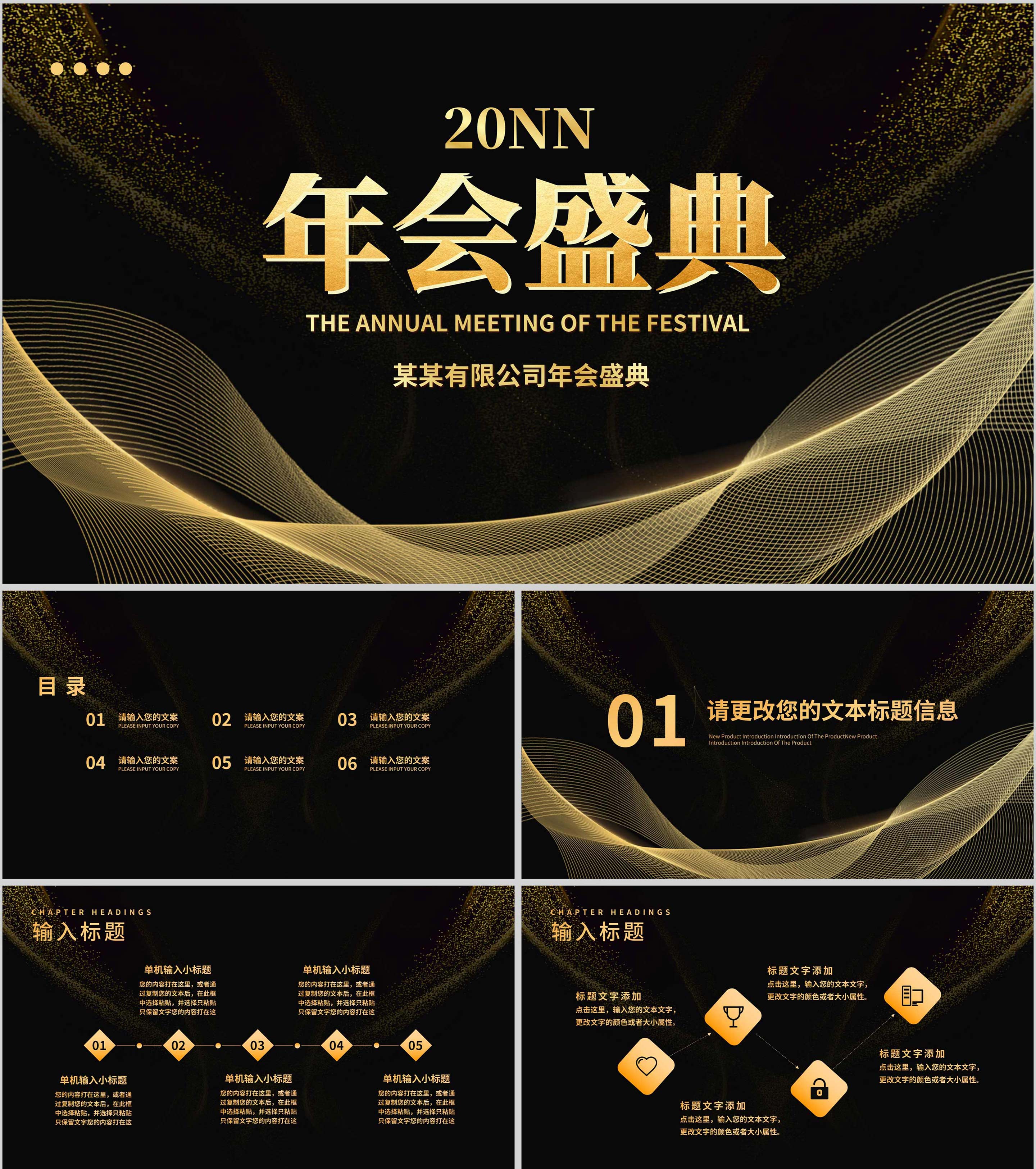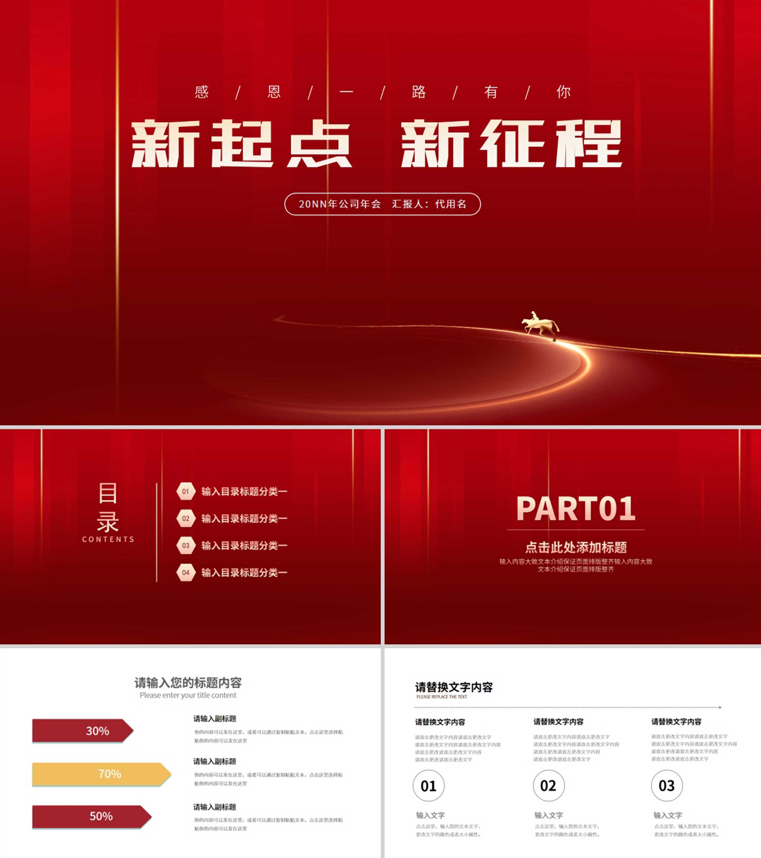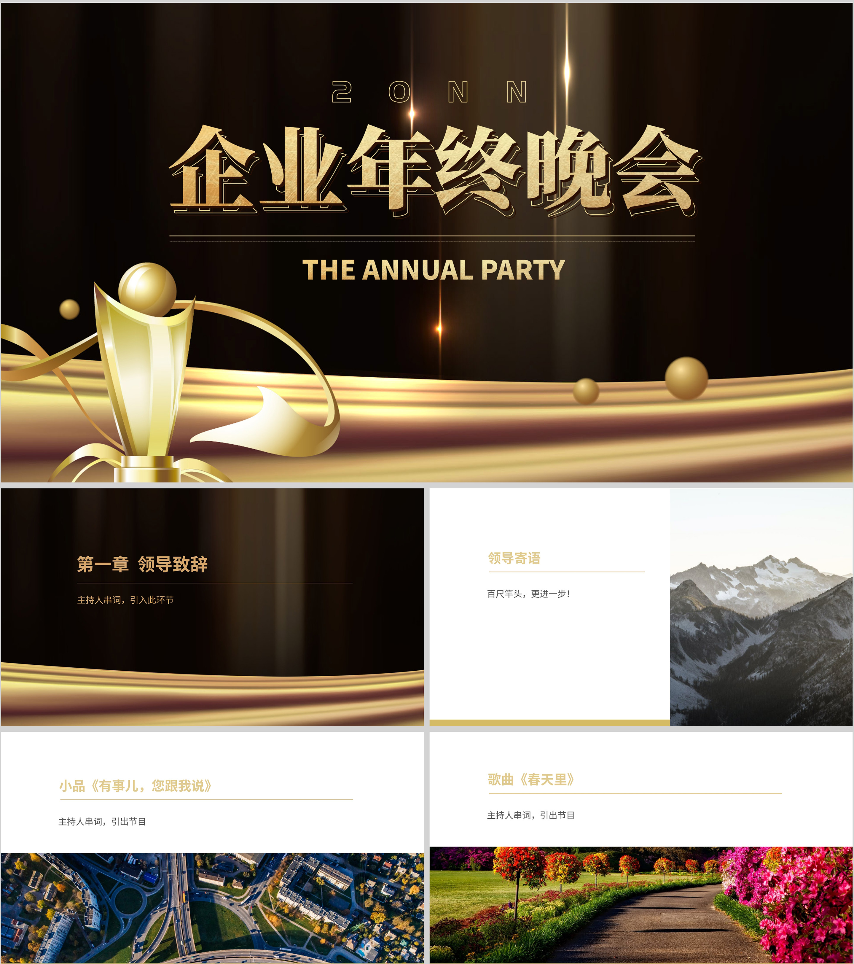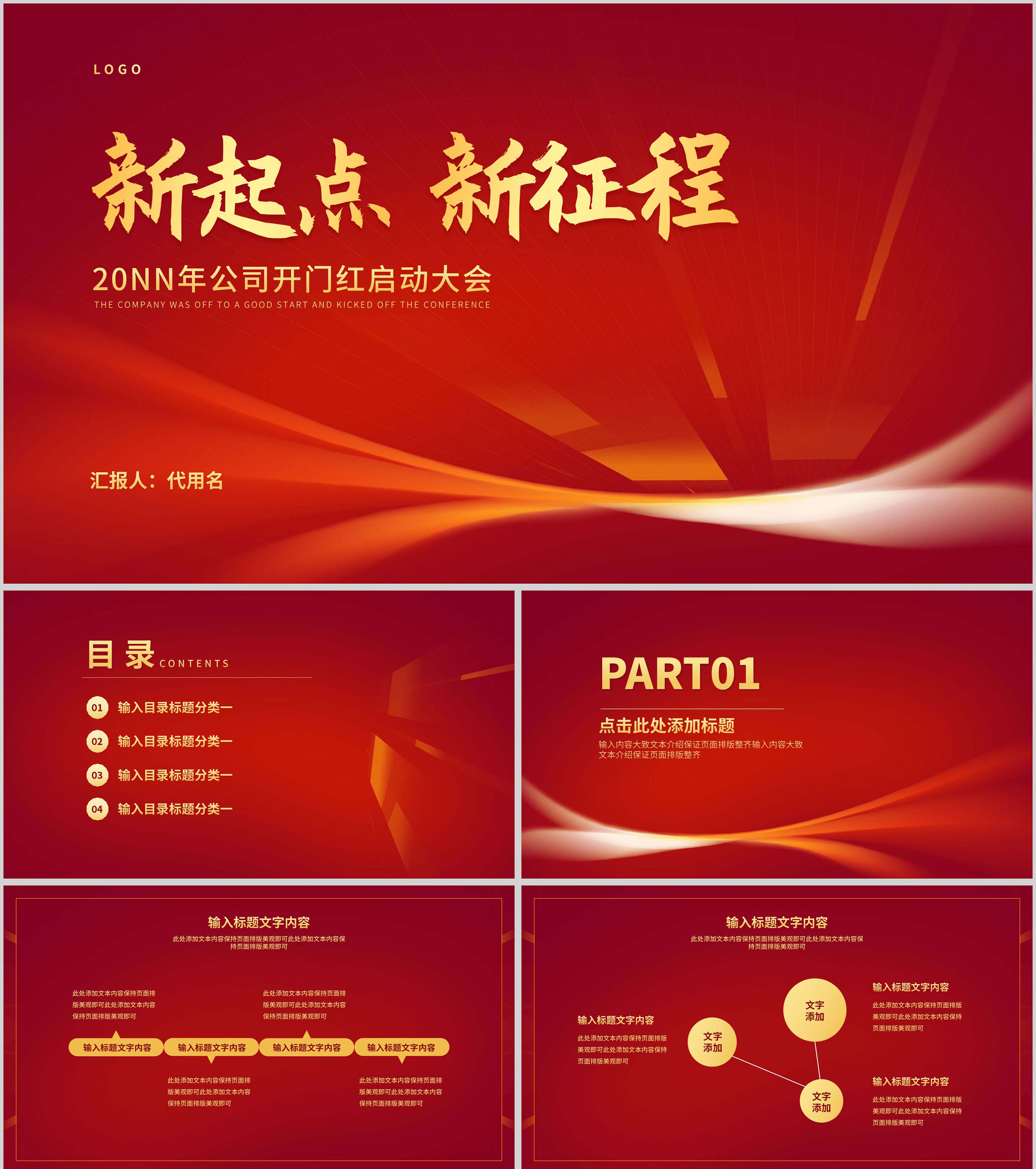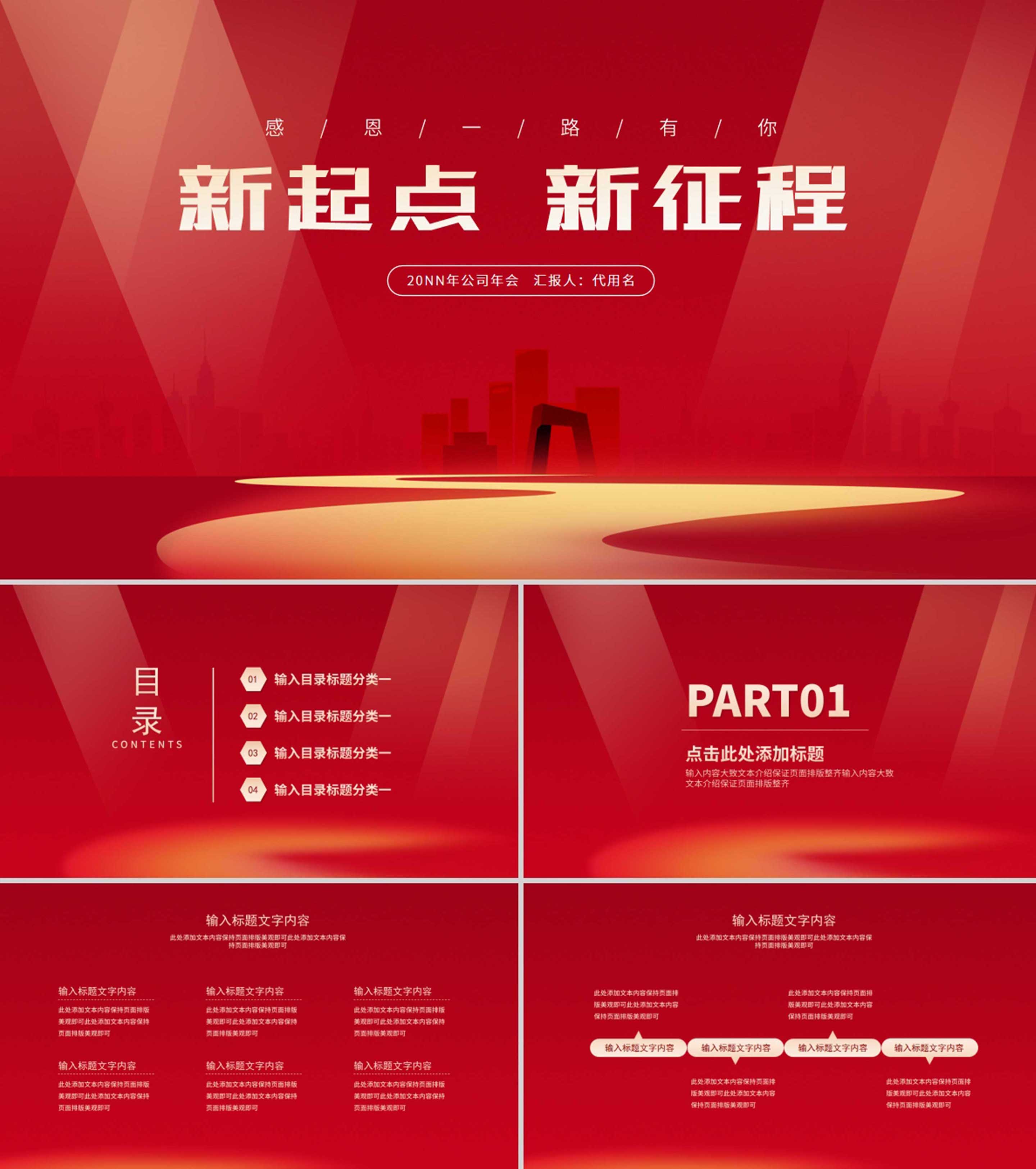 红色商务风公司年终晚会年会主持庆典PPT模板