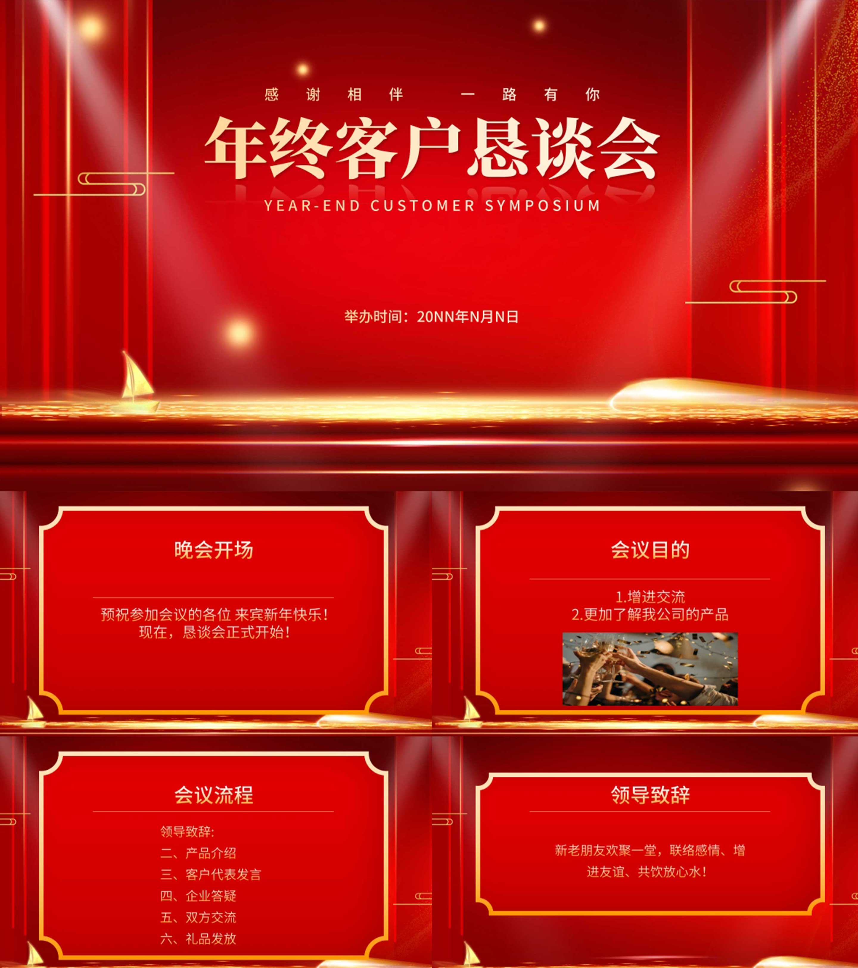 红色商务风年终客户恳谈会销售庆典PPT模板