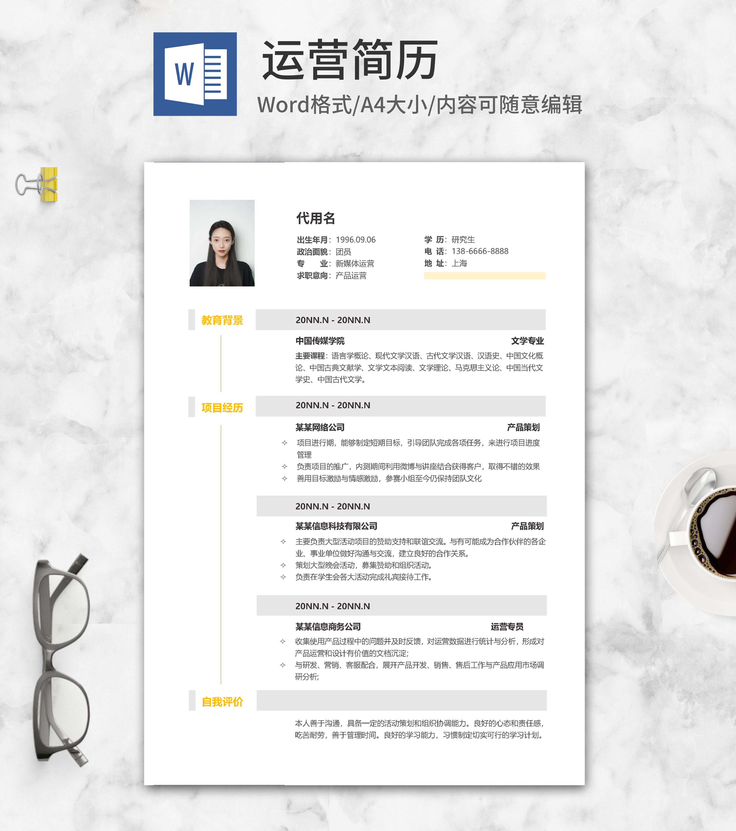 产品运营个人简历word模板