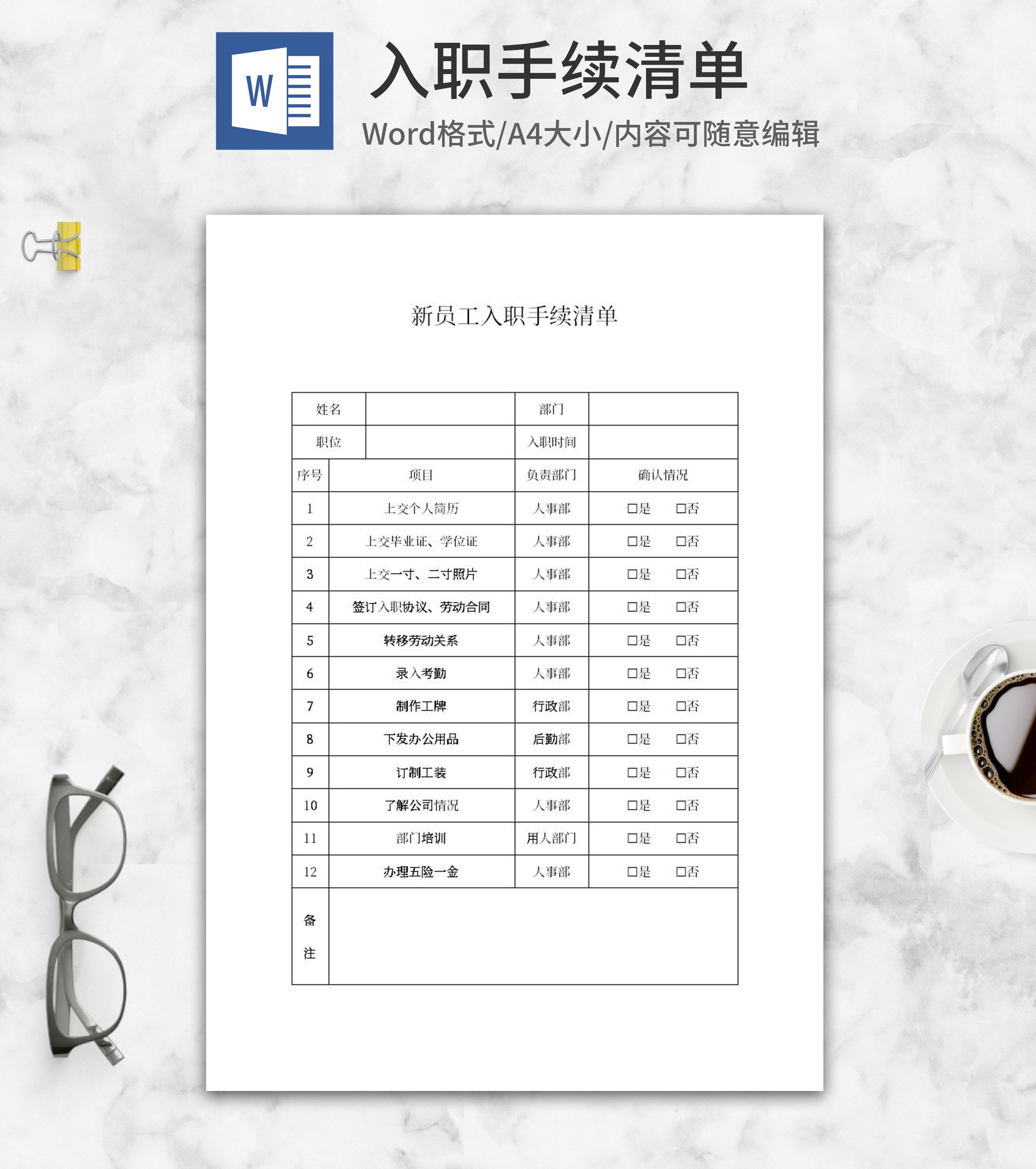 新员工入职手续清单word模板