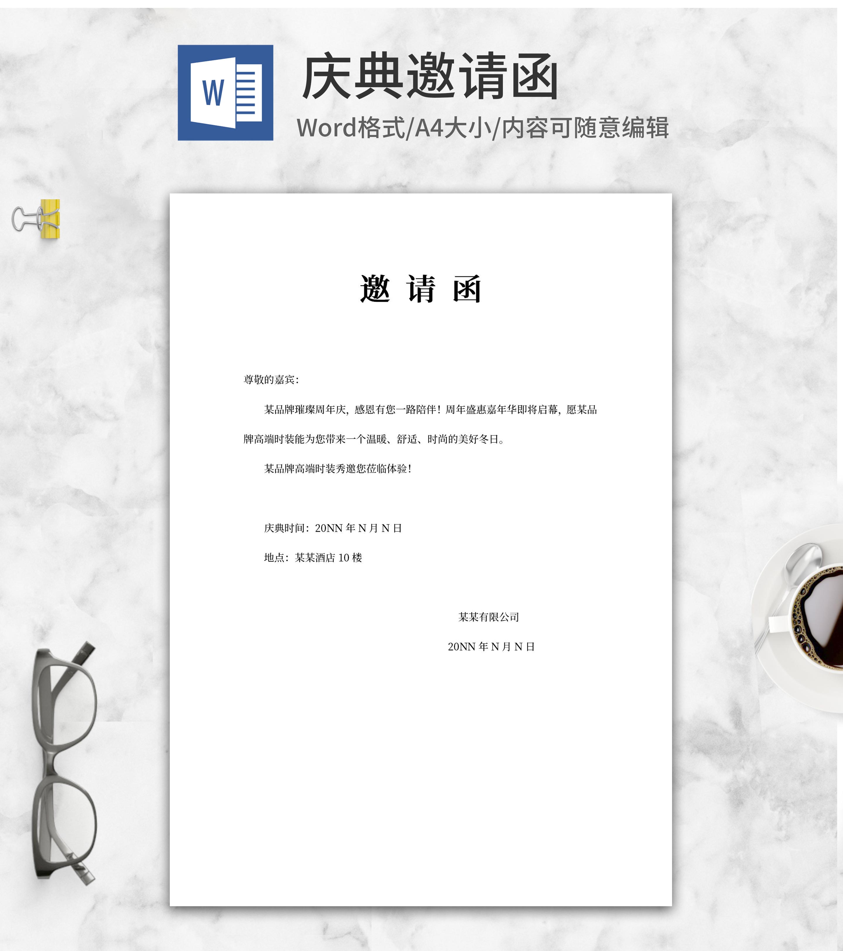 品牌时装周年秀邀请函word模板