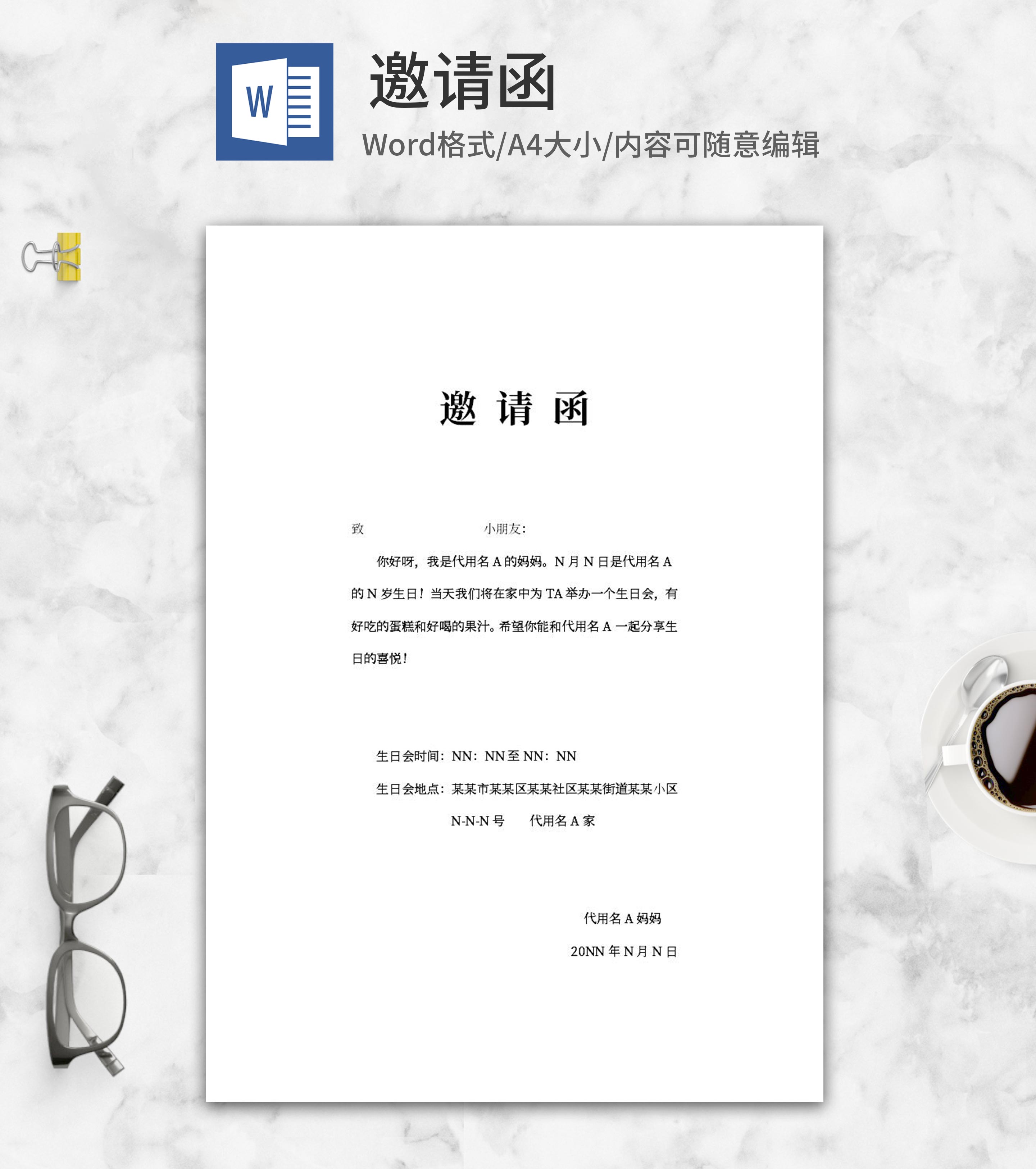 生日会邀请函word模板