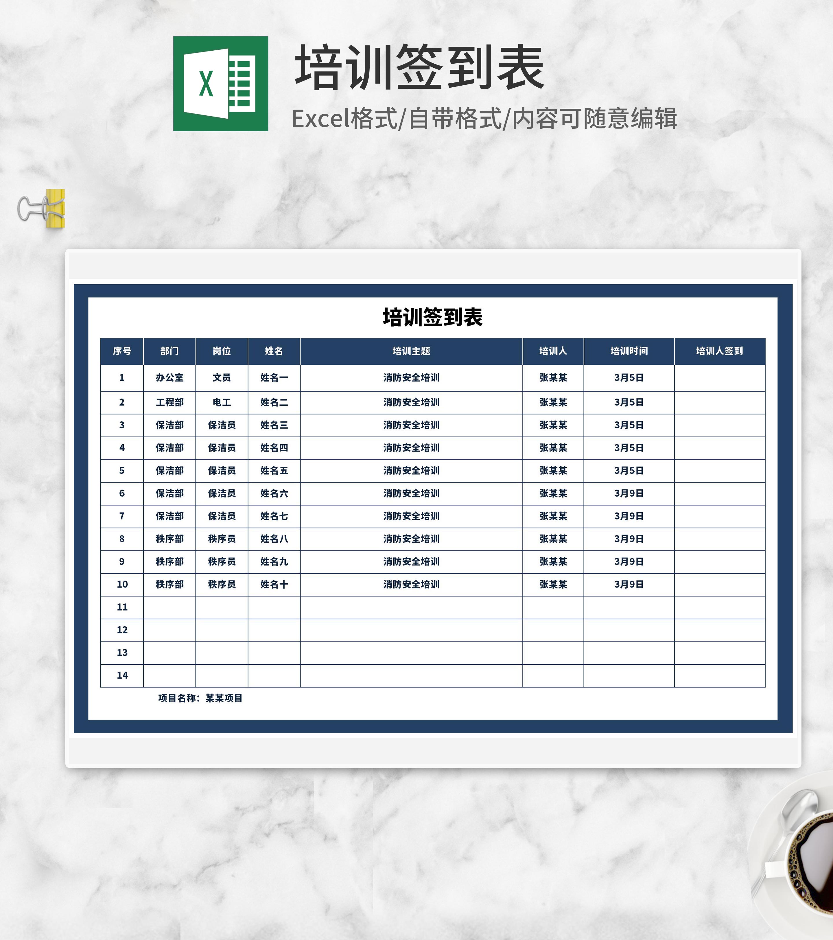 蓝色公司消防培训签到表Excel模板