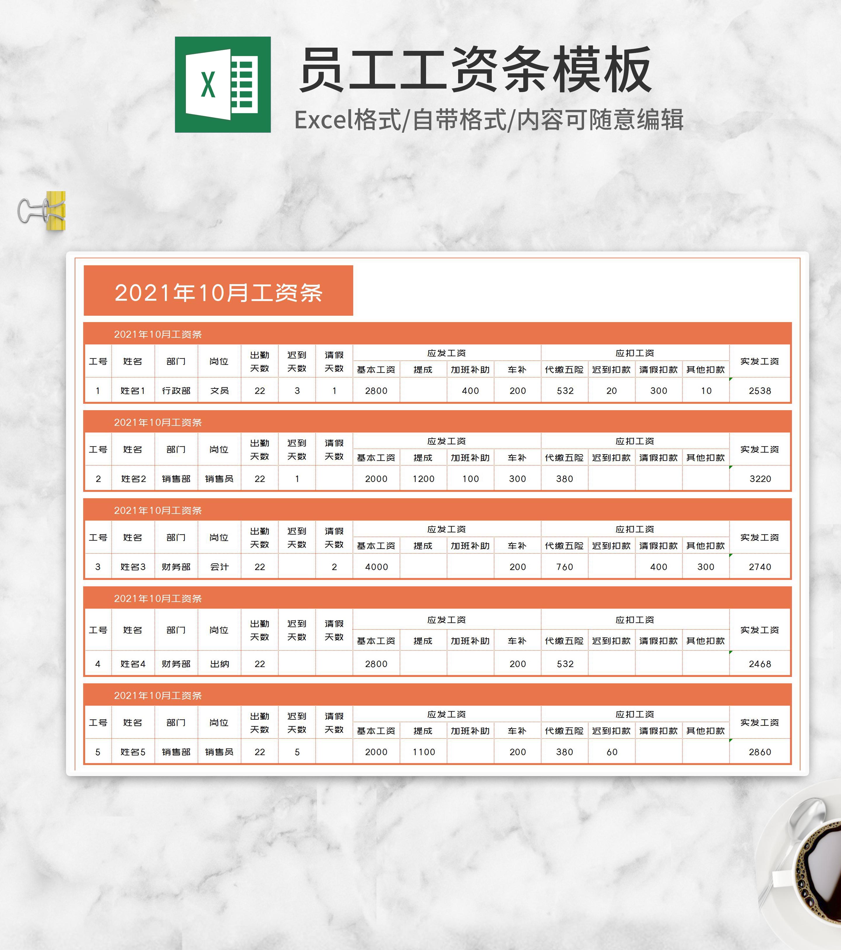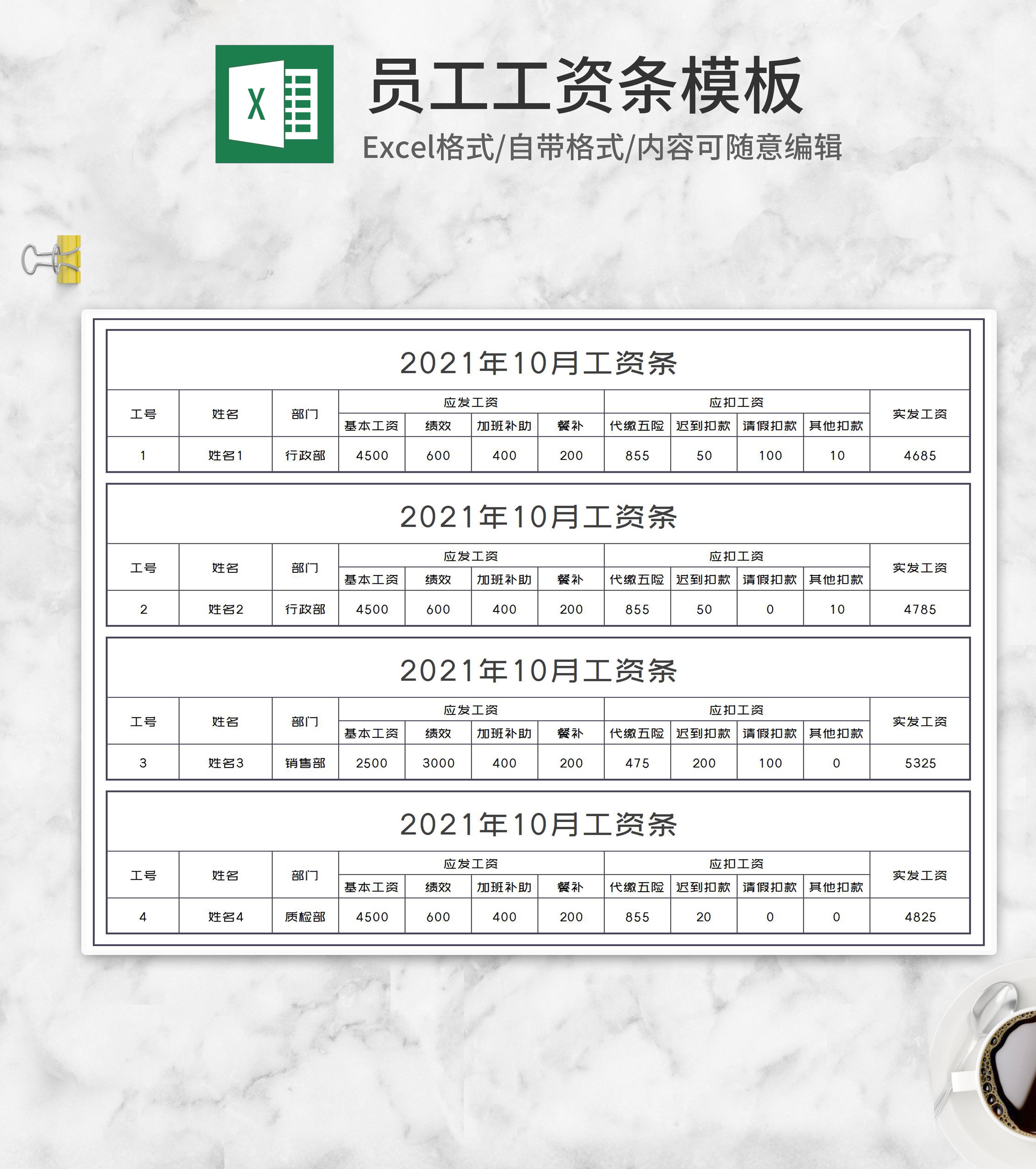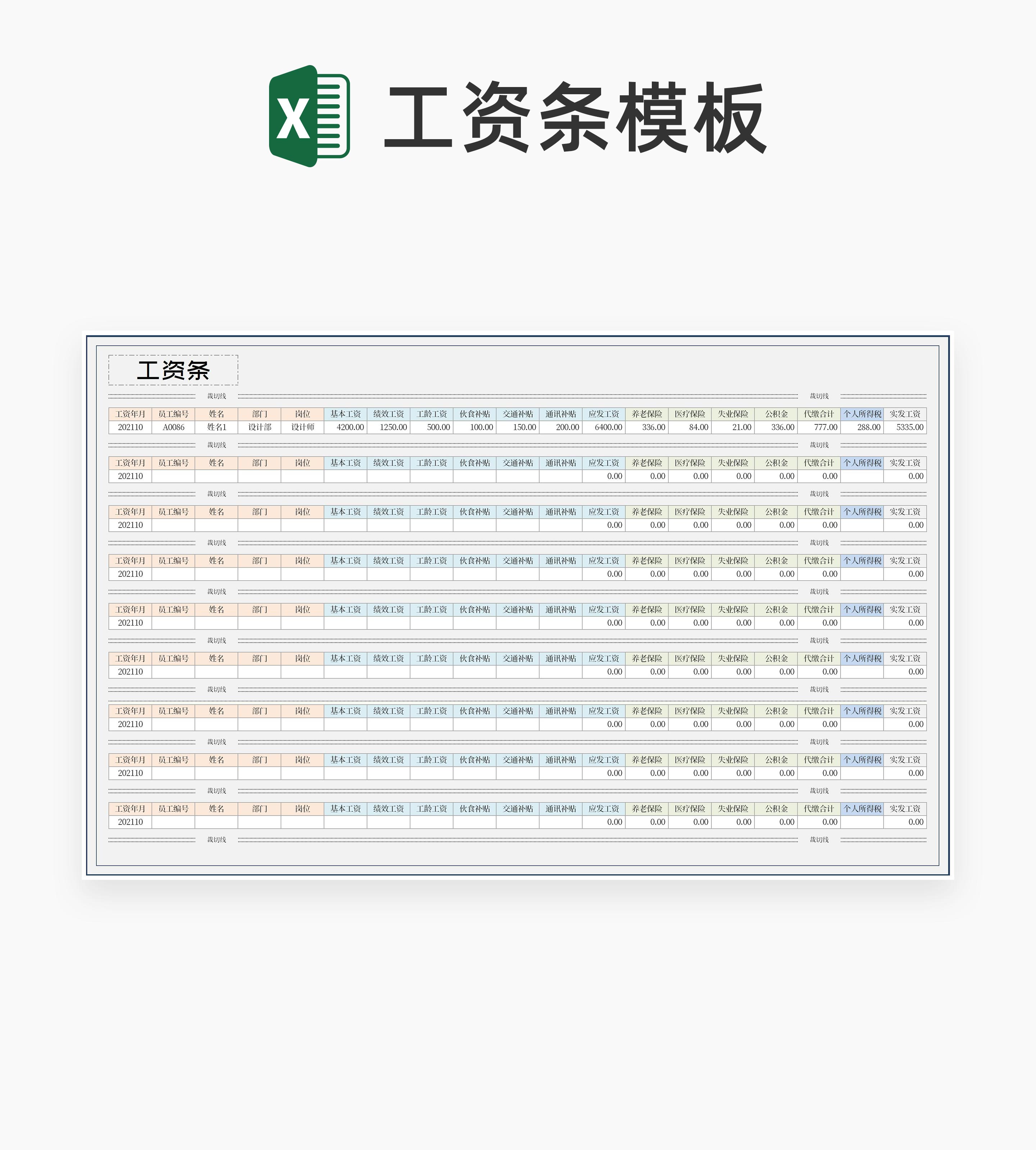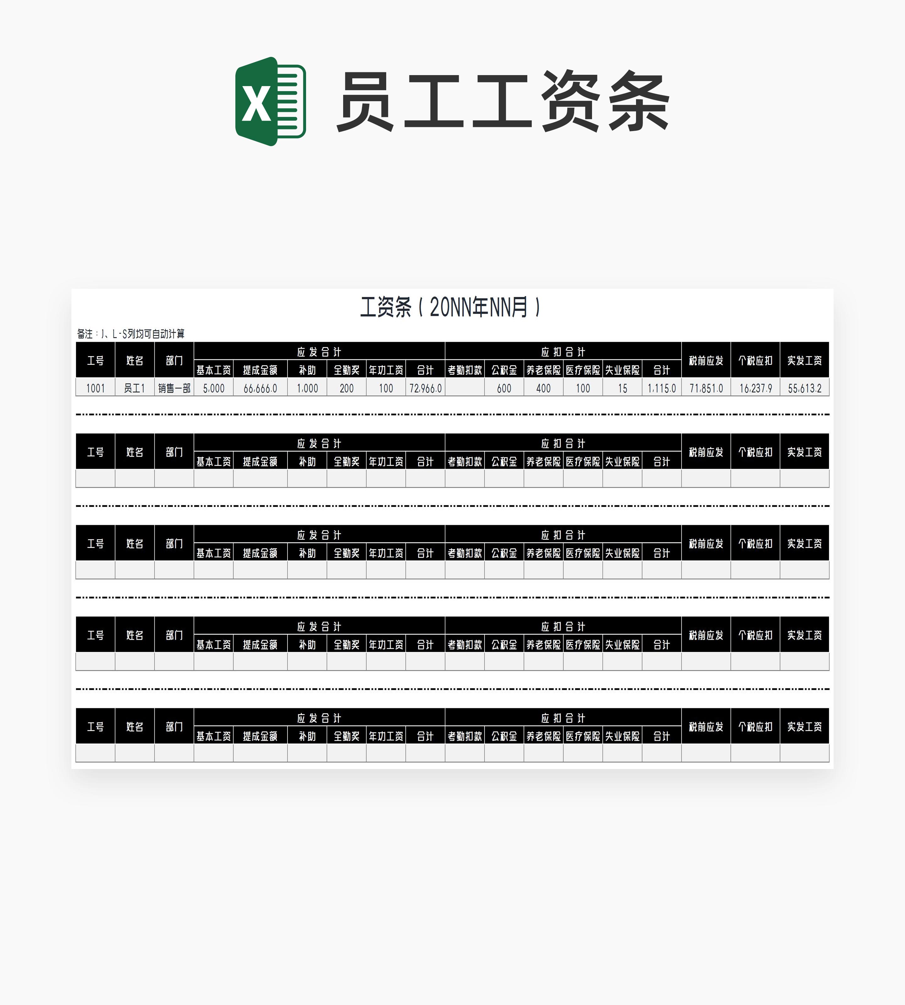 单位员工工资条Excel模板