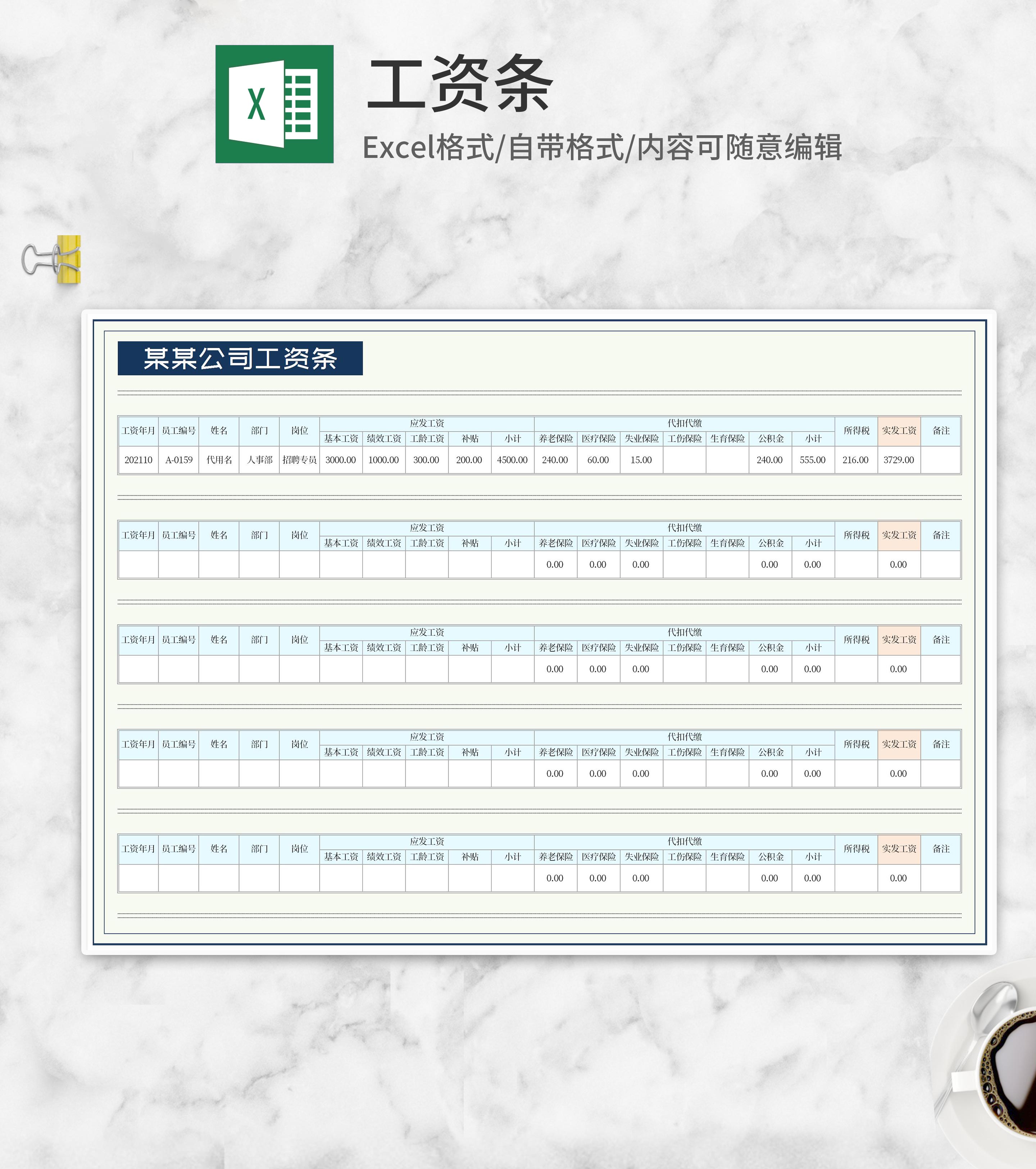 公司工资条Excel模板