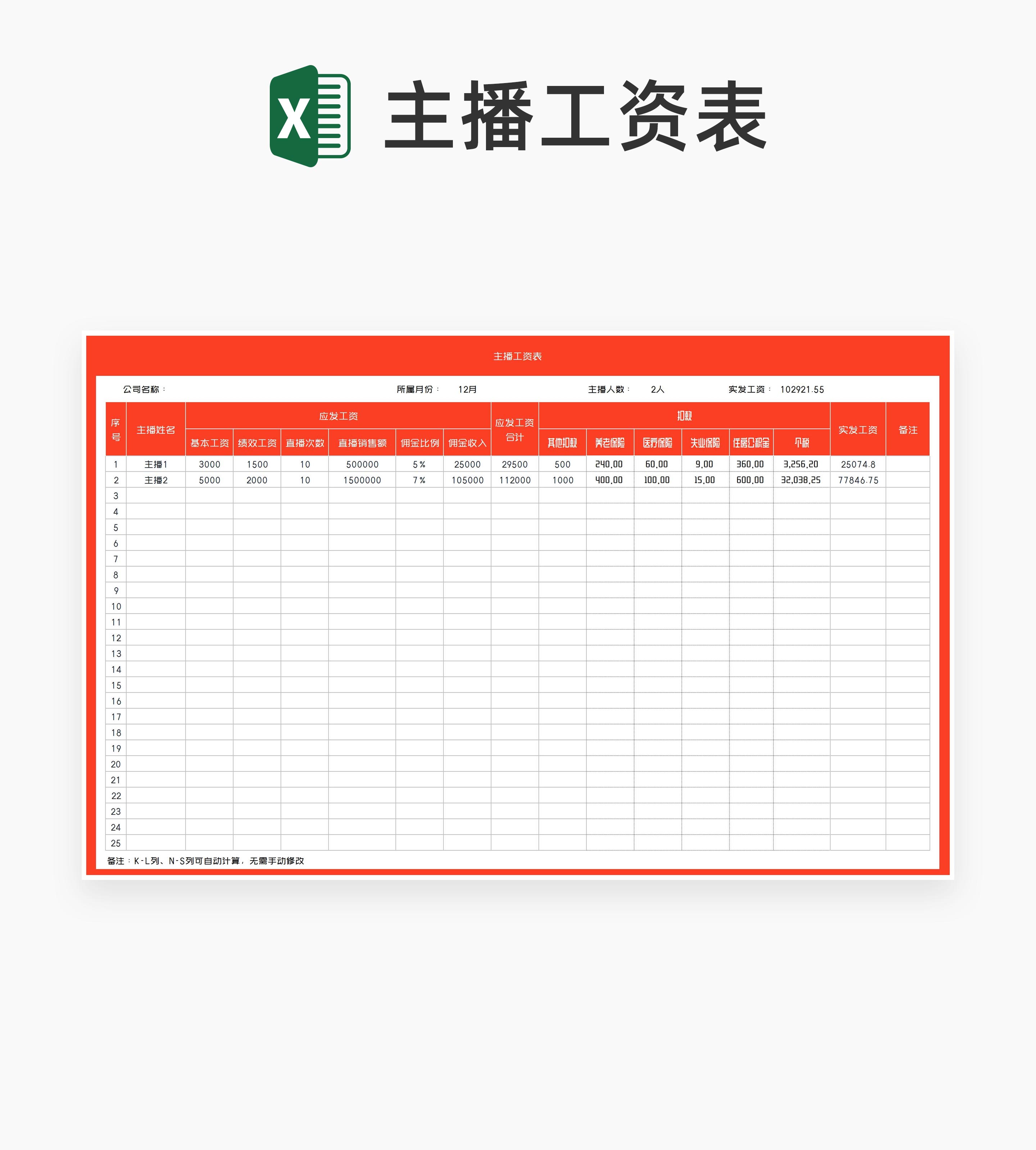 橙色主播工资表Excel模板