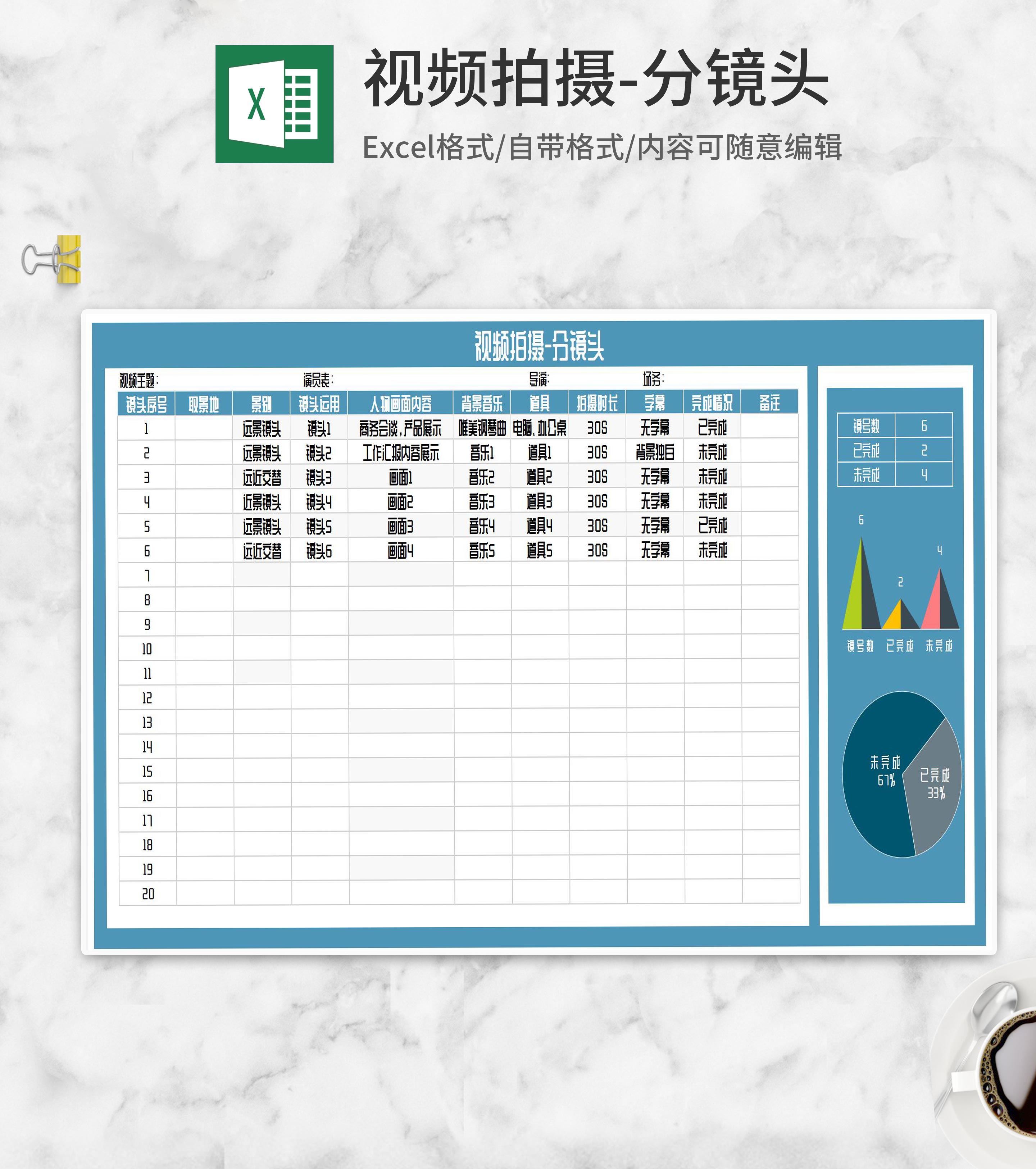 视频拍摄分镜头时间表Excel模板