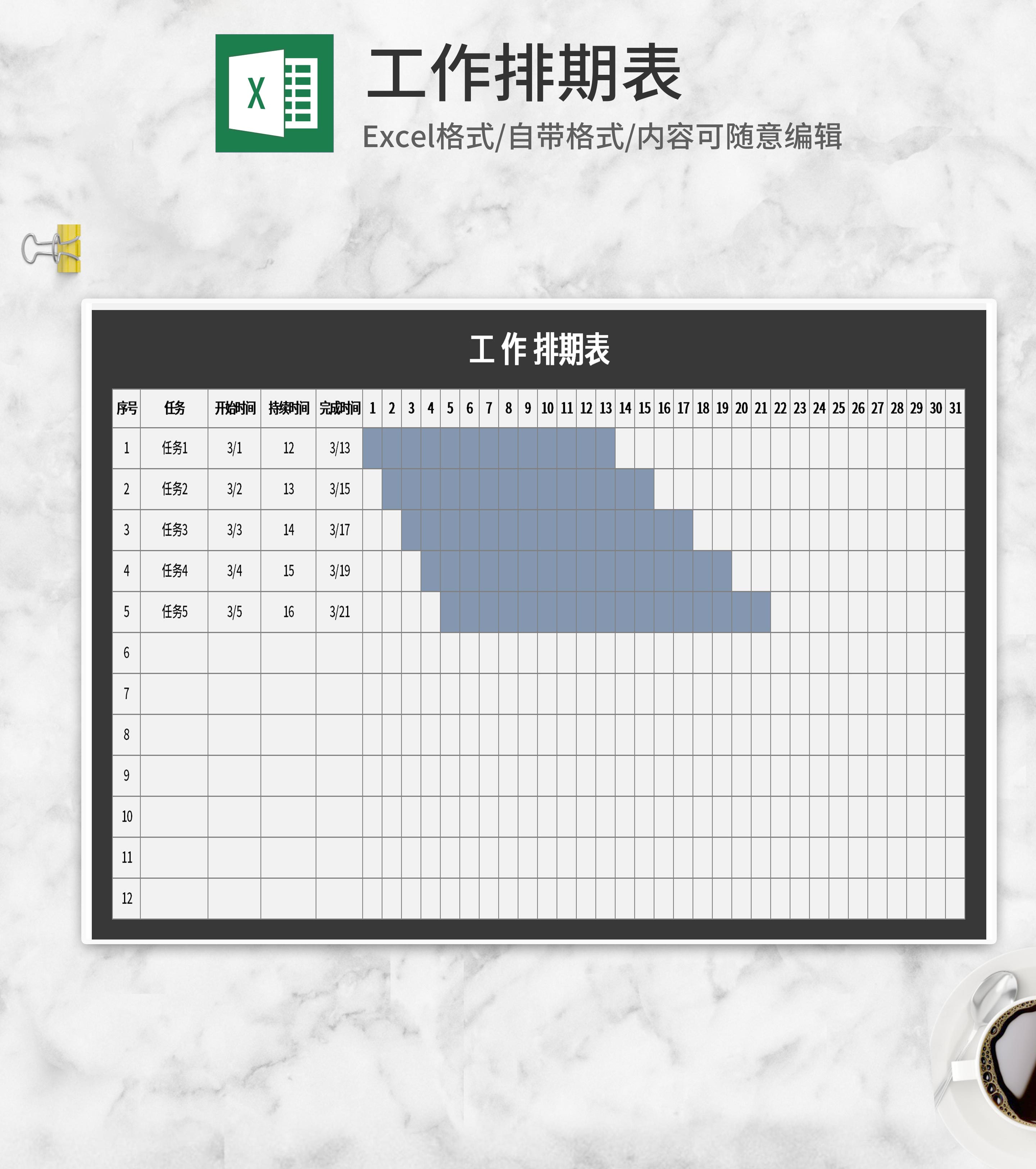 深色工作排期表Excel模板