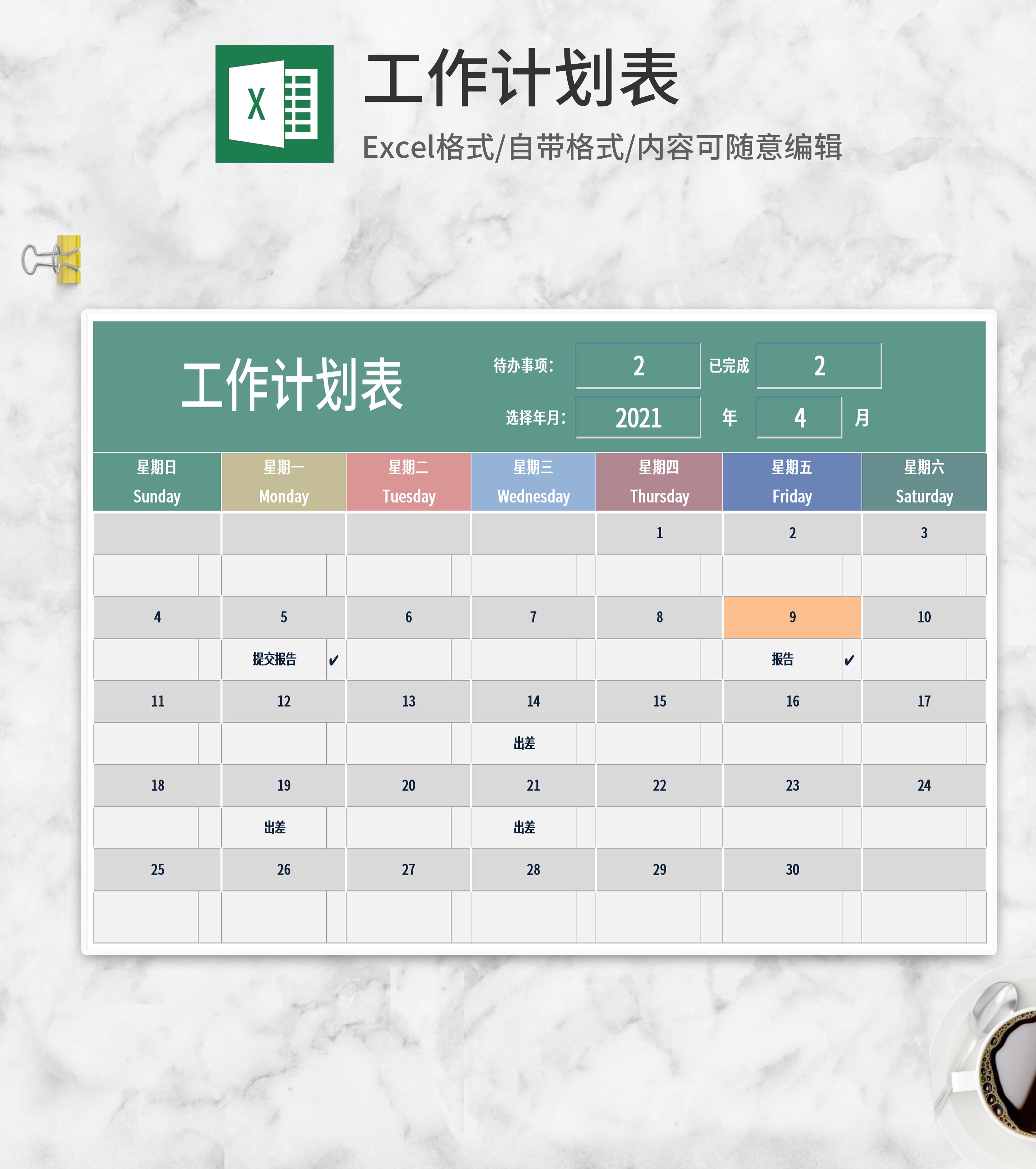 工作行程计划安排Excel模板