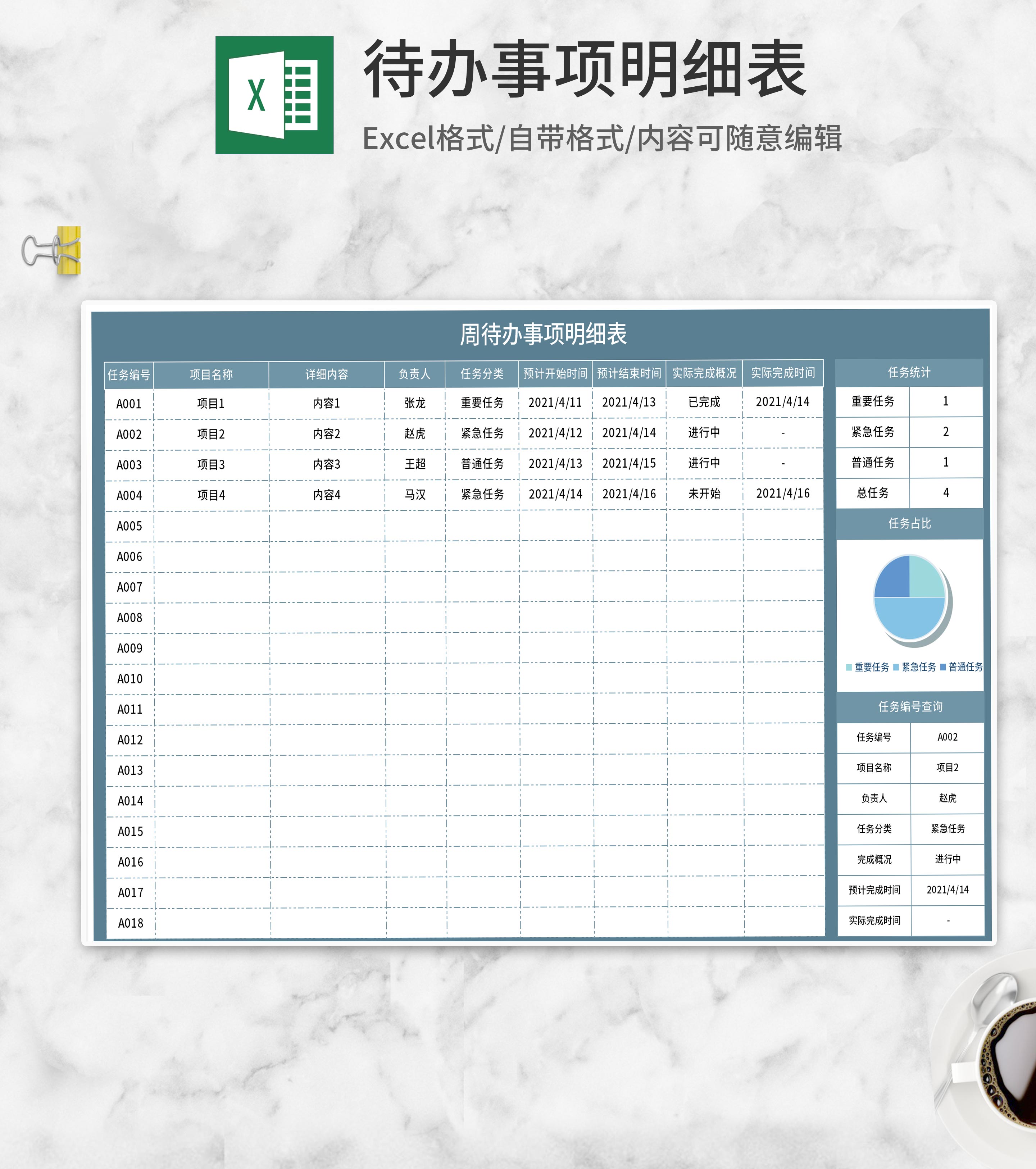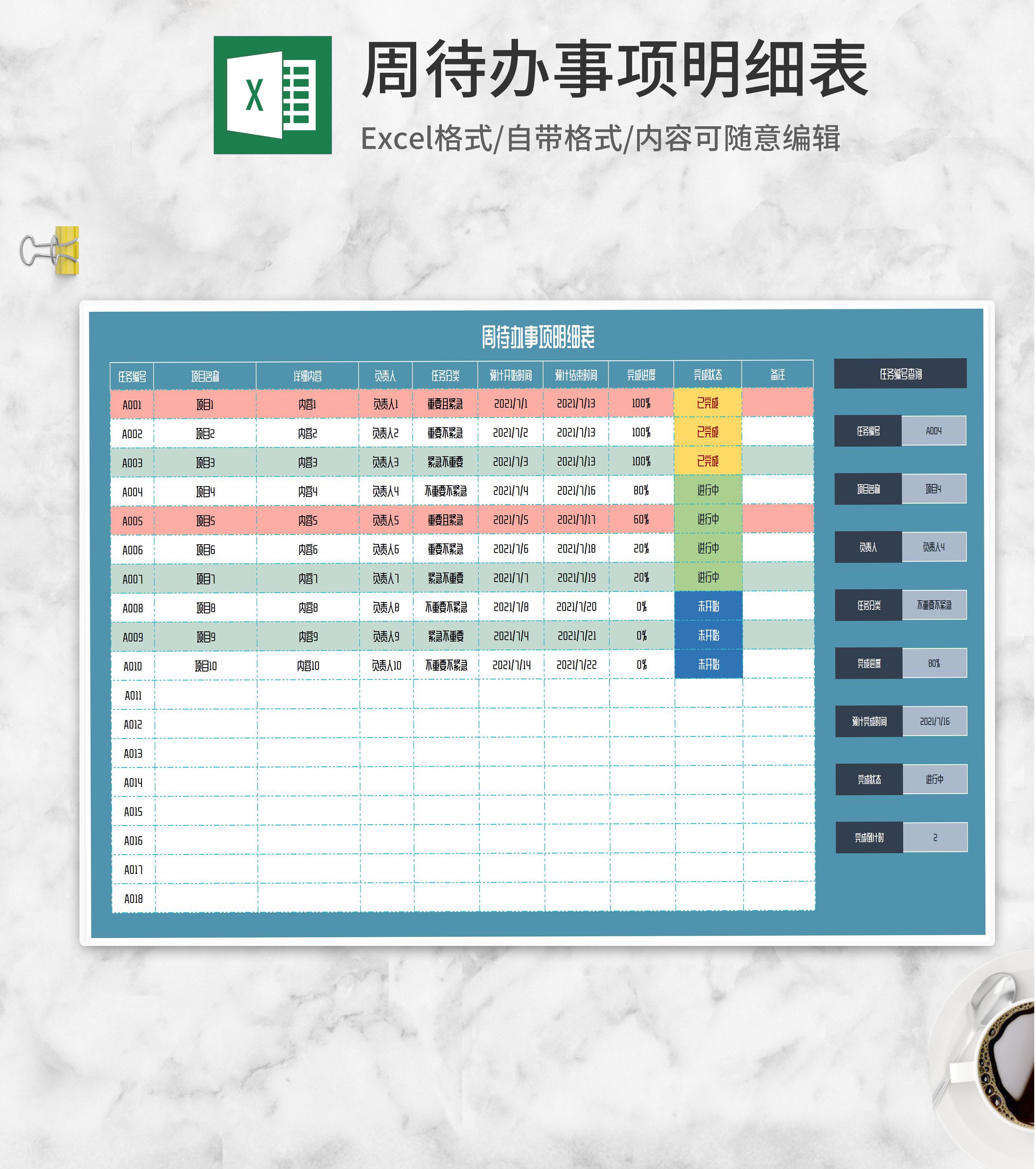 周待办事项任务明细表Excel模板