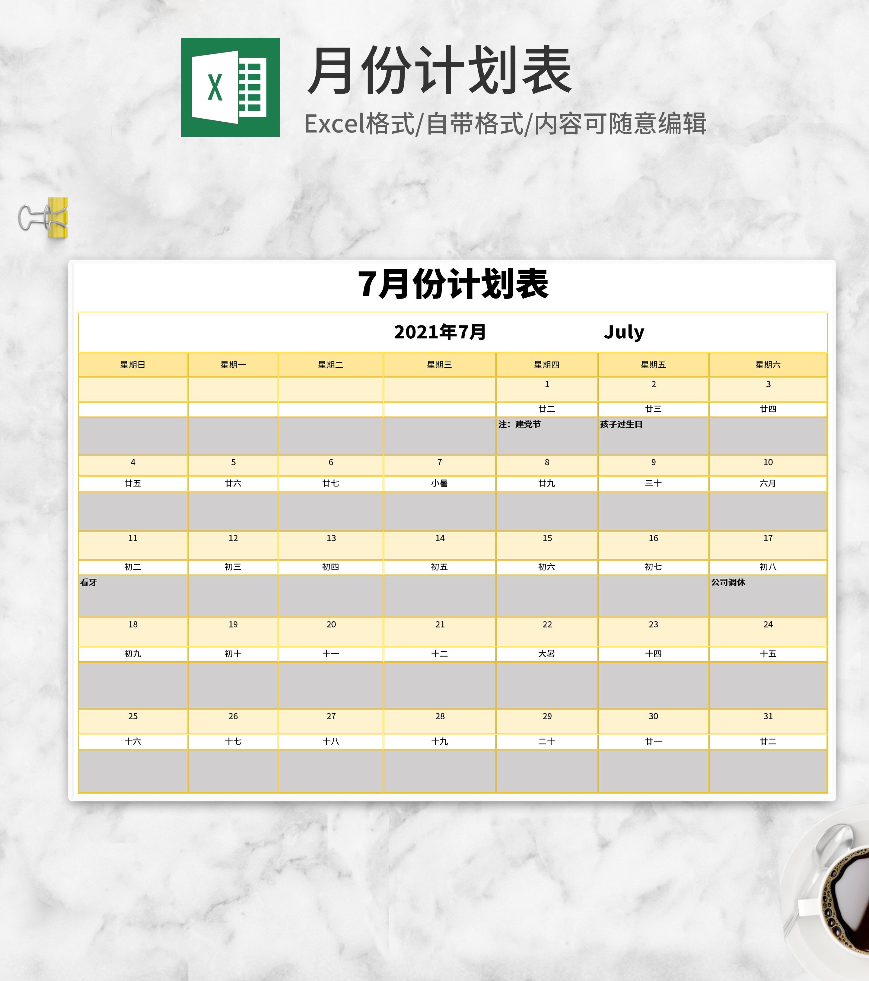 公司月份计划表Excel模板