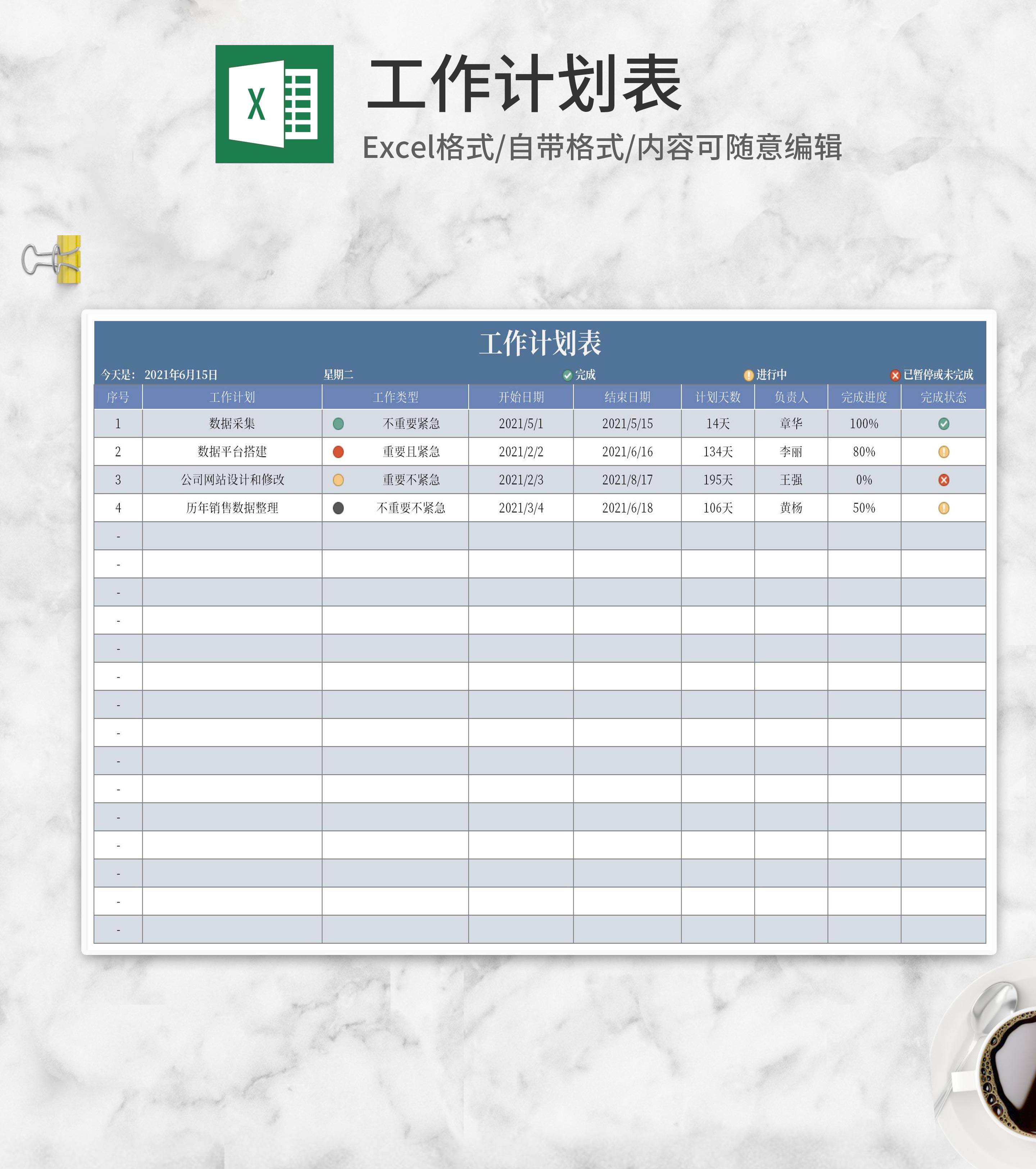员工工作计划安排表Excel模板