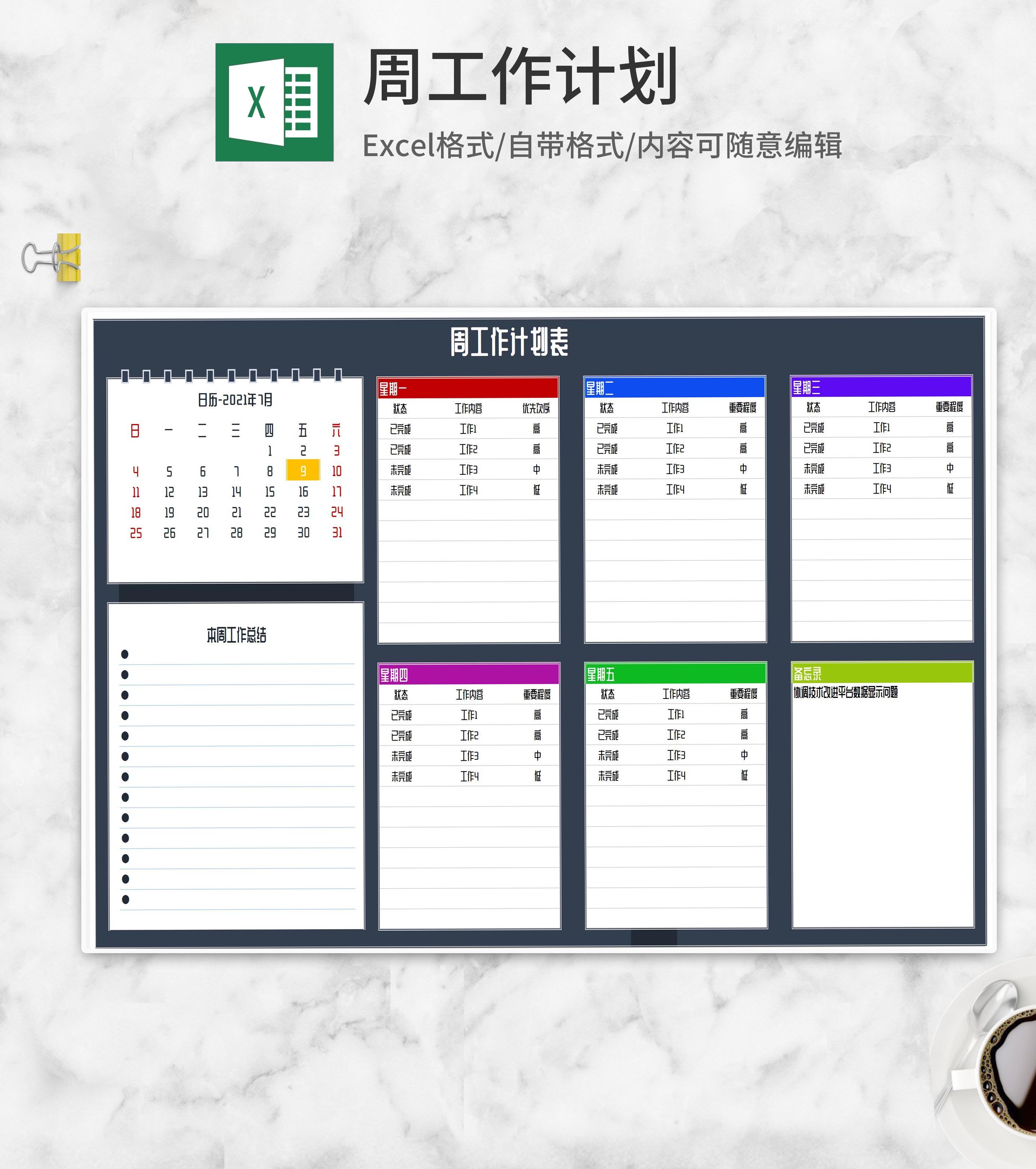 周工作计划明细汇总表Excel模板
