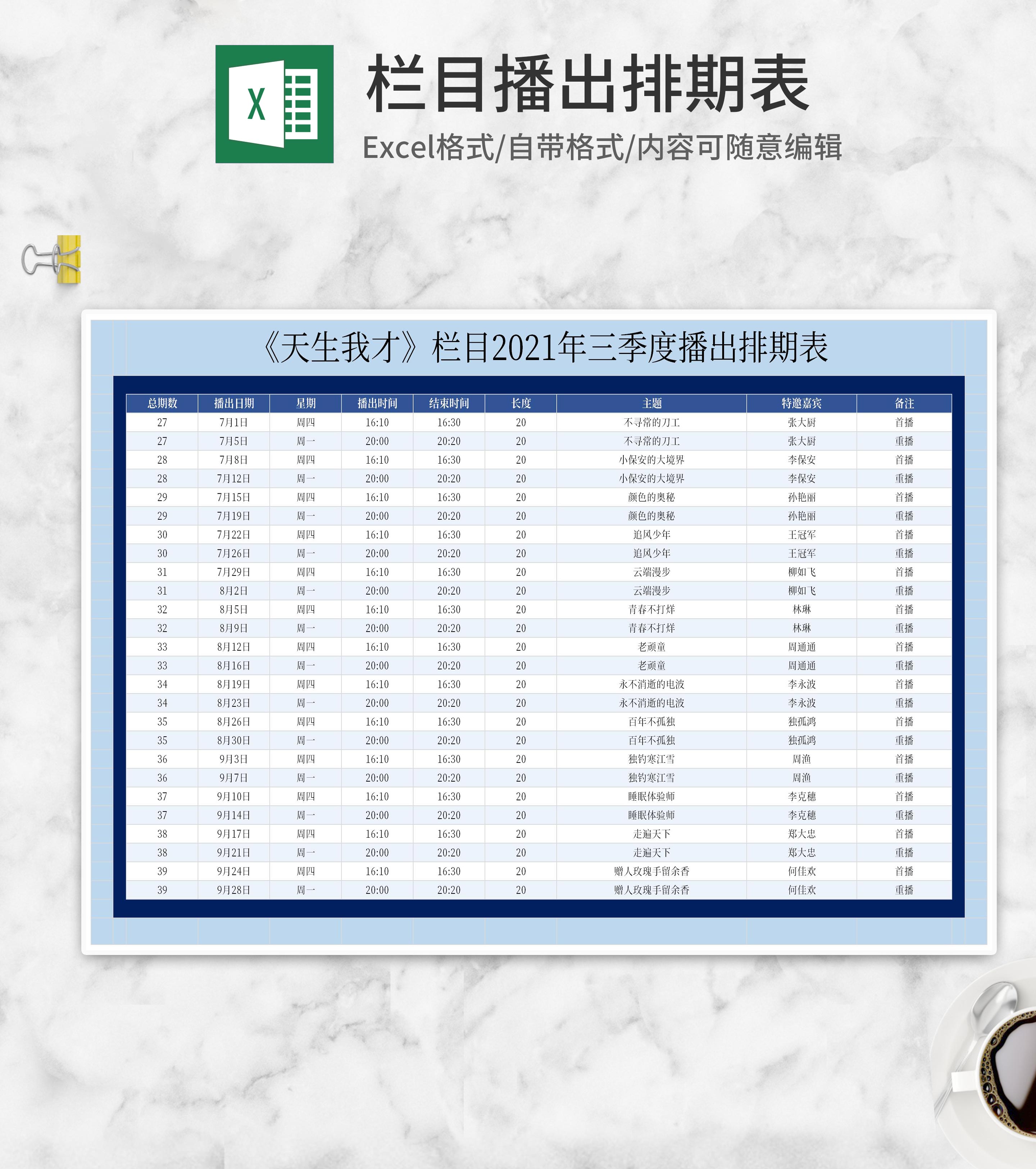 栏目第三季播出排期表excel模板