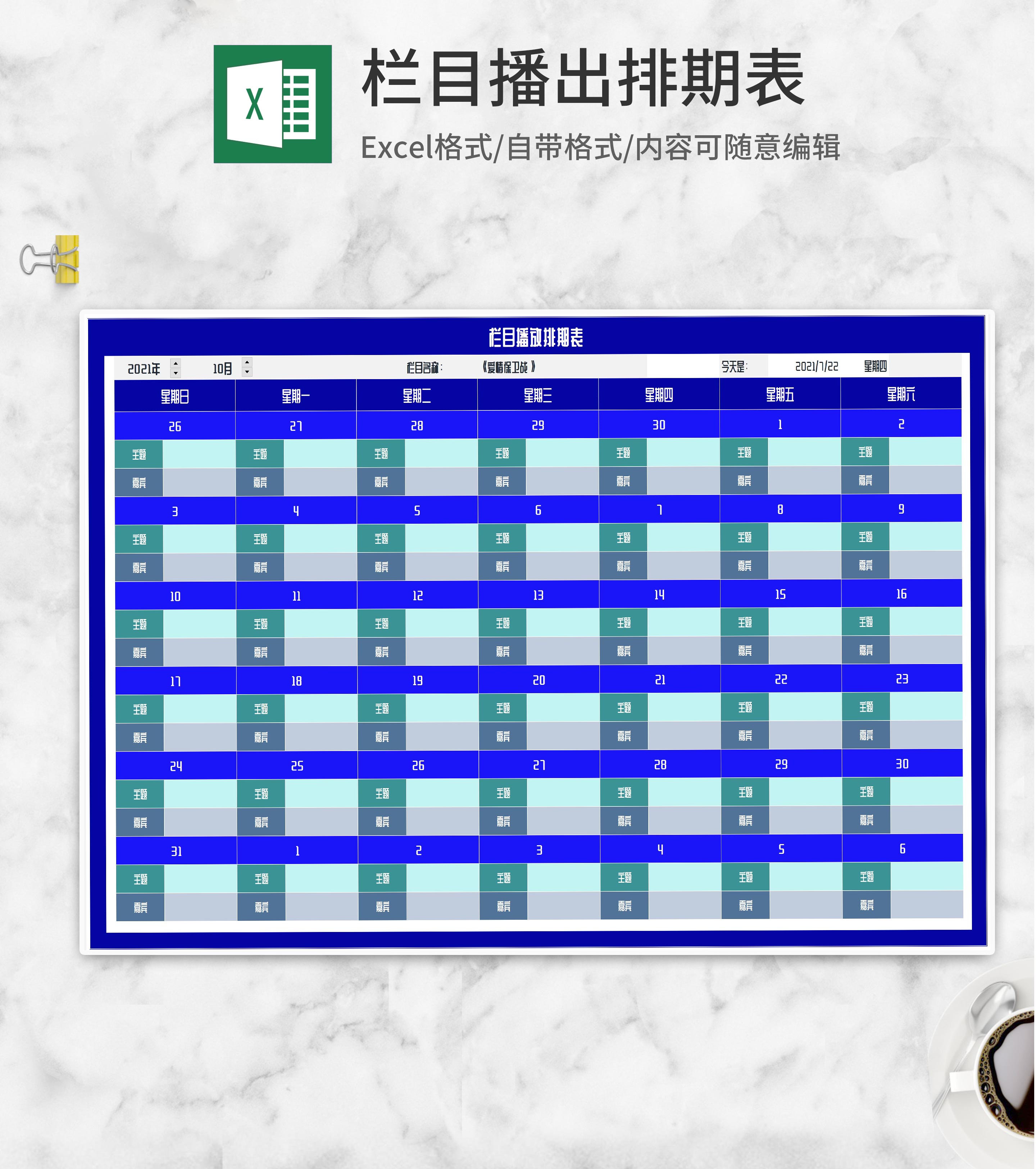蓝色栏目播放排期表Excel模板