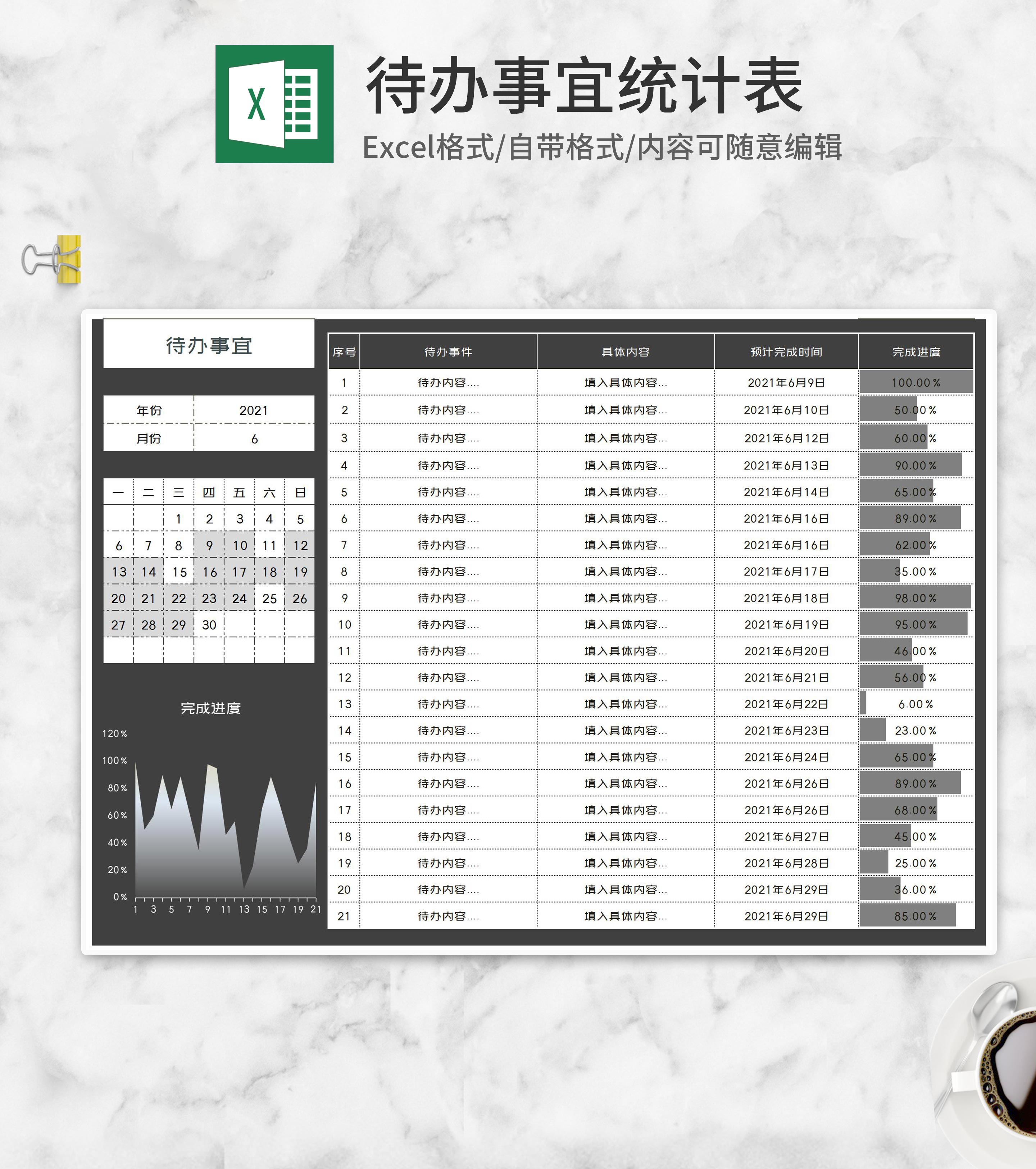 待办事项计划明细清单Excel模板