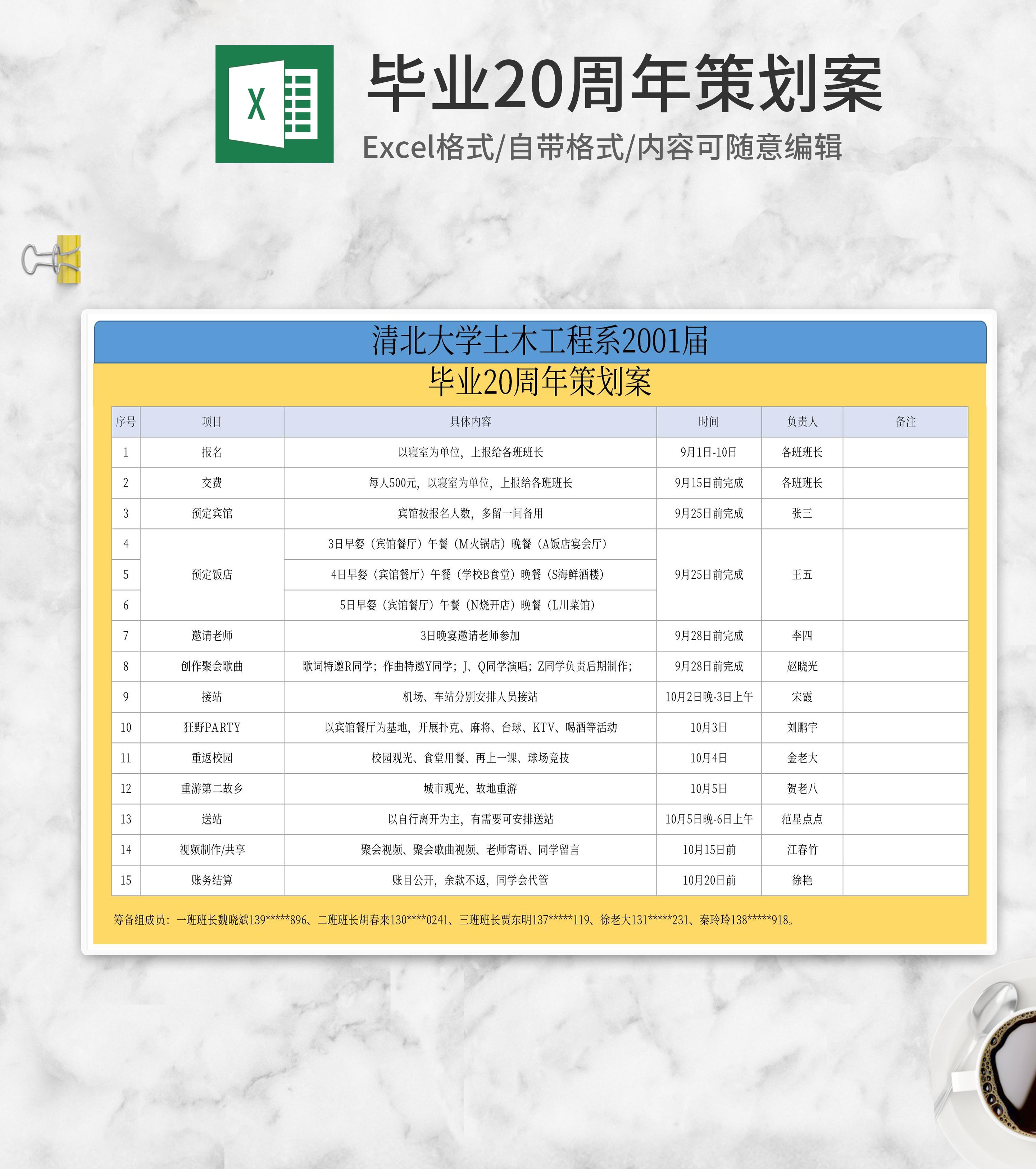 毕业周年活动策划案Excel模板