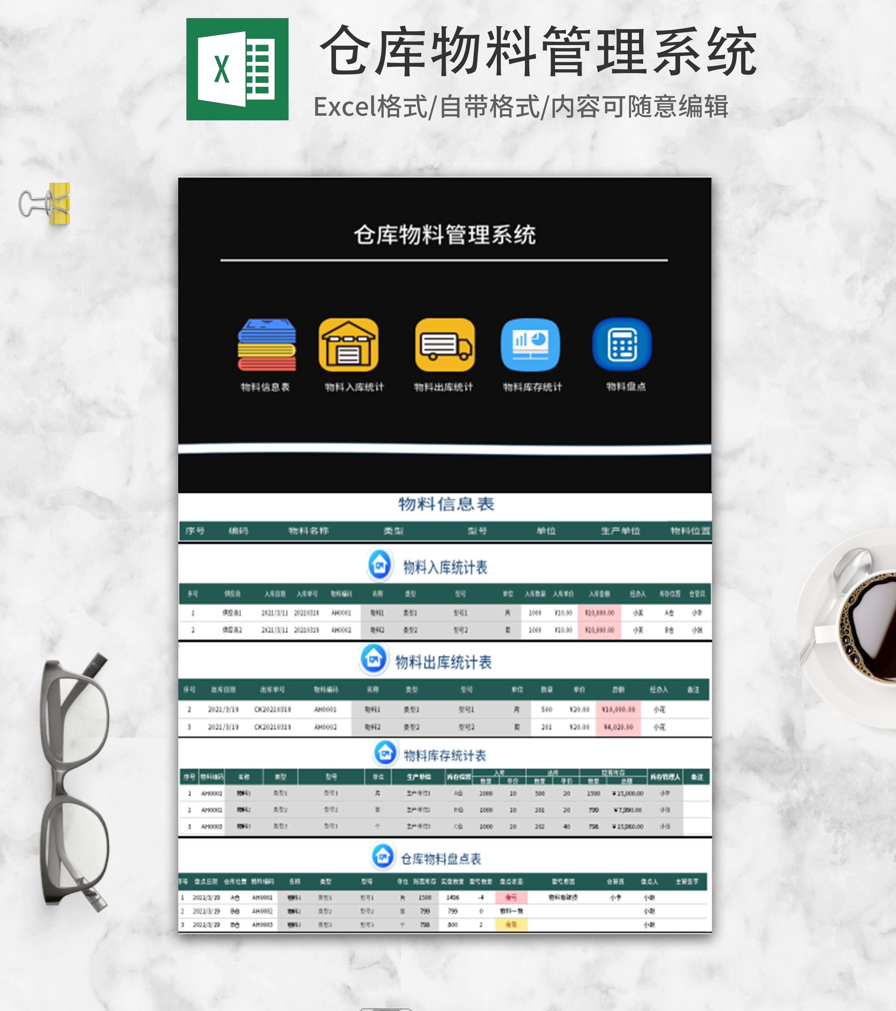 仓库物料管理系统Excel模板