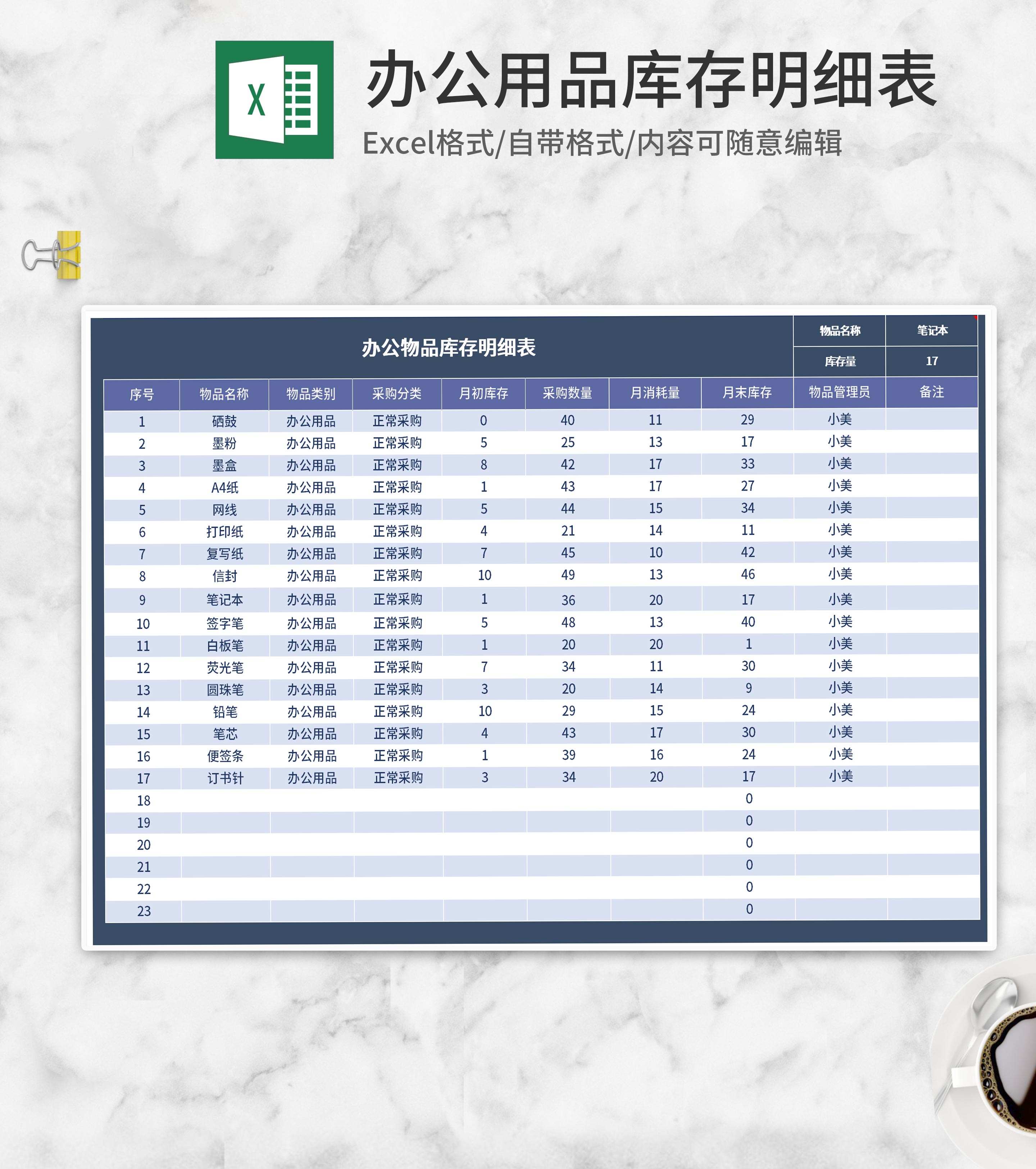 办公用品库存明细表Excel模板