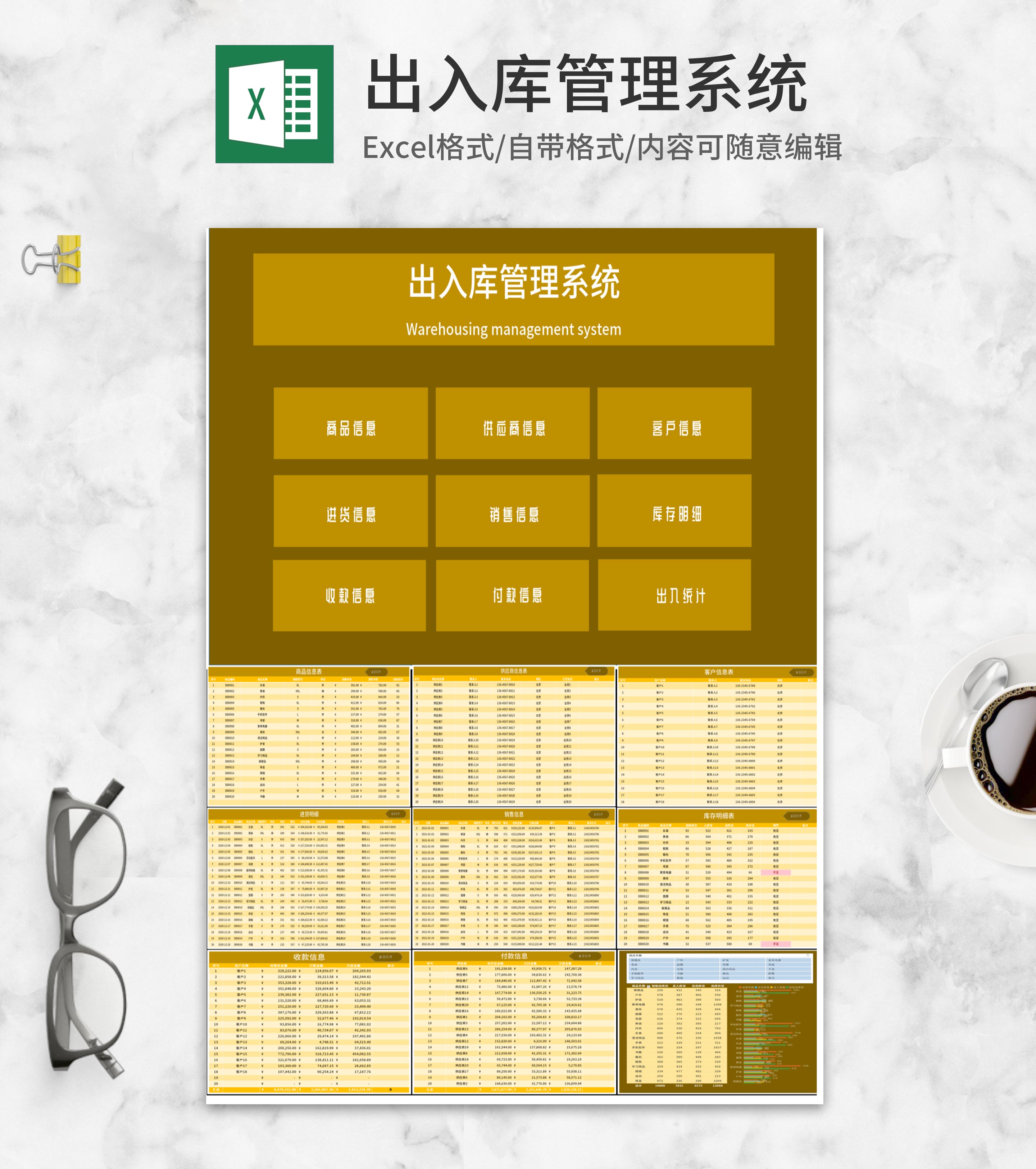黄色出入库管理系统Excel模板