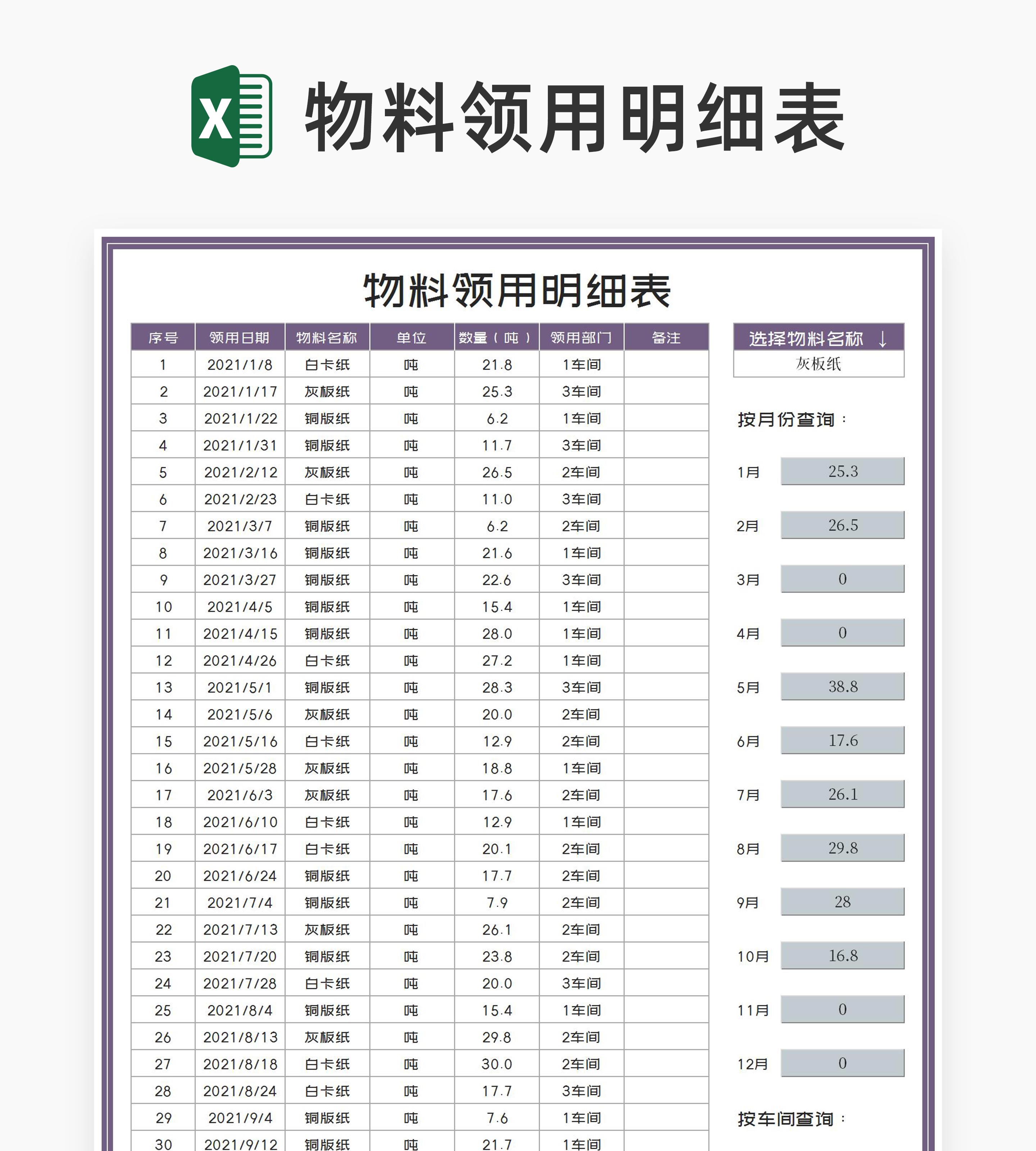 车间物料领用明细表Excel模板