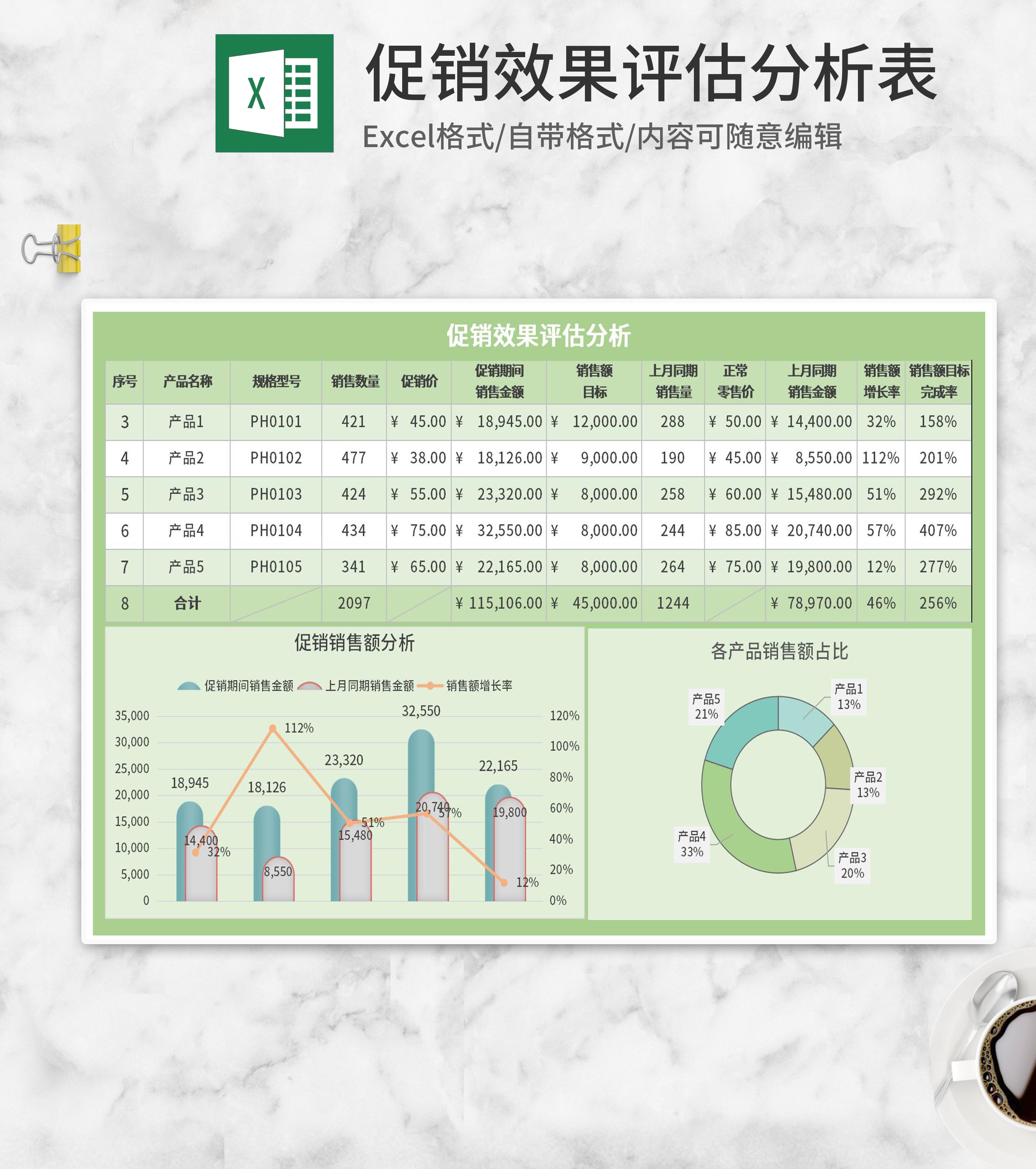 简约绿色促销效果评估分析表Excel模板