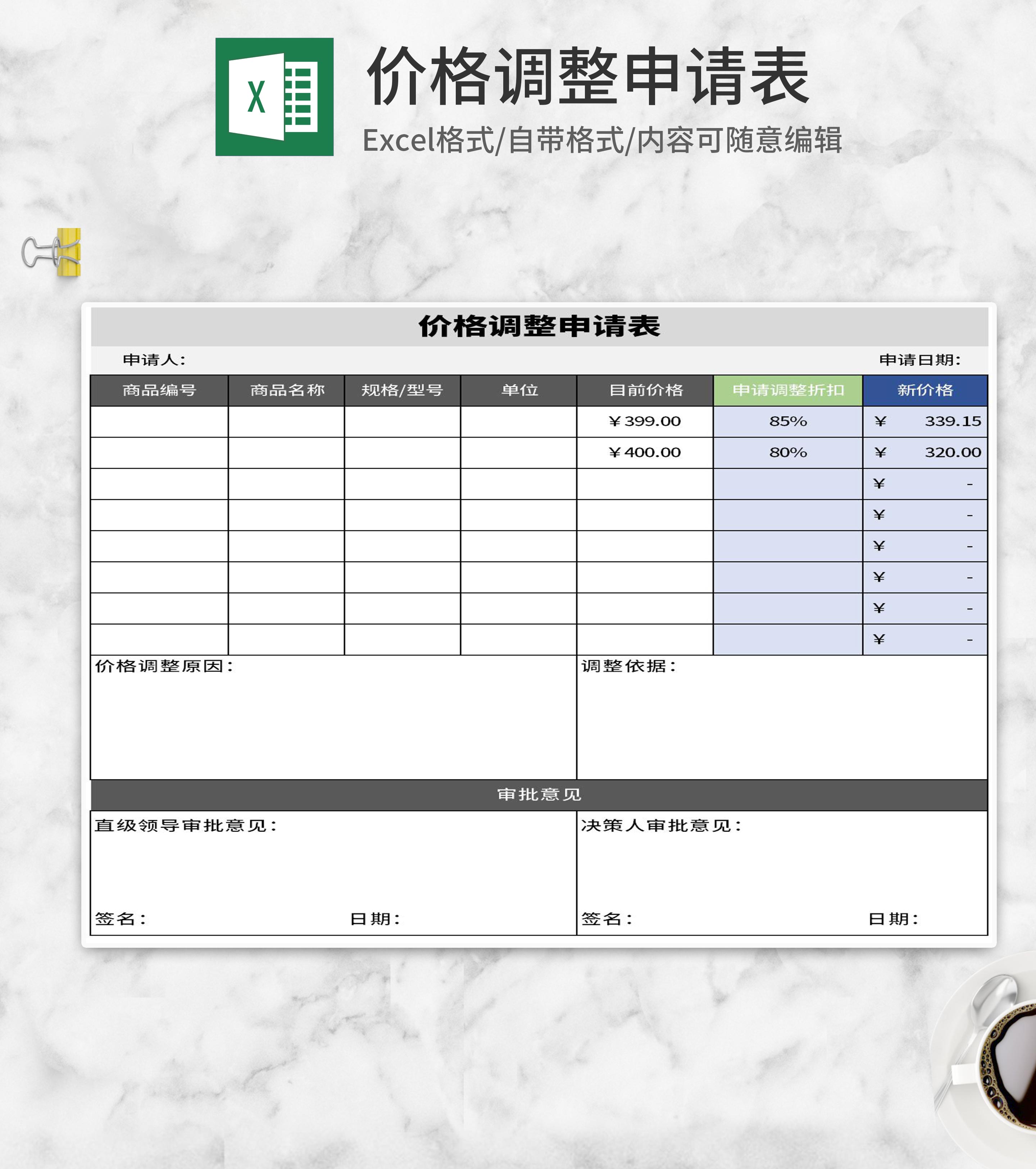 简约灰色价格调整申请表Excel模板
