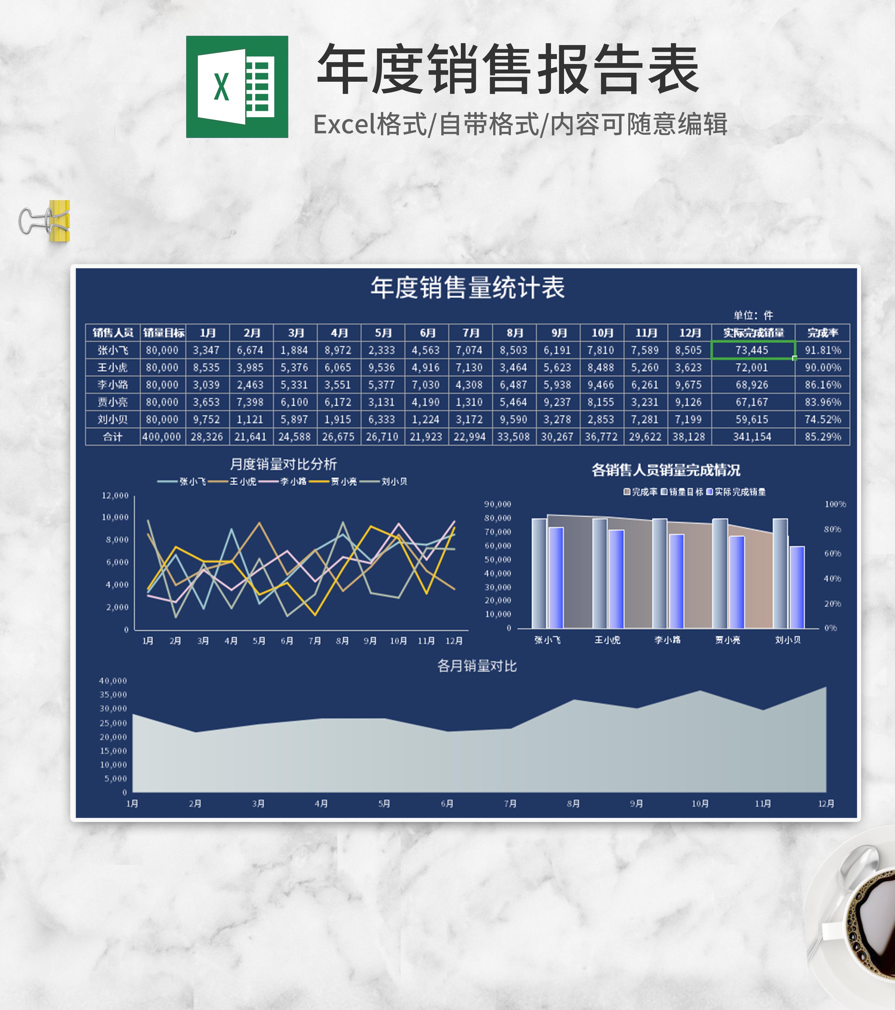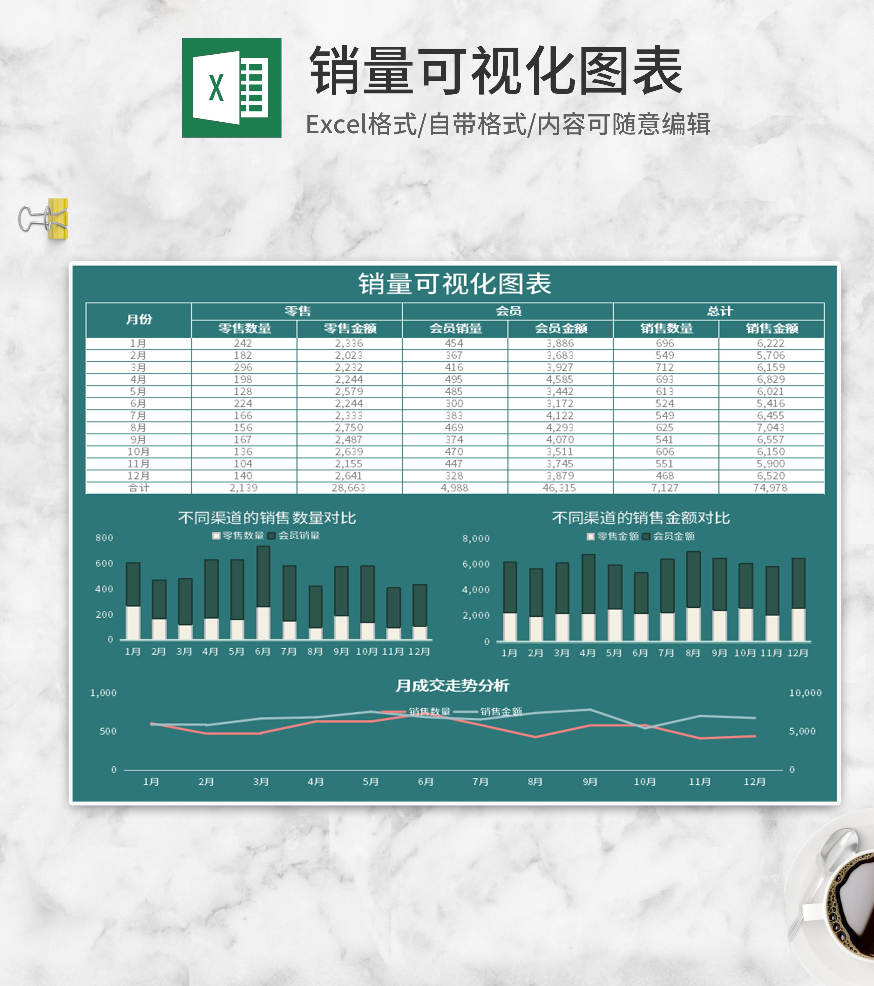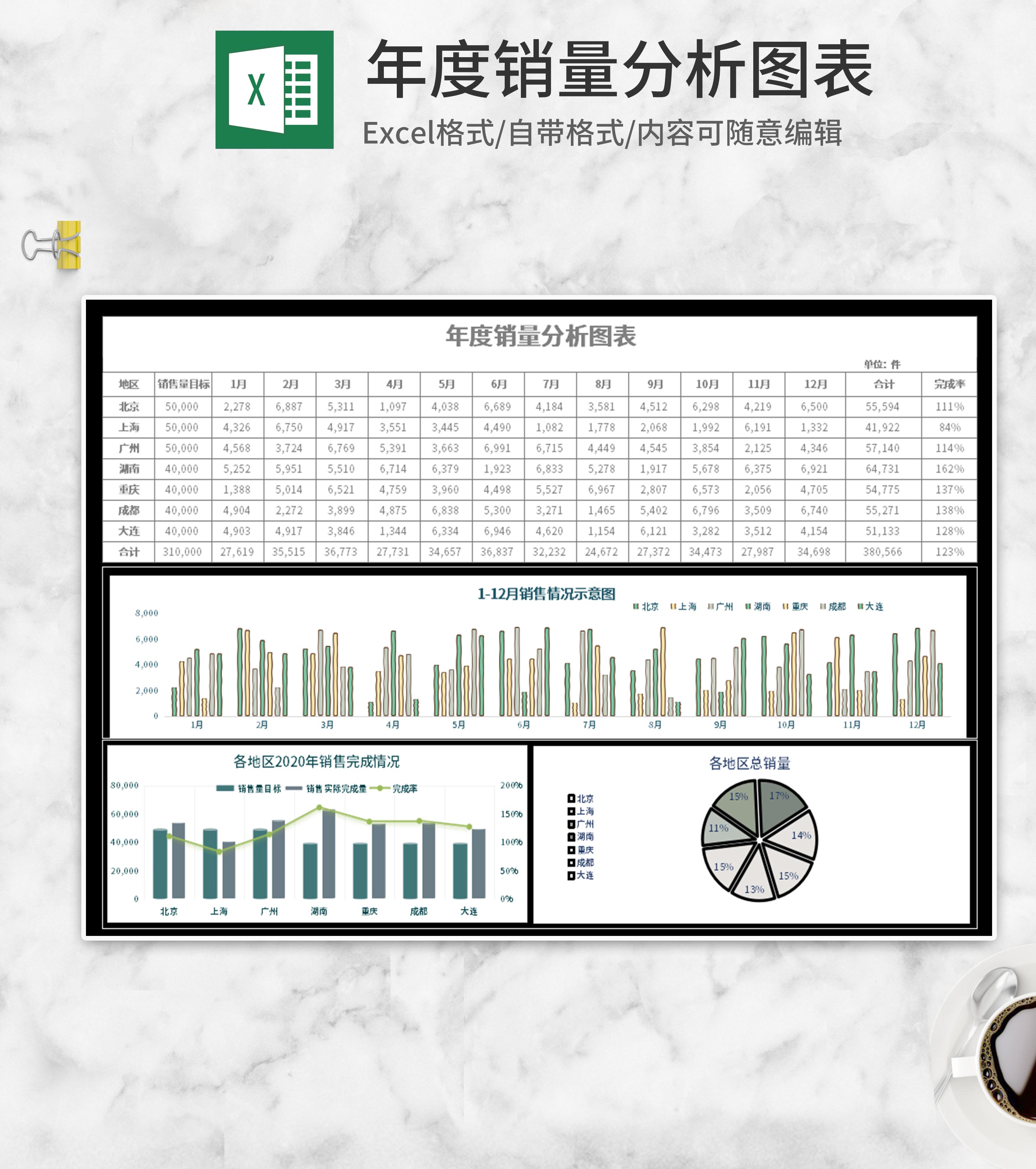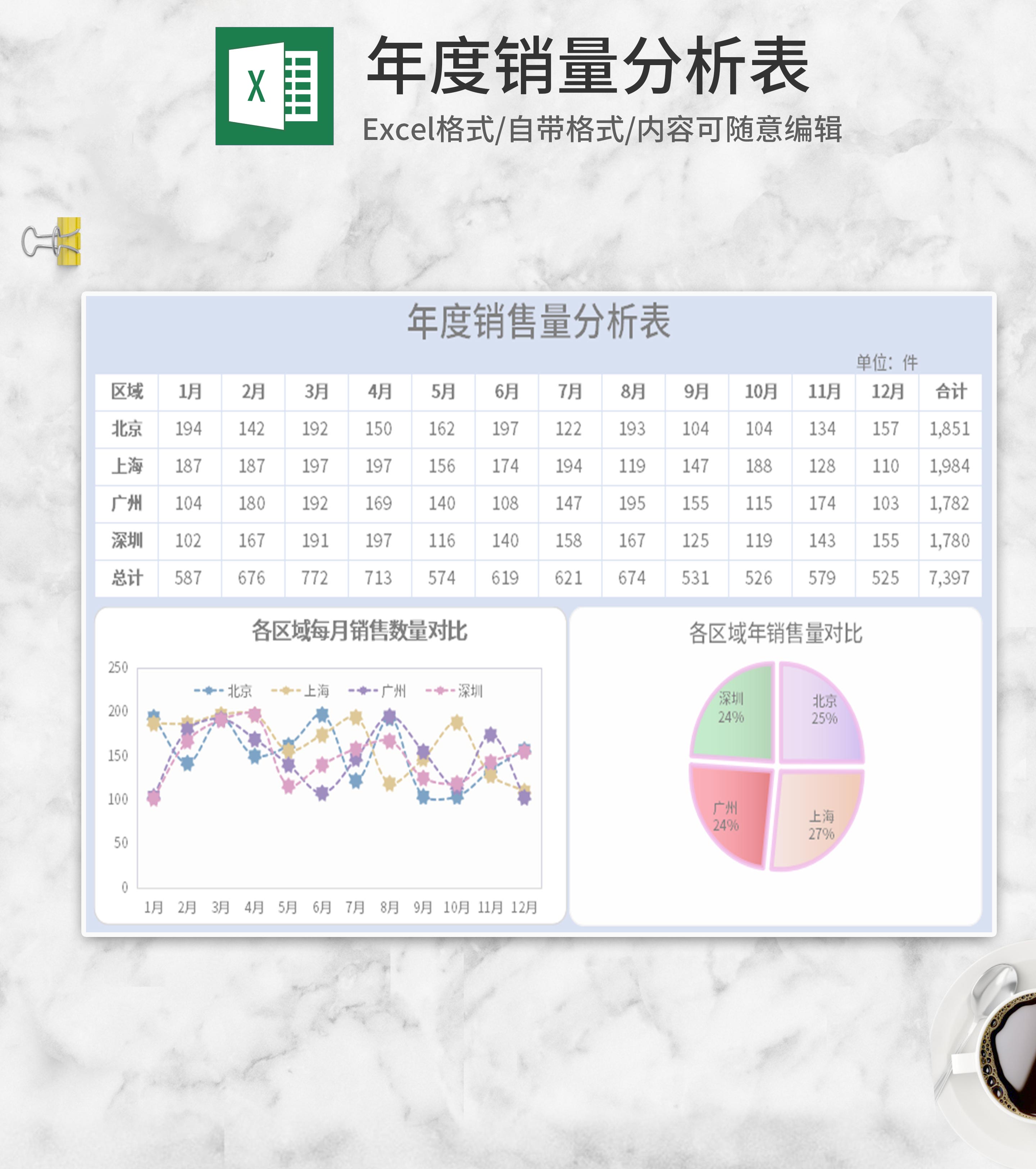 年度销量分析图表Excel模板
