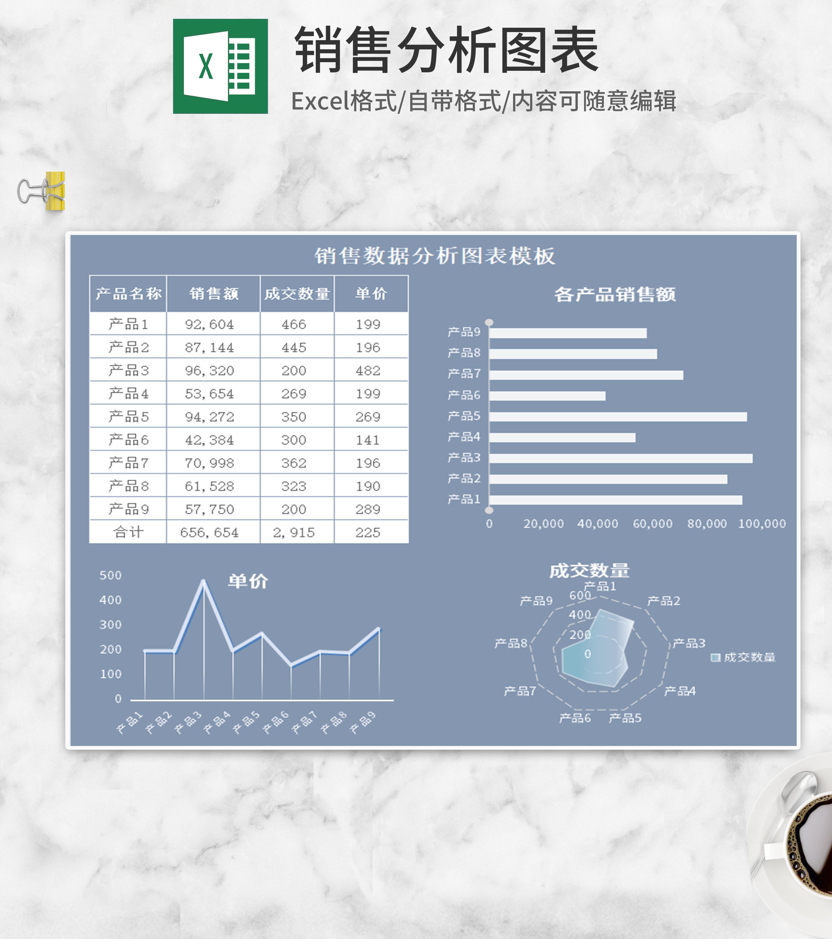 产品销售数据分析图表Excel模板