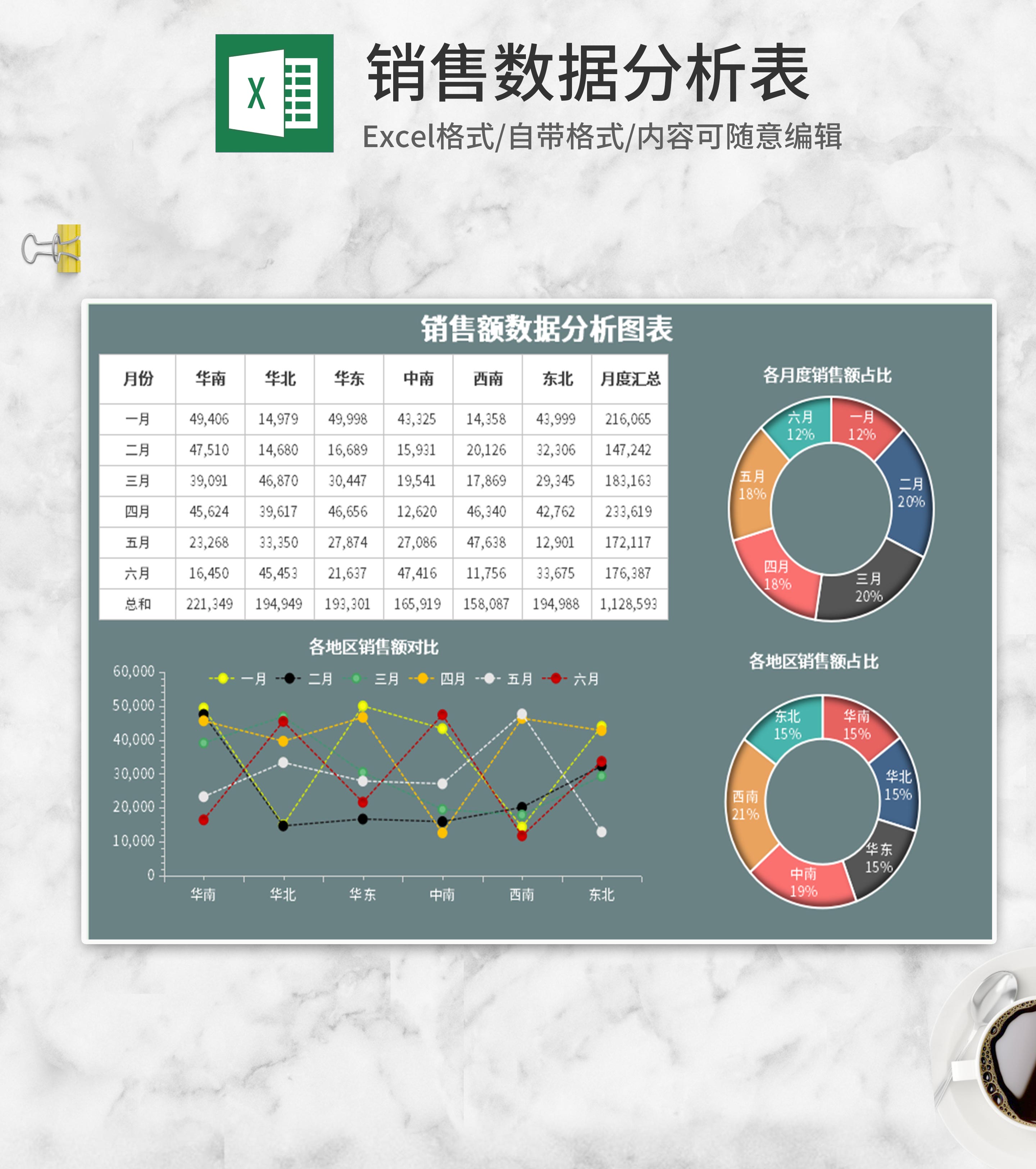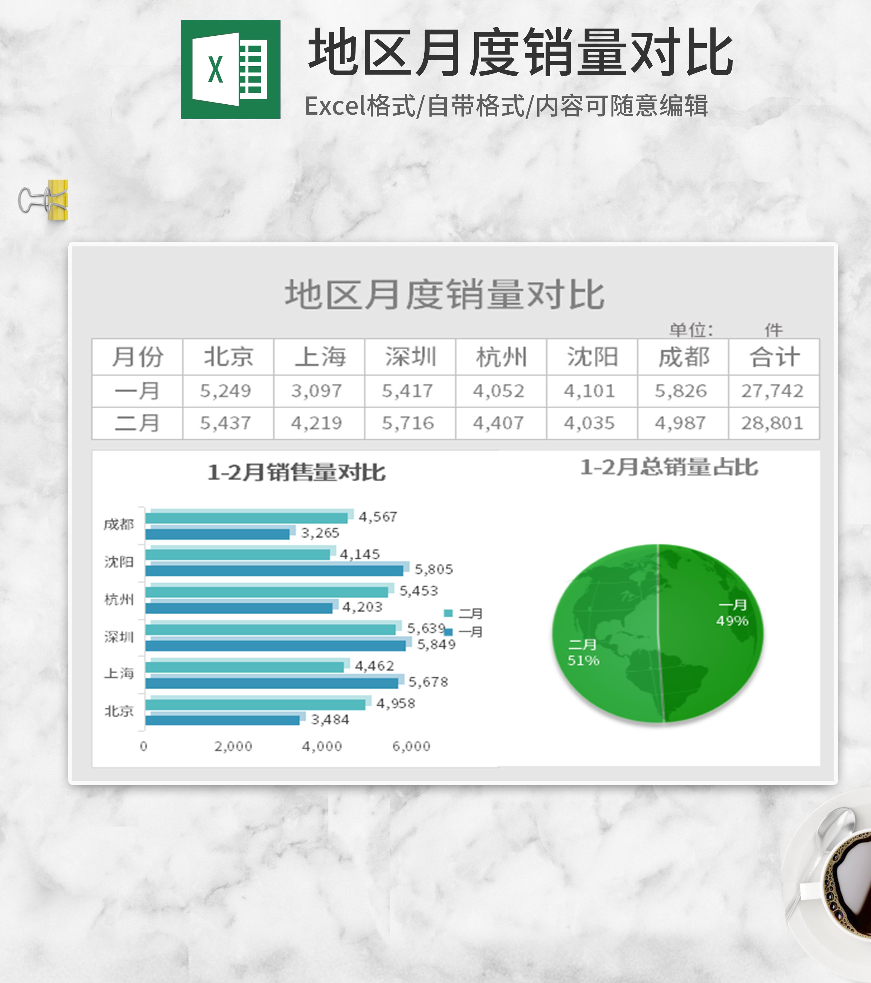 地区月度销售对比Excel模板