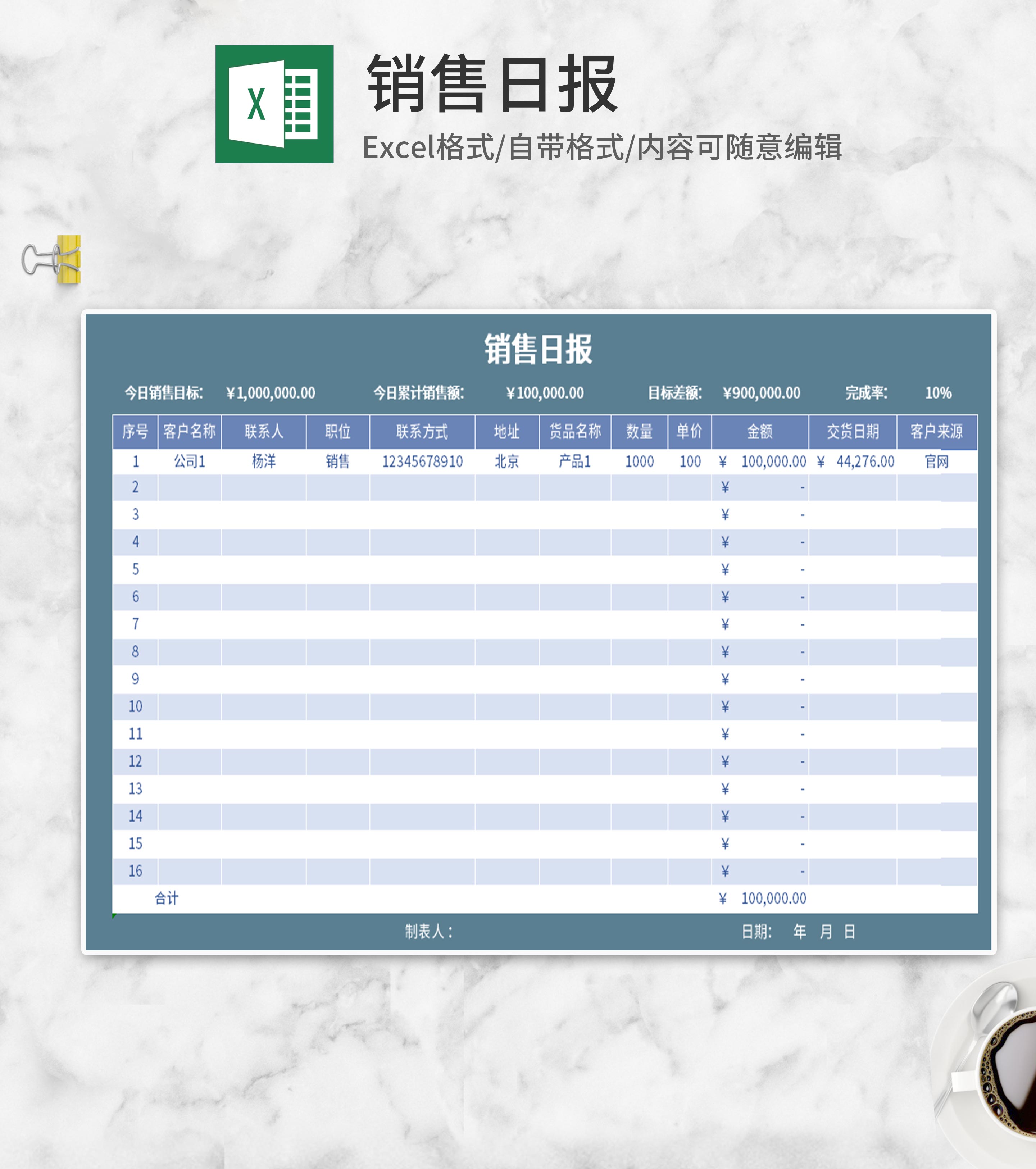 蓝色销售日报Excel模板