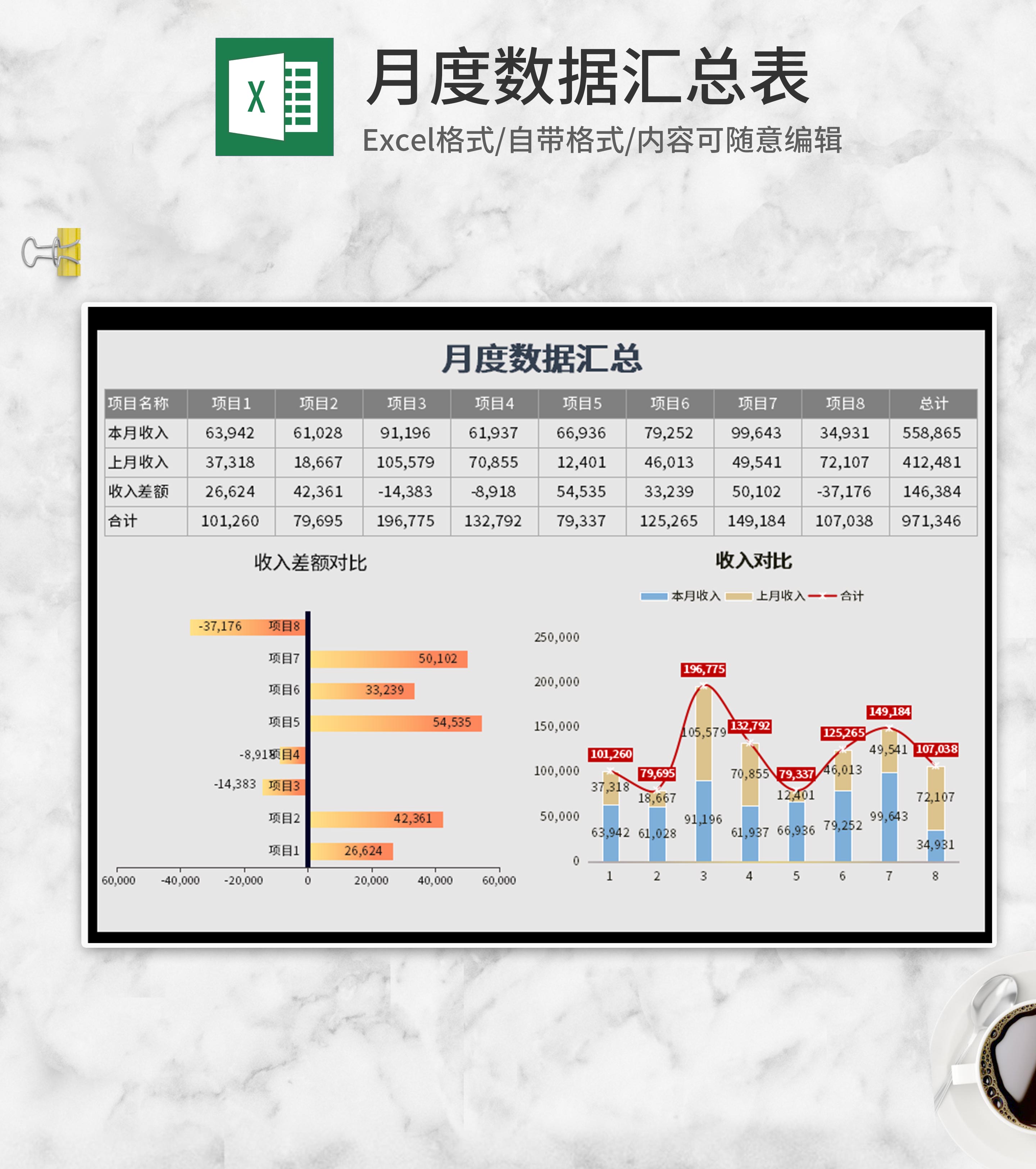 灰色月度数据汇总表Excel模板